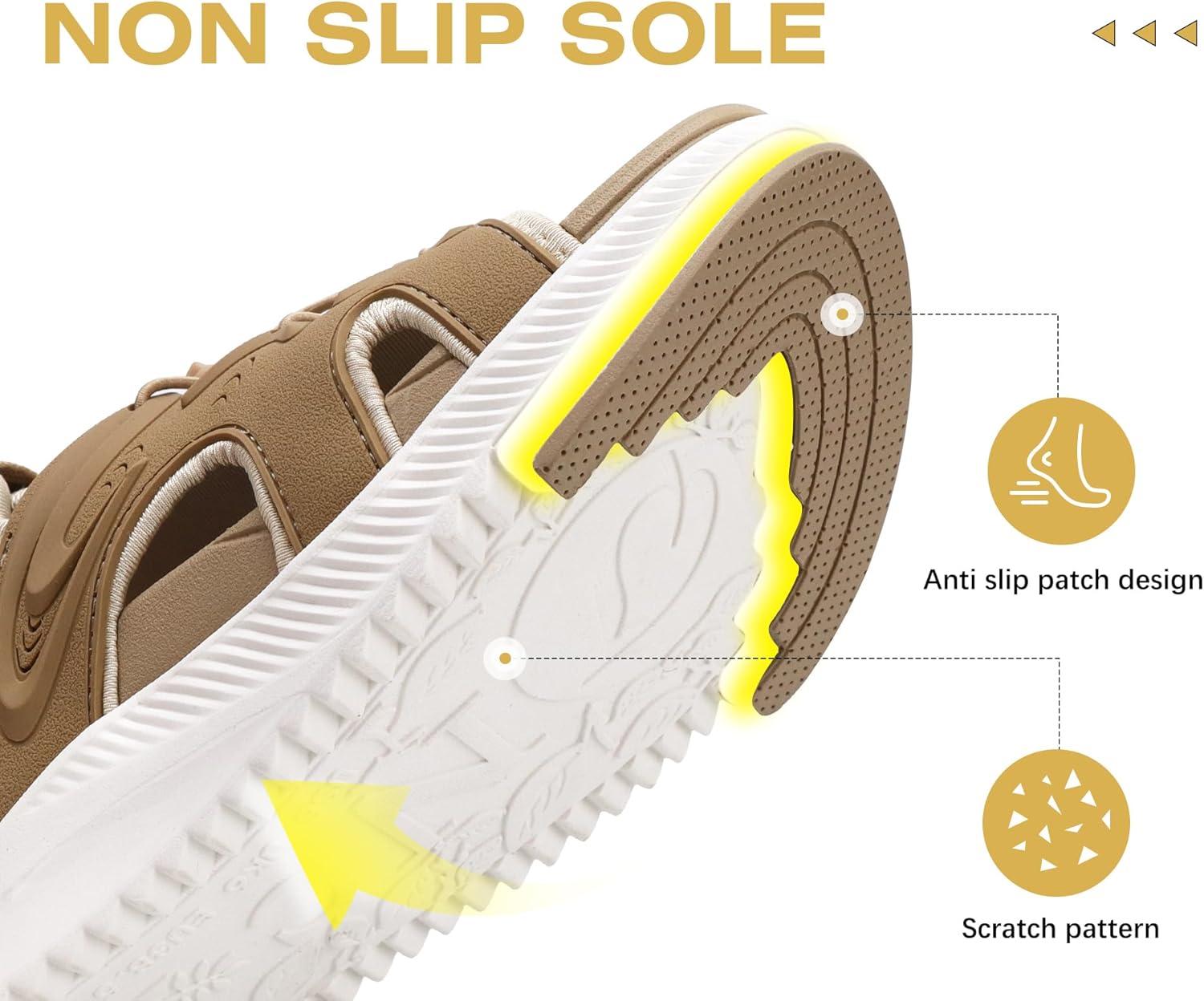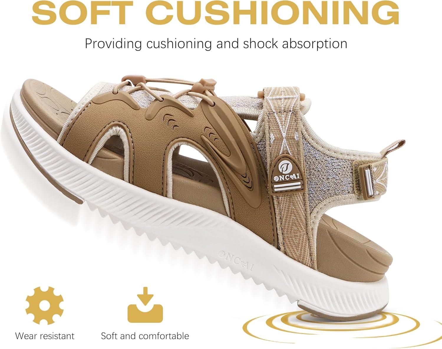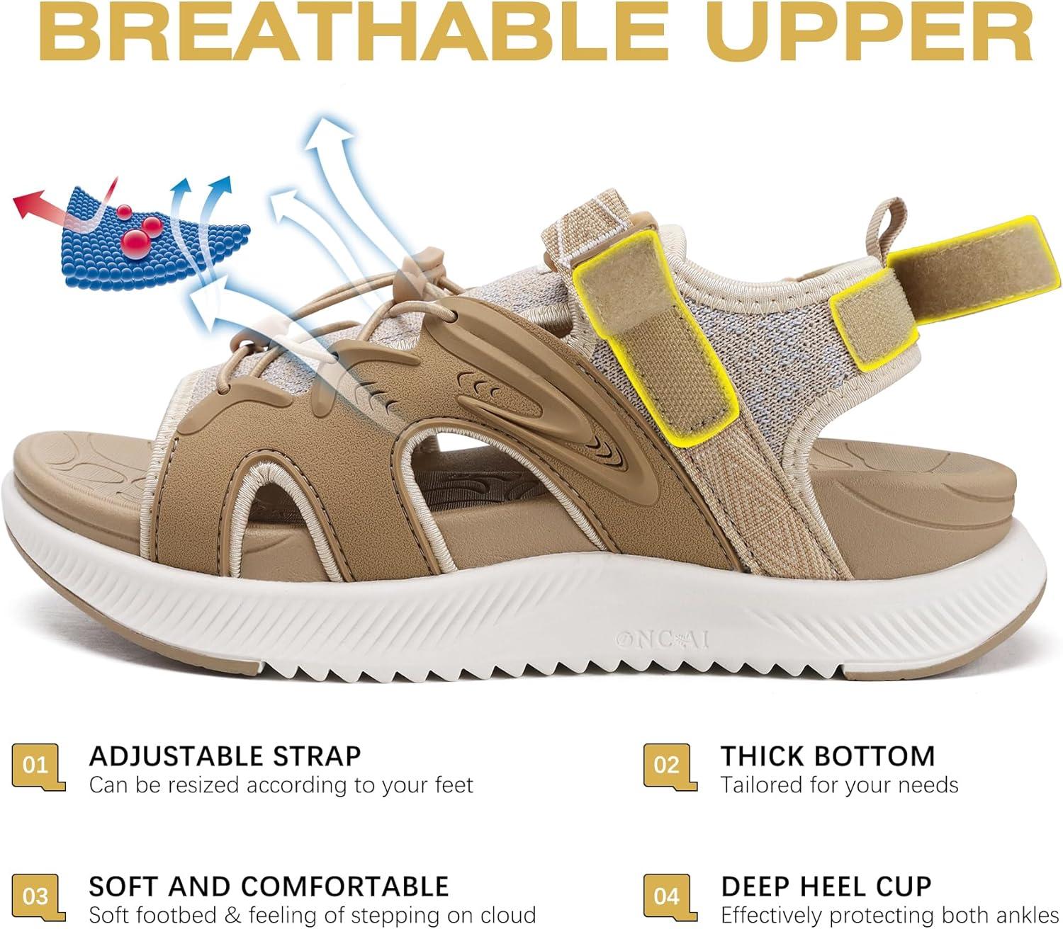 ONCAI Walking Sandals for Women,Sport Athletic Hiking Sandals With Arch Support Orthotic Outdoor Footbed for Plantar Fasciitis, Sandalias Mujer with Adjustable Straps (US Size 6-12)(Beige/White)