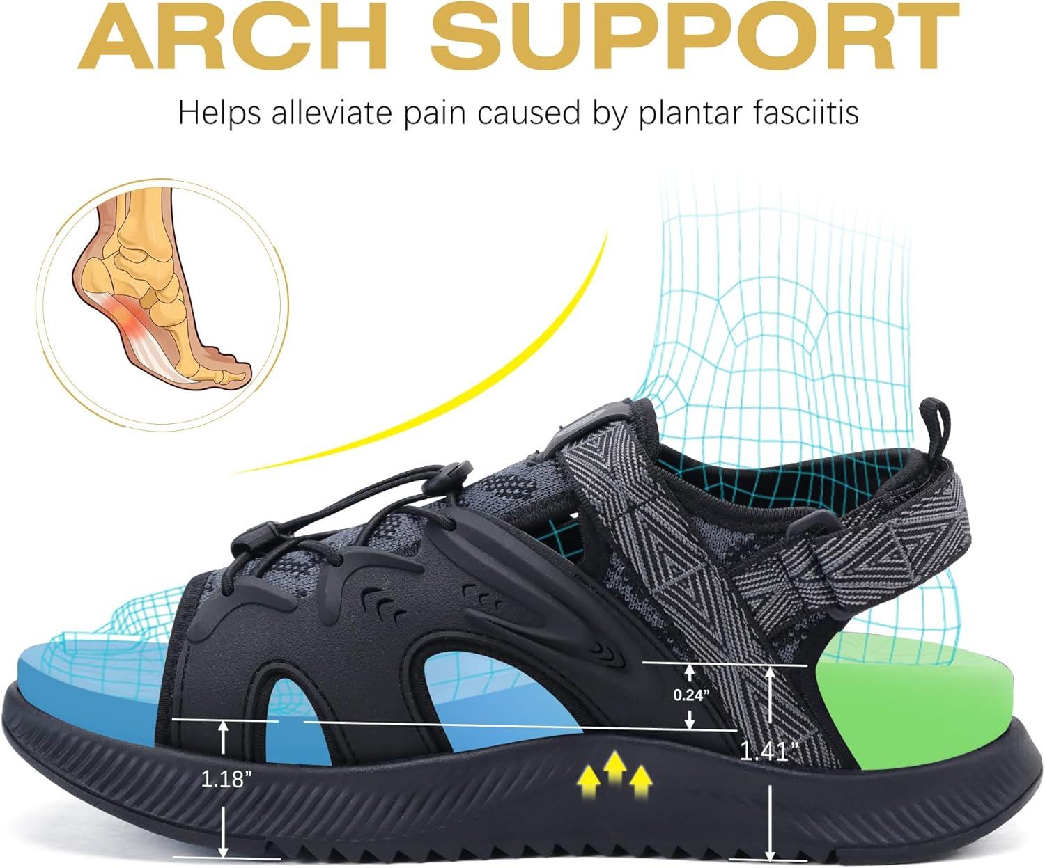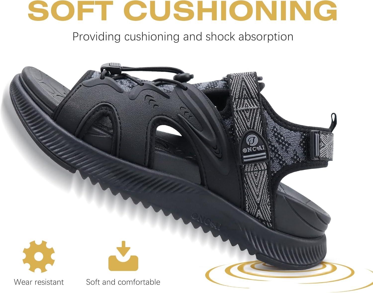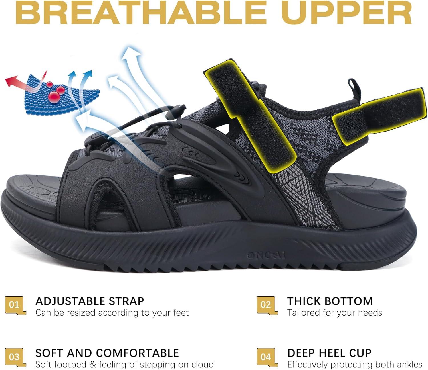 ONCAI Walking Sandals for Women,Sport Athletic Hiking Sandals With Arch Support Orthotic Outdoor Footbed for Plantar Fasciitis, Sandalias Mujer with Adjustable Straps (US Size 6-12)(Black)