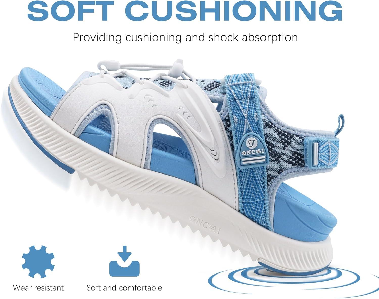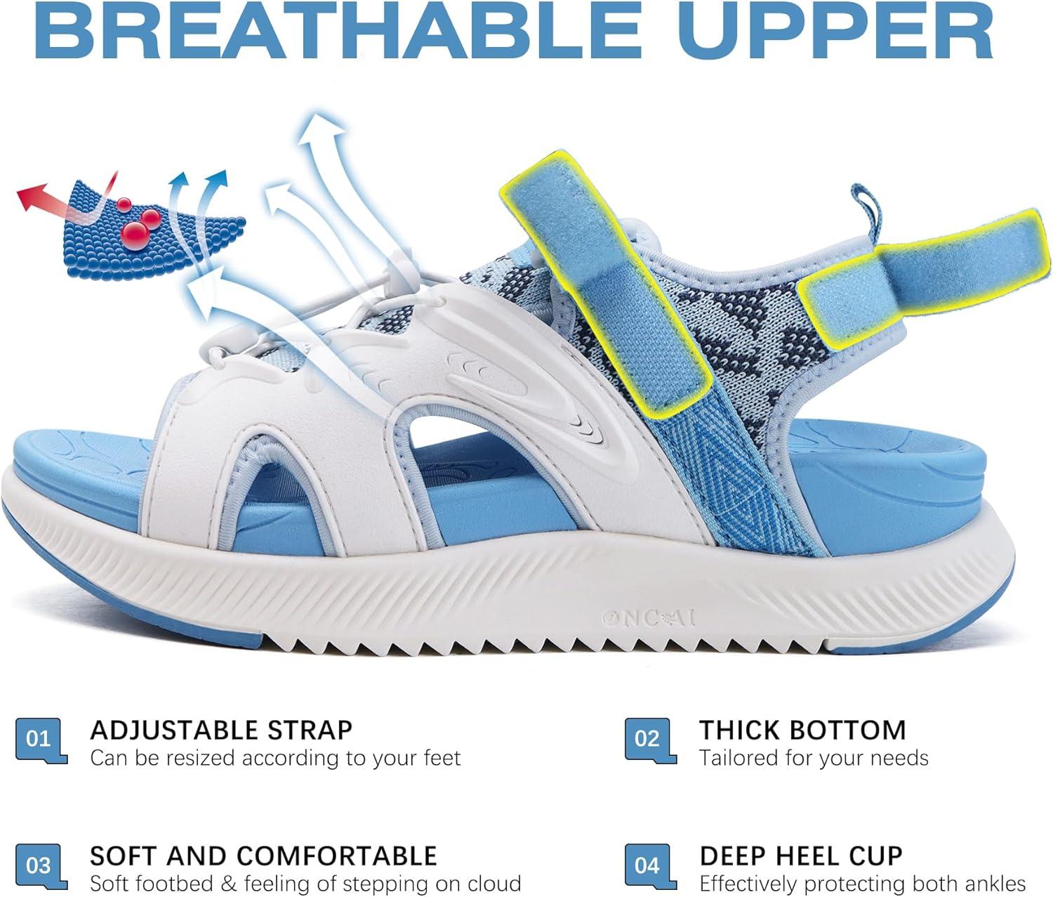 Get the ONCAI Walking Sandals for Women,Sport Athletic Hiking Sandals With Arch Support Orthotic Outdoor Footbed for Plantar Fasciitis, Sandalias Mujer with Adjustable Straps (US Size 6-12)(Blue/White) you want at a discounted price during our markdown sale event.