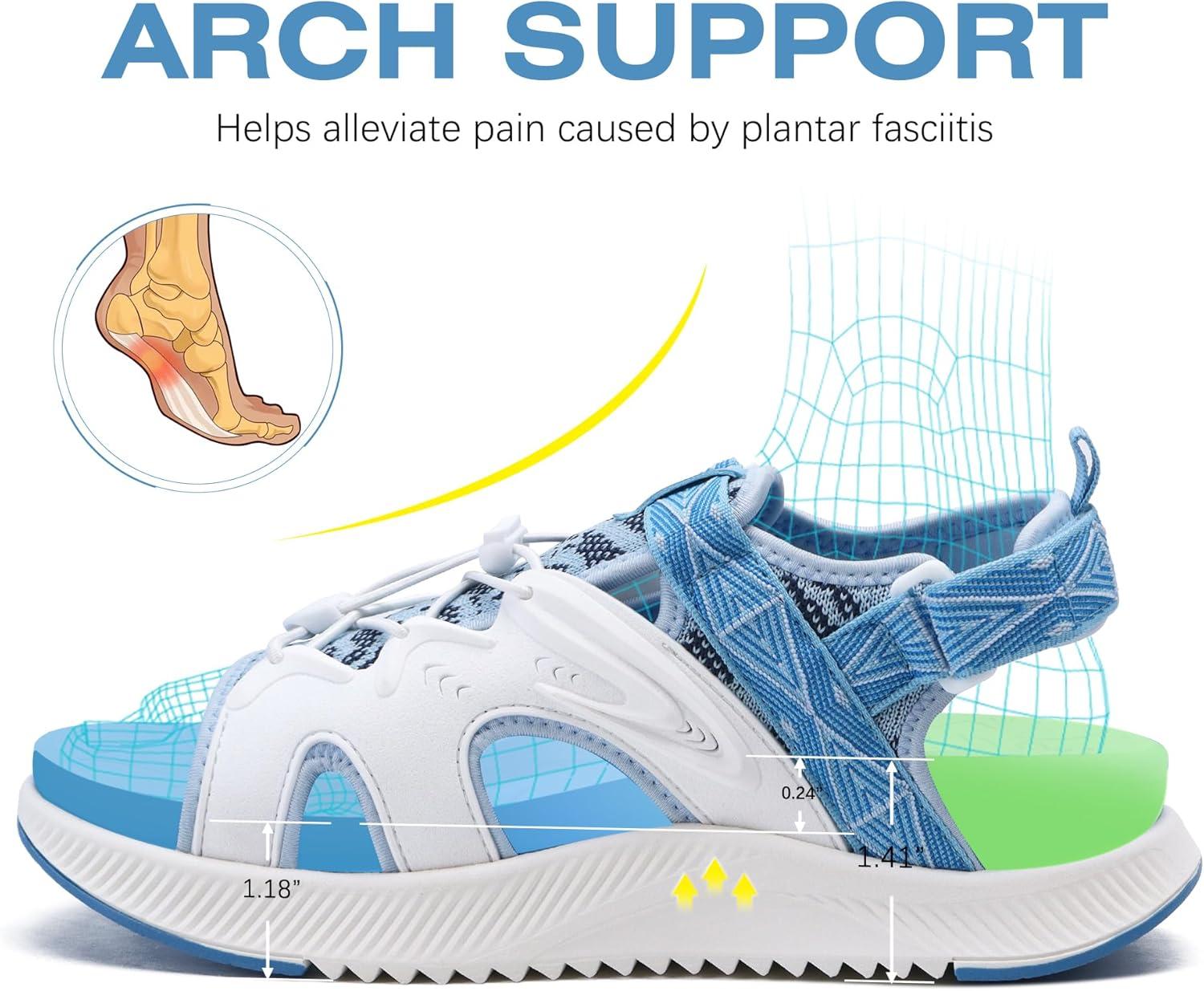 ONCAI Walking Sandals for Women,Sport Athletic Hiking Sandals With Arch Support Orthotic Outdoor Footbed for Plantar Fasciitis, Sandalias Mujer with Adjustable Straps (US Size 6-12)(Blue/White)