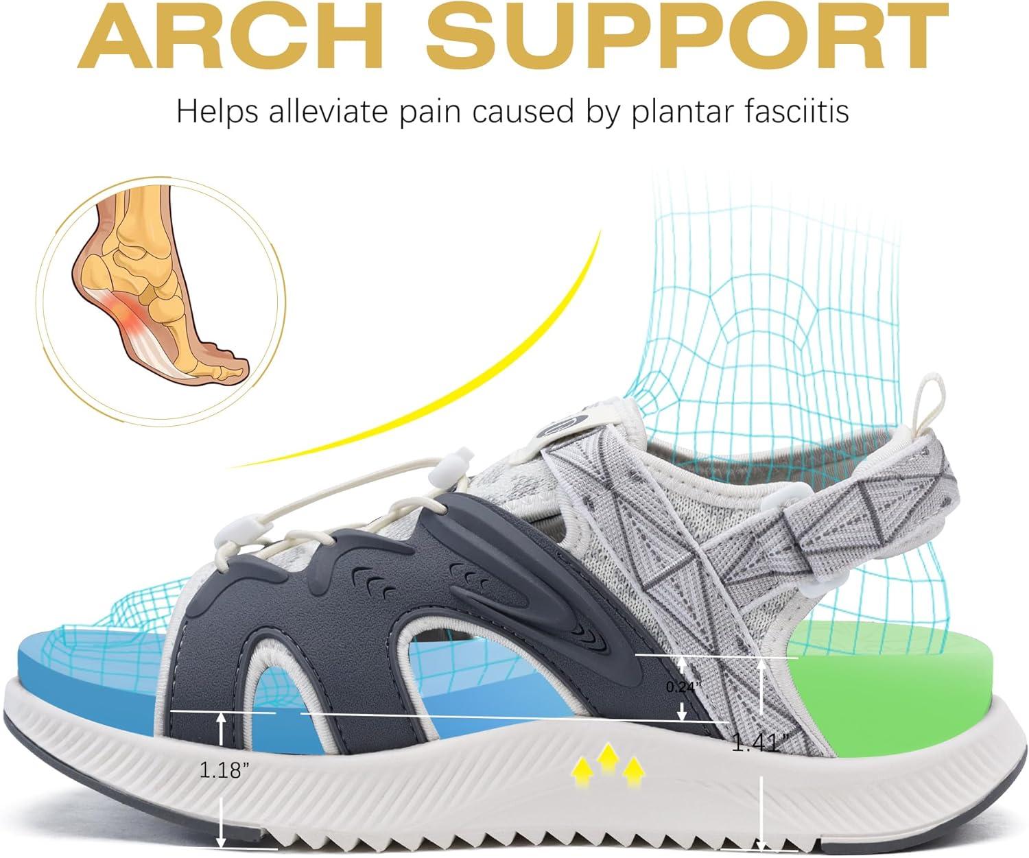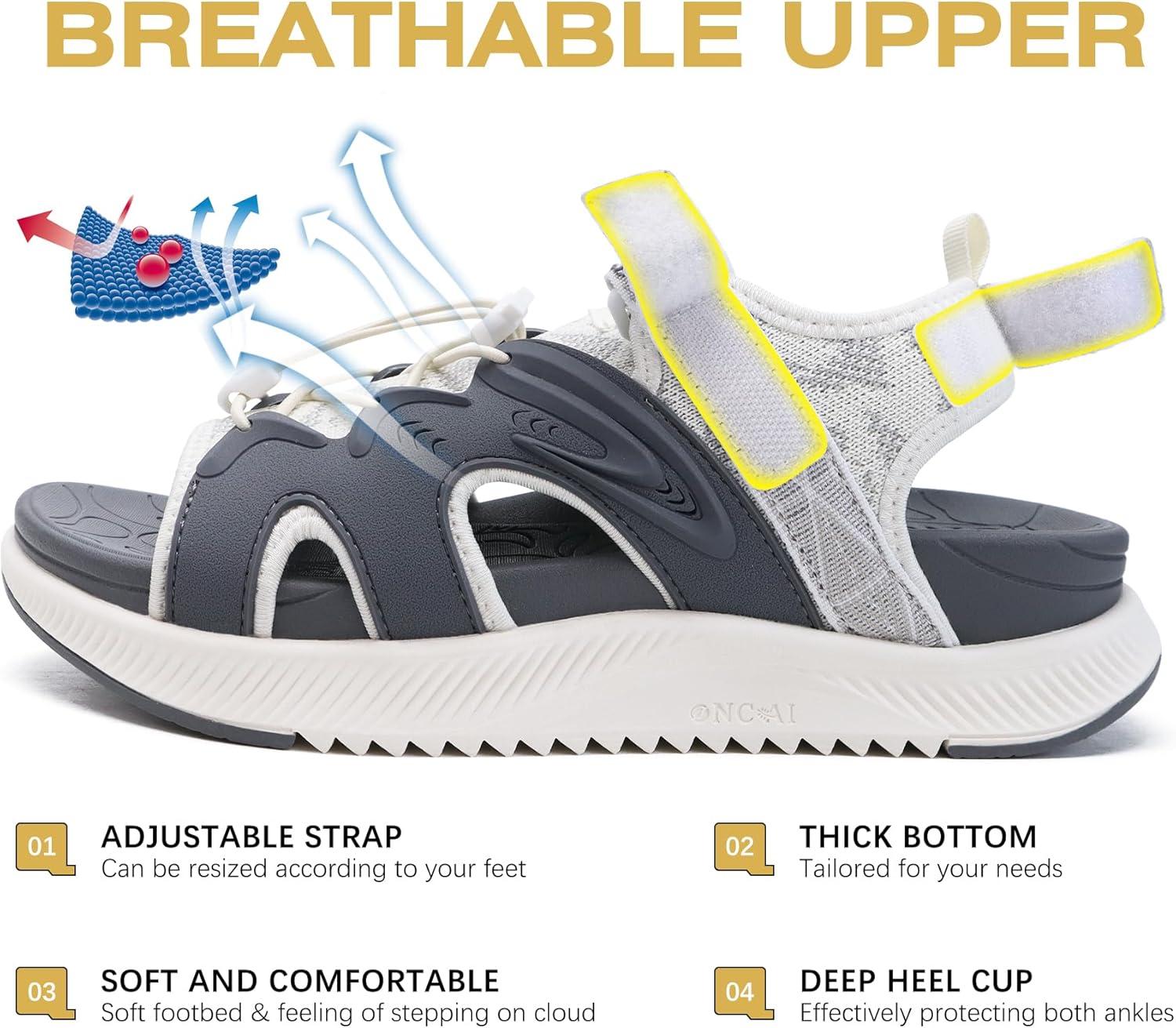 ONCAI Walking Sandals for Women,Sport Athletic Hiking Sandals With Arch Support Orthotic Outdoor Footbed for Plantar Fasciitis, Sandalias Mujer with Adjustable Straps (US Size 6-12)(Grey/White)