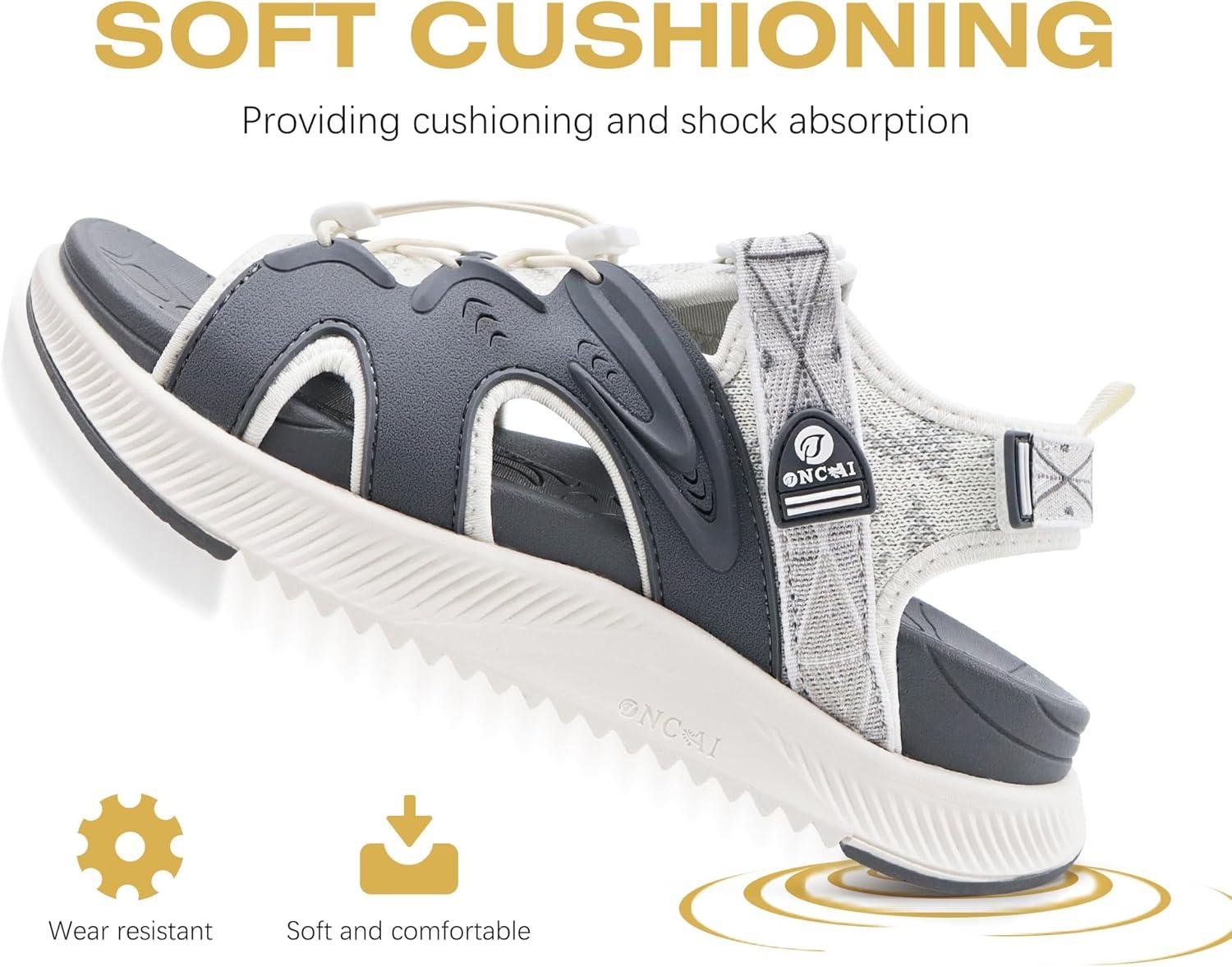 Get the ONCAI Walking Sandals for Women,Sport Athletic Hiking Sandals With Arch Support Orthotic Outdoor Footbed for Plantar Fasciitis, Sandalias Mujer with Adjustable Straps (US Size 6-12)(Grey/White) you want at a discounted price during our markdown sale event.