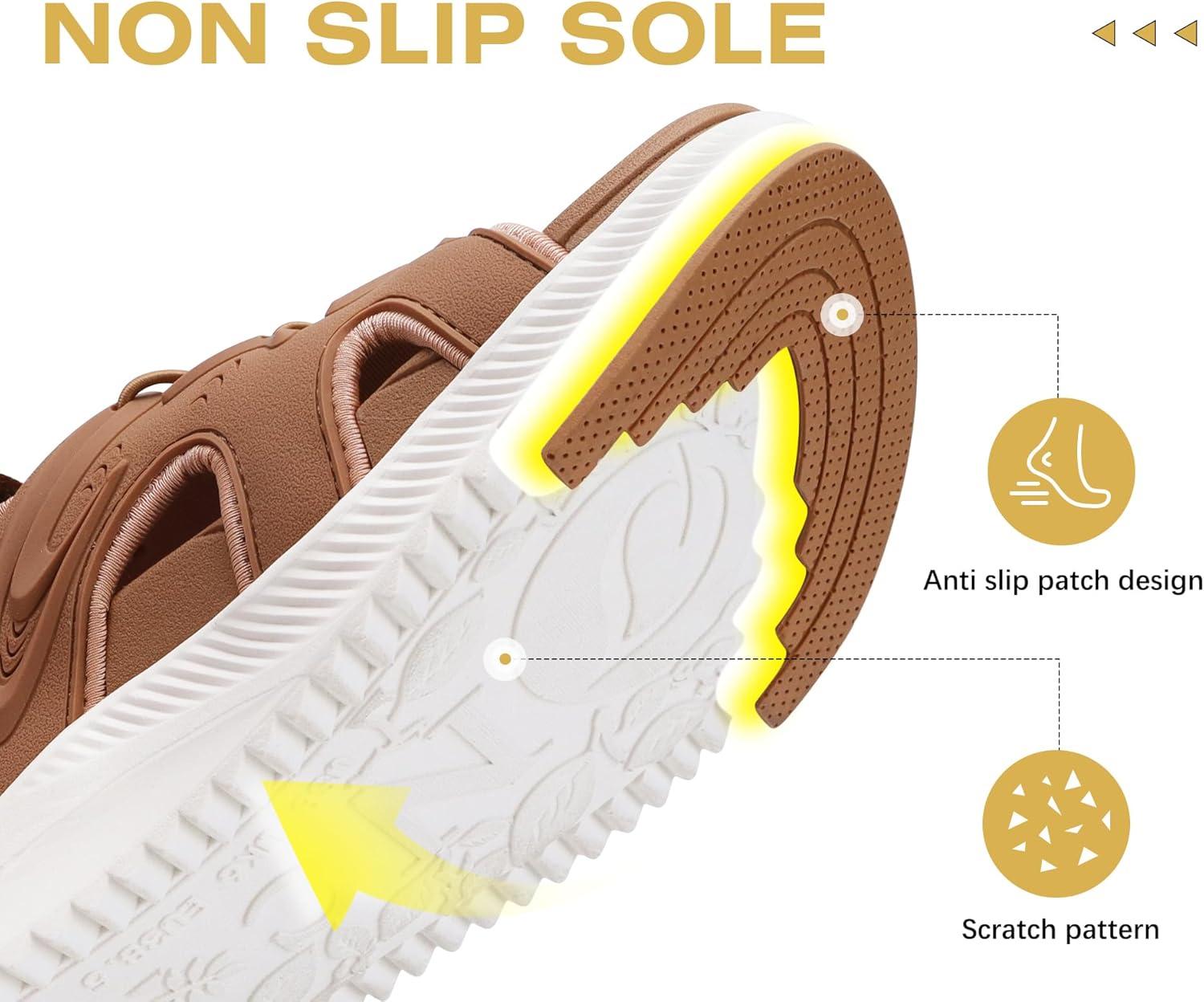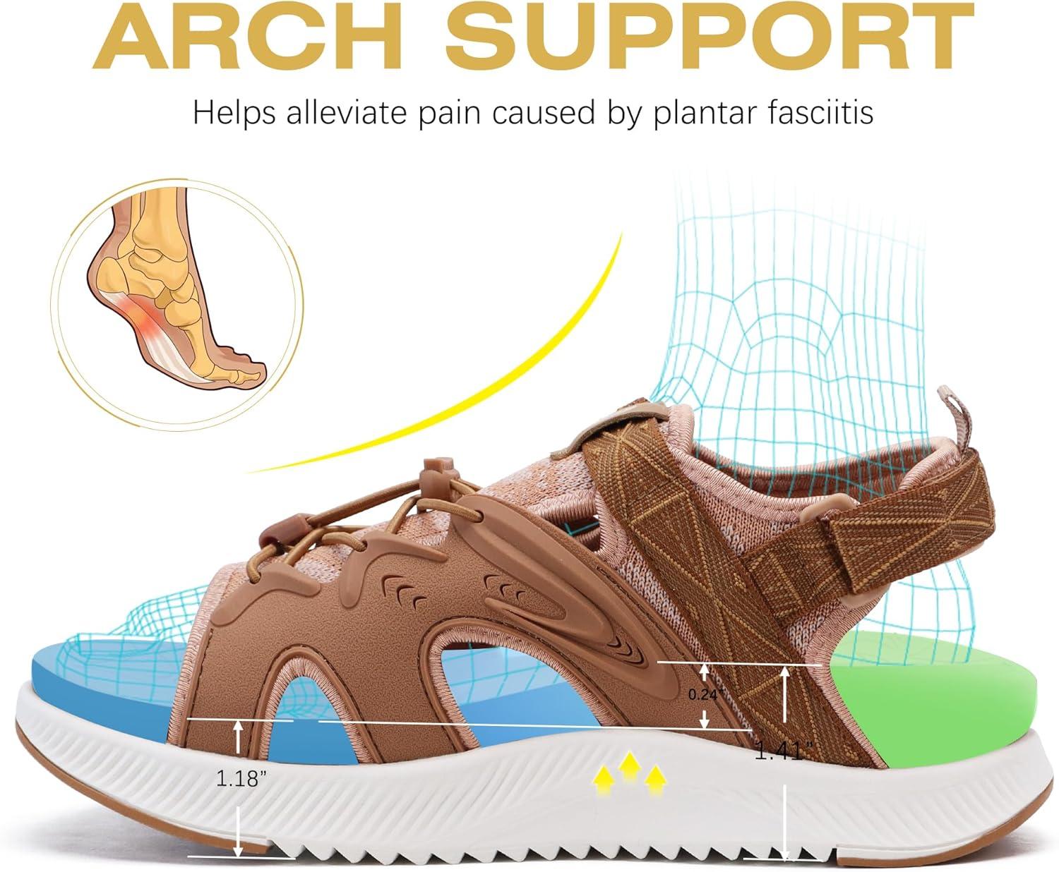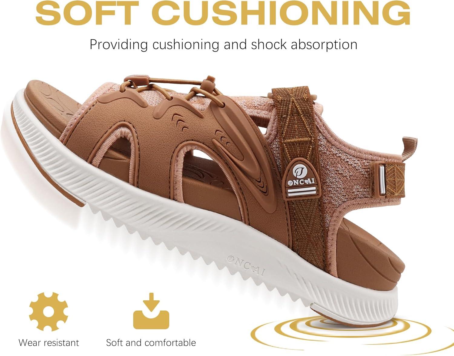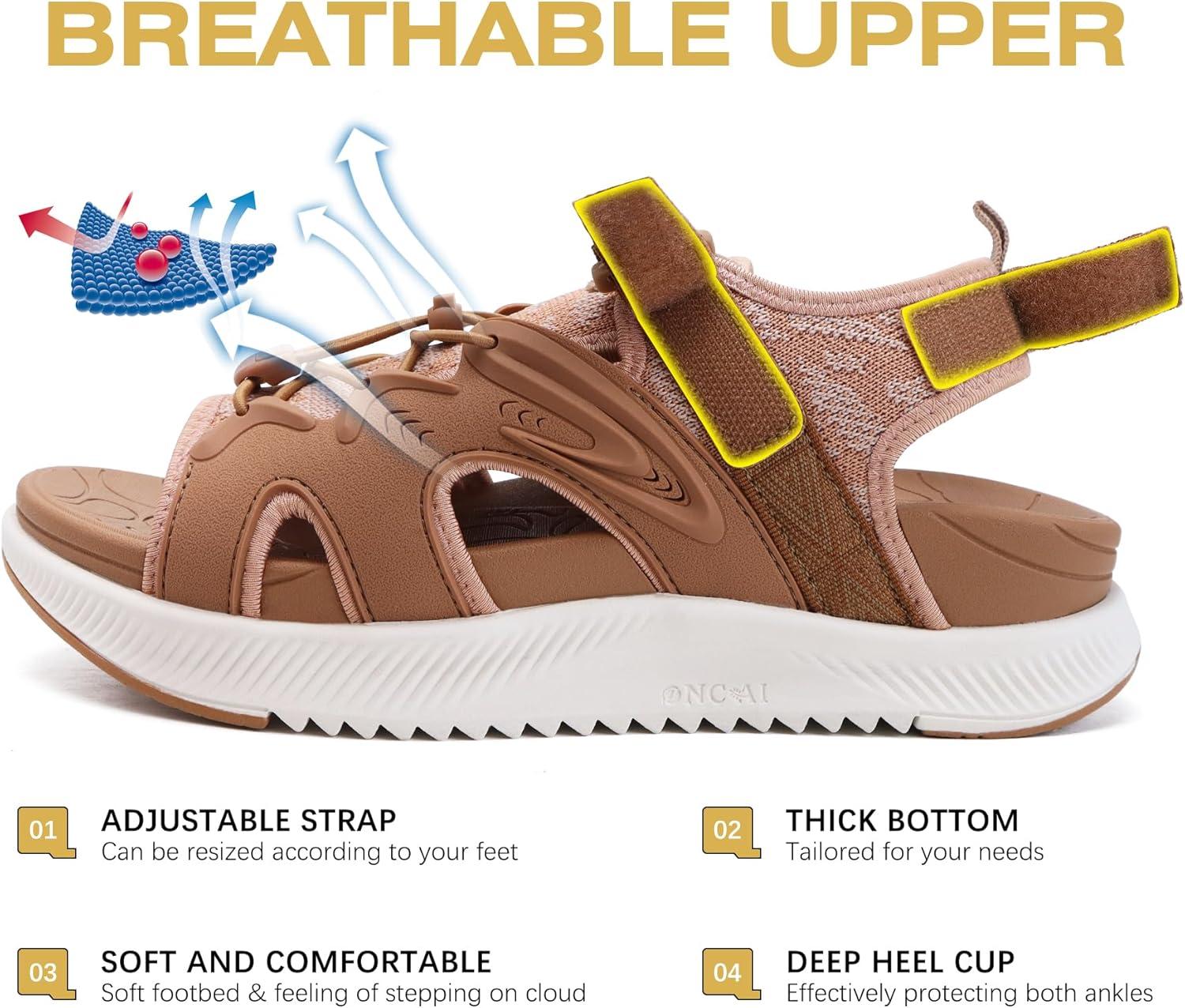 ONCAI Walking Sandals for Women,Sport Athletic Hiking Sandals With Arch Support Orthotic Outdoor Footbed for Plantar Fasciitis, Sandalias Mujer with Adjustable Straps (US Size 6-12)(Khaki/White)