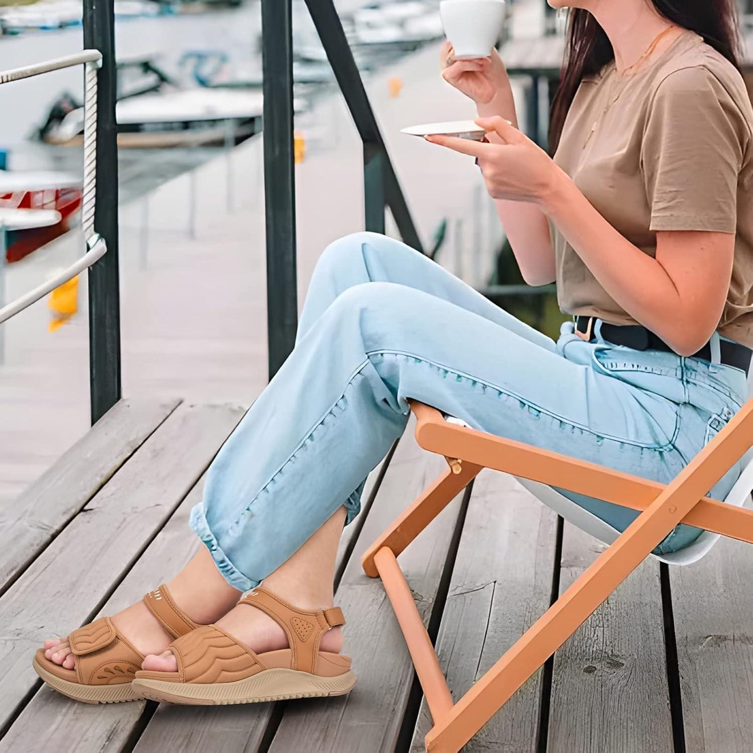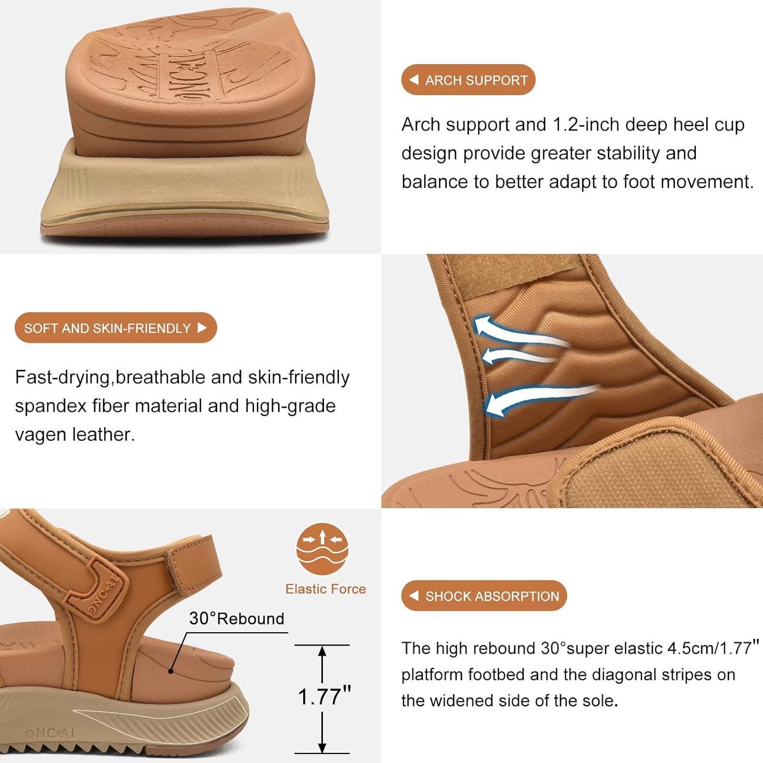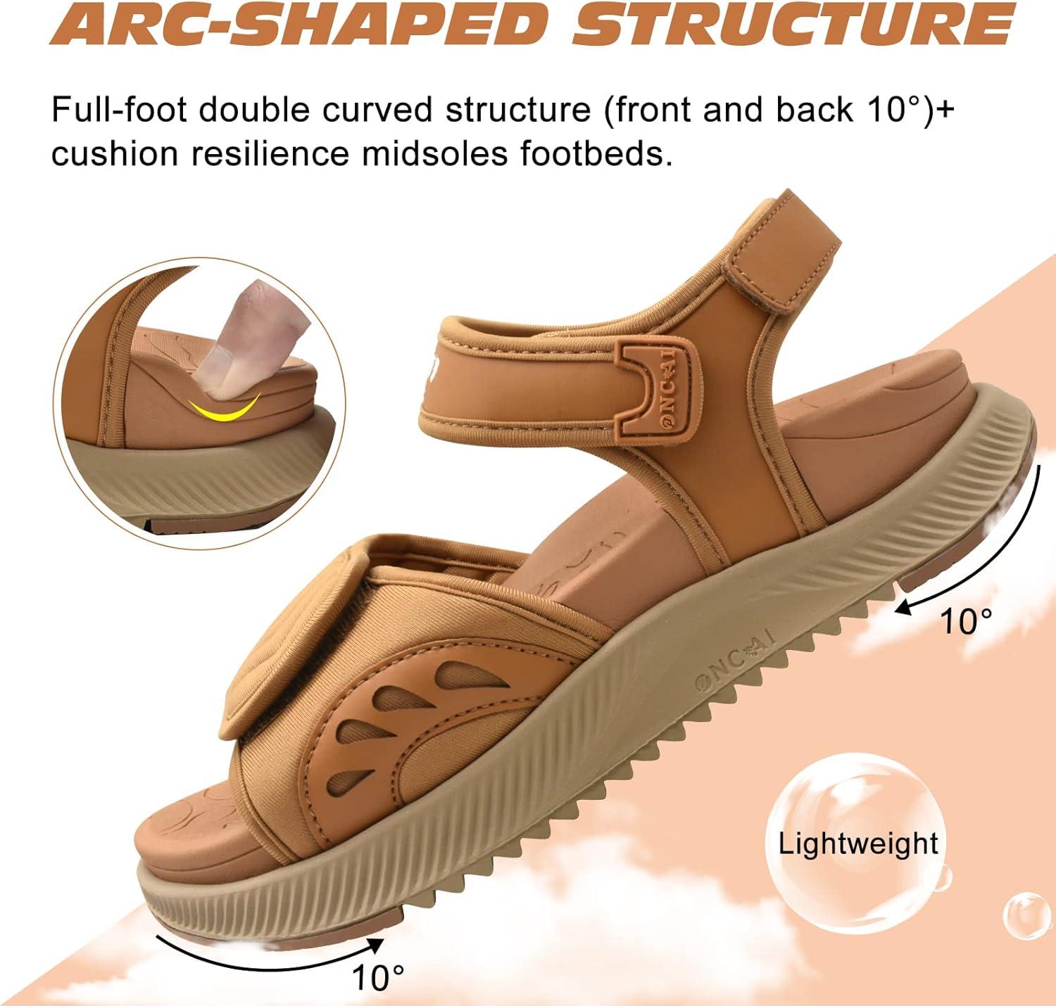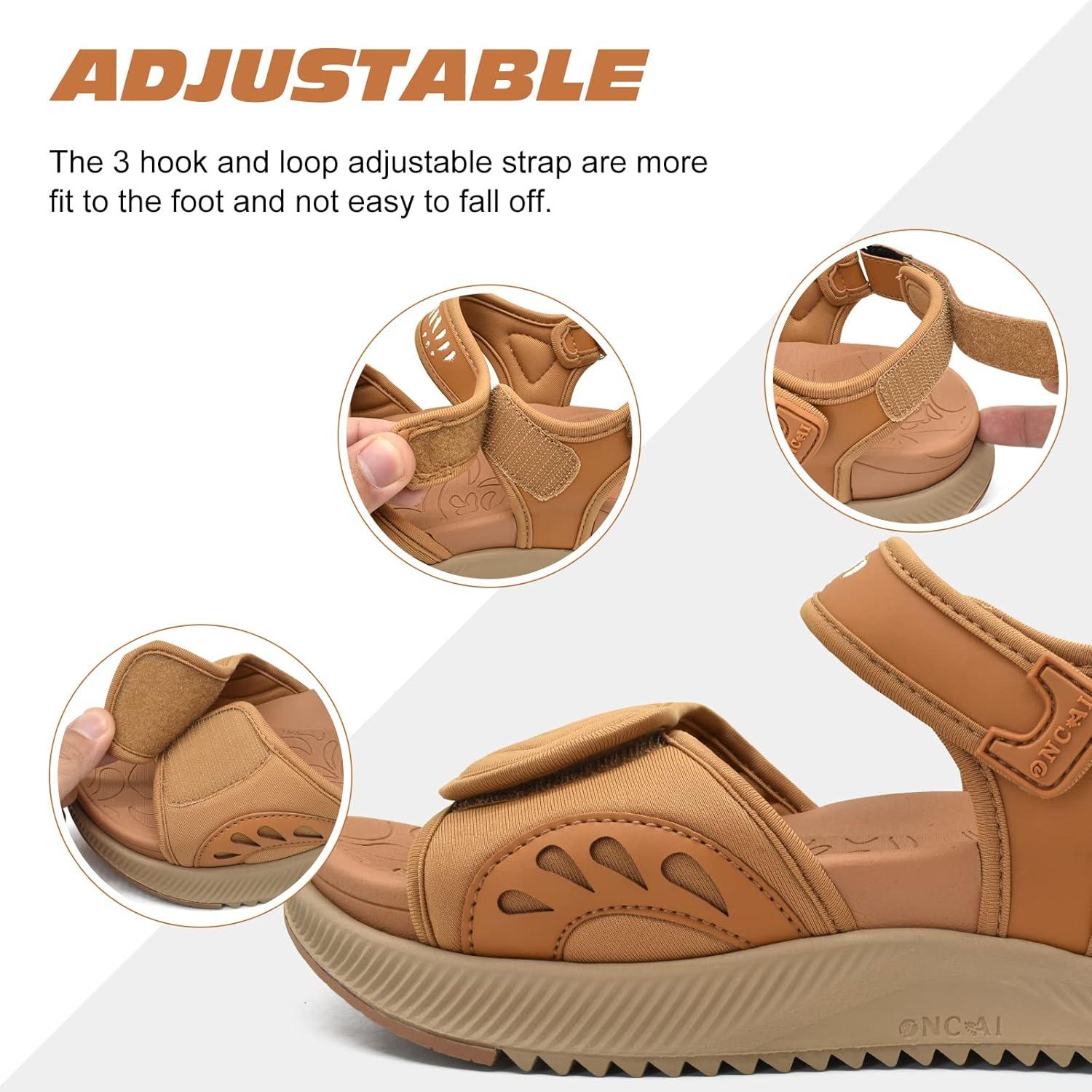 ONCAI Walking Sandals Women,Arch Support Hiking Sandals with Orthotic Outdoor Footbed for Plantar Fasciitis,Water Athletic Platform Sandalias Mujer with 3 Adjustable Strap (US Size 6-12)(Khaki/Beige)