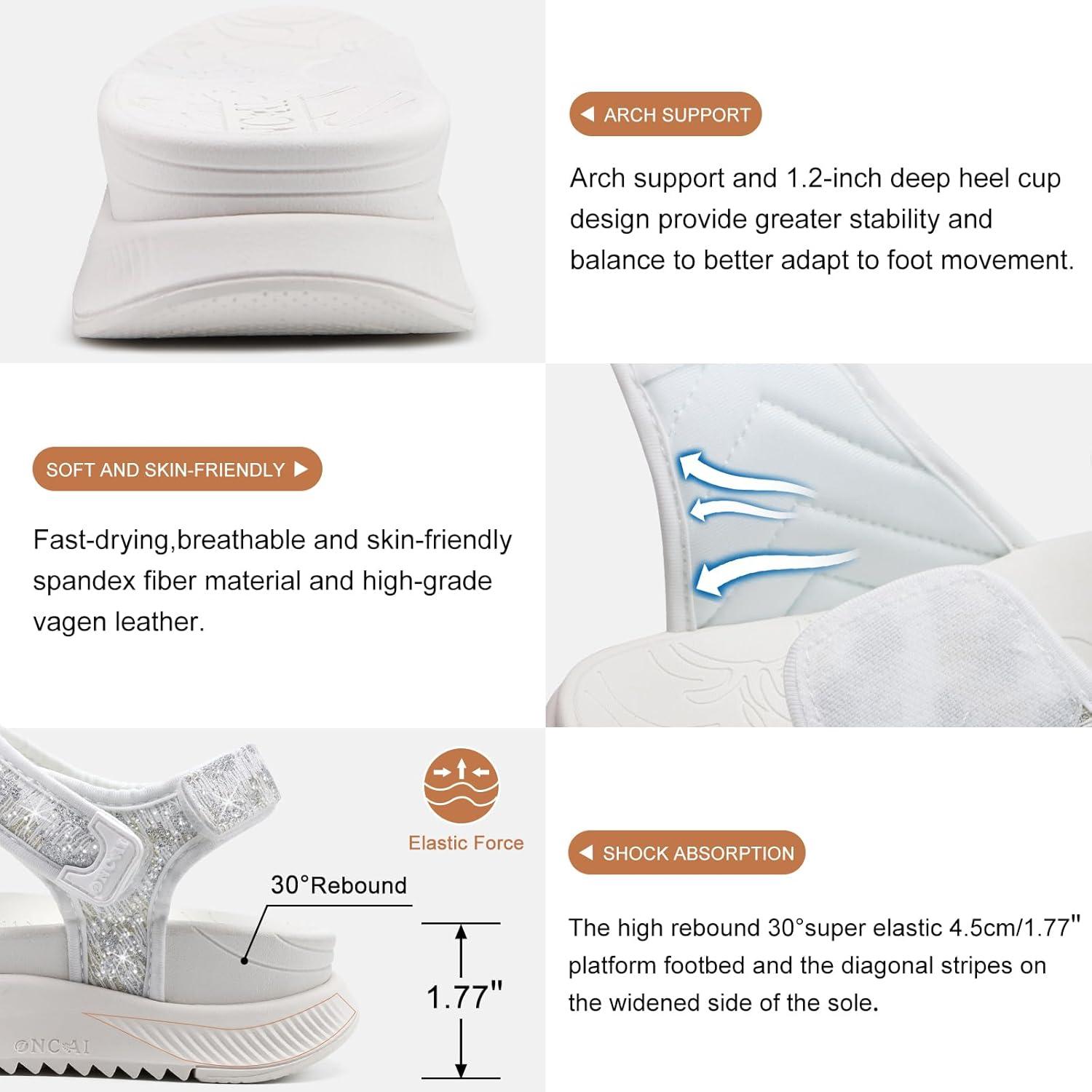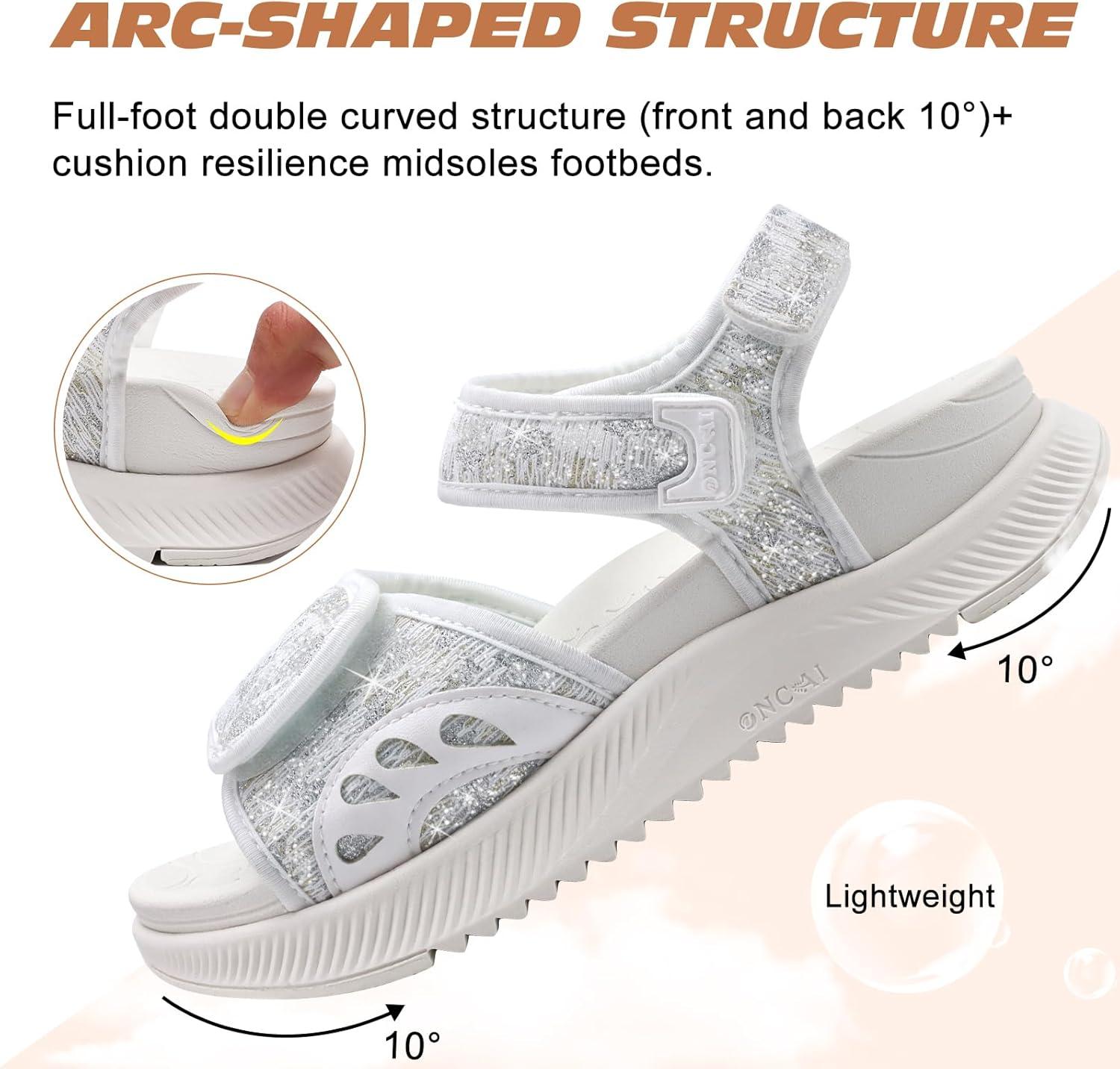ONCAI Walking Sandals Womens 2025,Arch Support Hiking Sandals with Orthotic Outdoor Footbed for Plantar Fasciitis,Water Athletic Platform Sandalias Mujer with 3 Adjustable Strap Glitter White Size 11