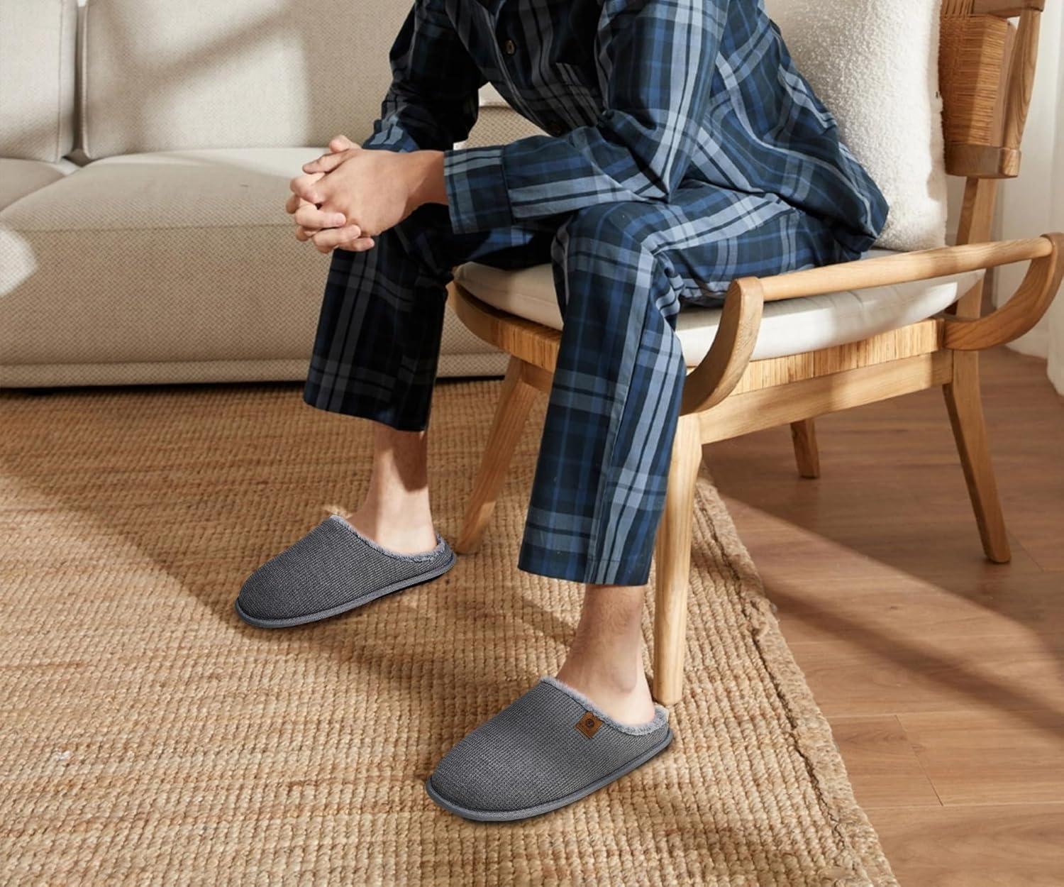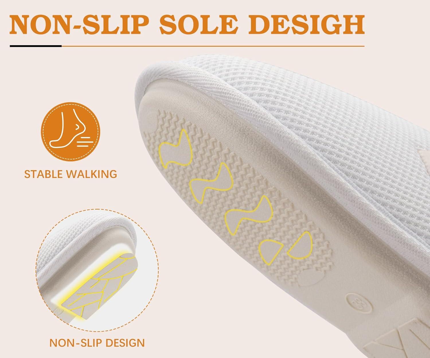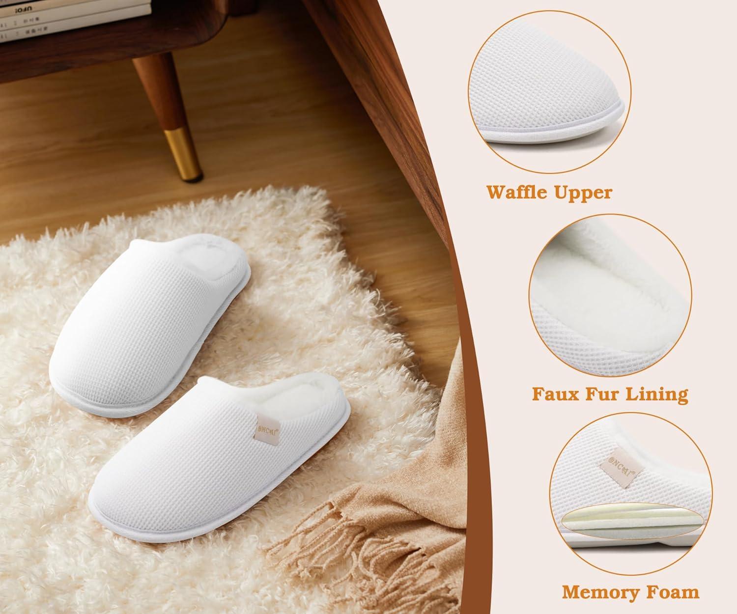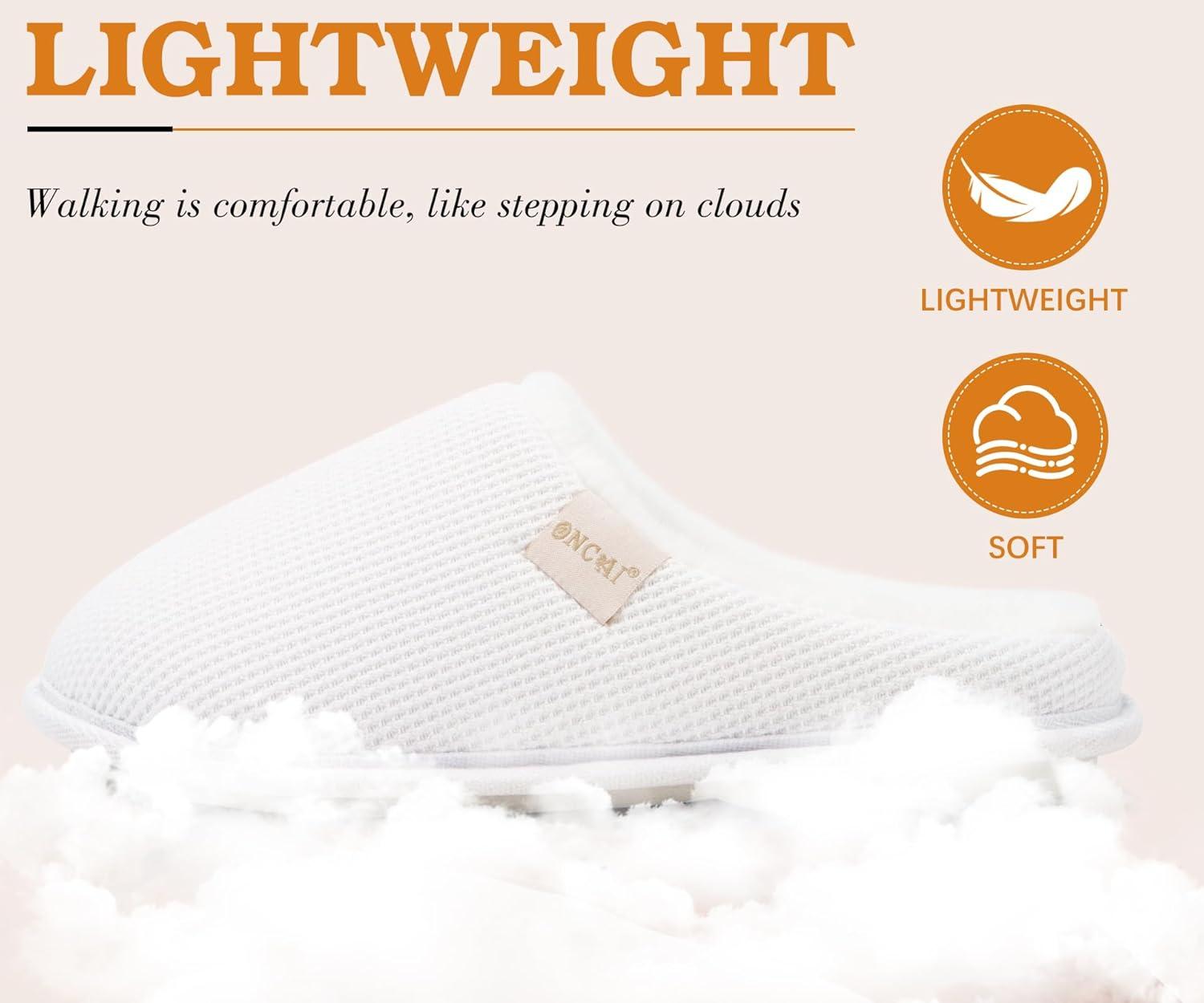 ONCAI White Women’s House Slippers US Size 7 and Gray Men’s House Slippers US Size 14.