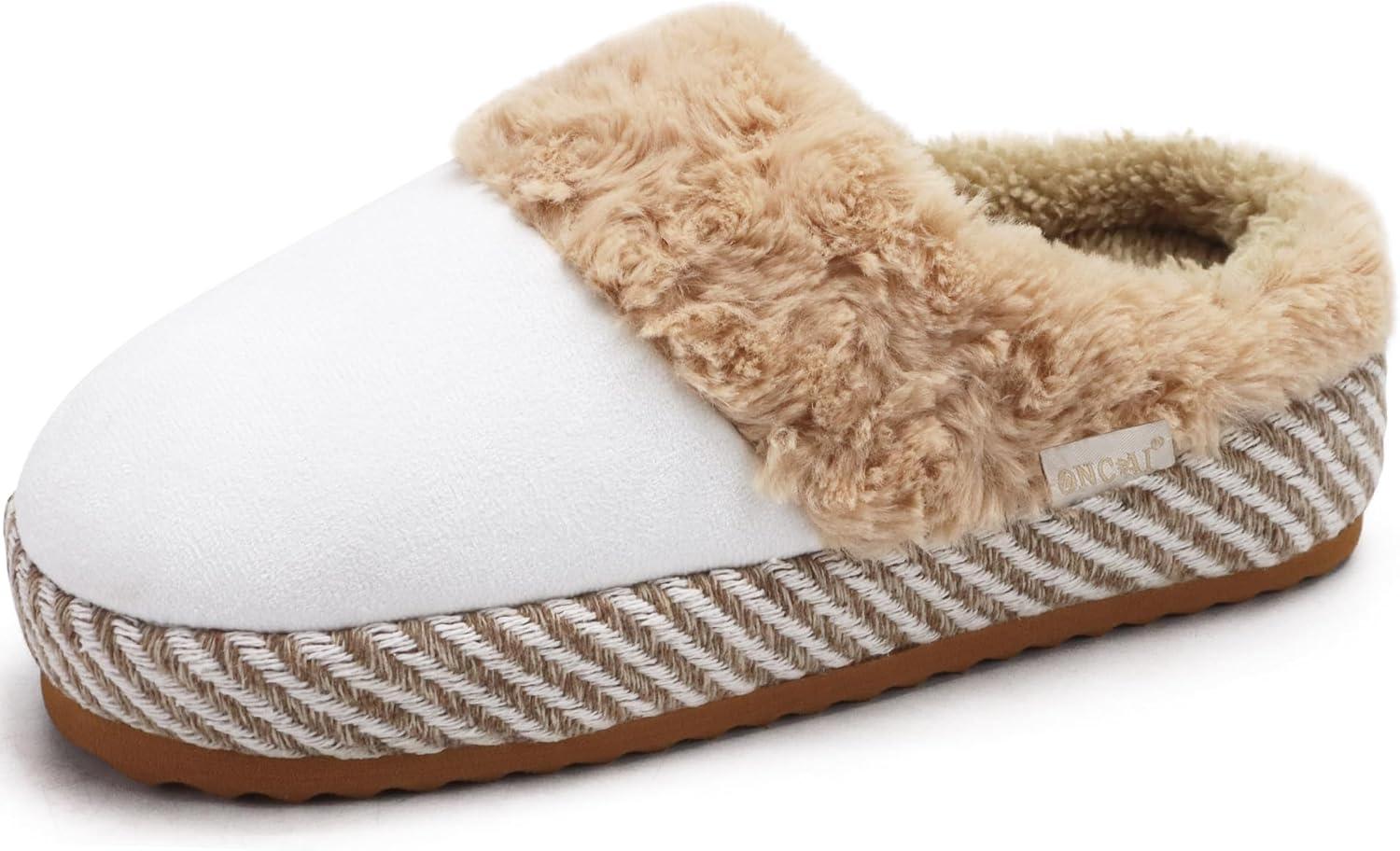 Get your hands on our newest ONCAI Womam Slippers with Cushion Yoga Mat Faux Fur Lining Fuzzy Suede Warm Winter House Slippers Shoes Ladies Indoor and Outdoor Cozy Rubber Sole US Size 5-11(White/Khaki) and enjoy a limited-time discount offer.