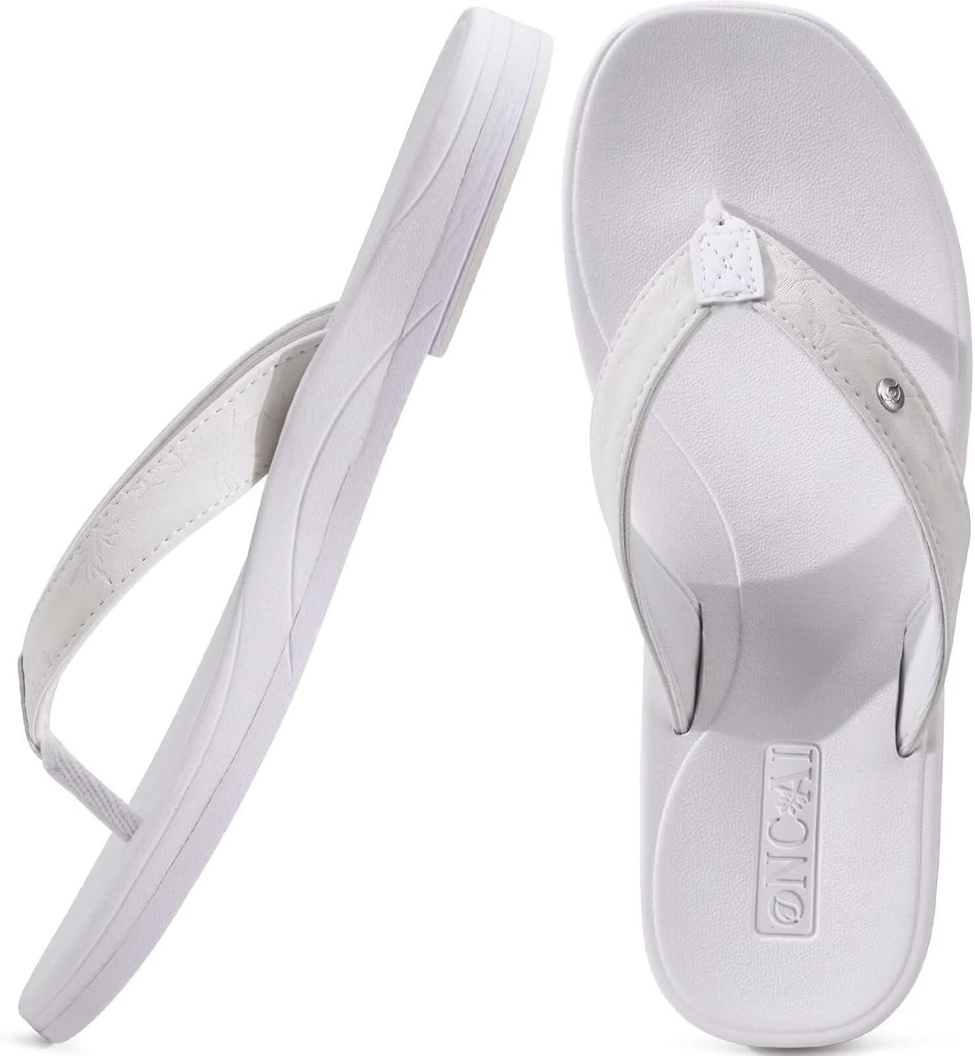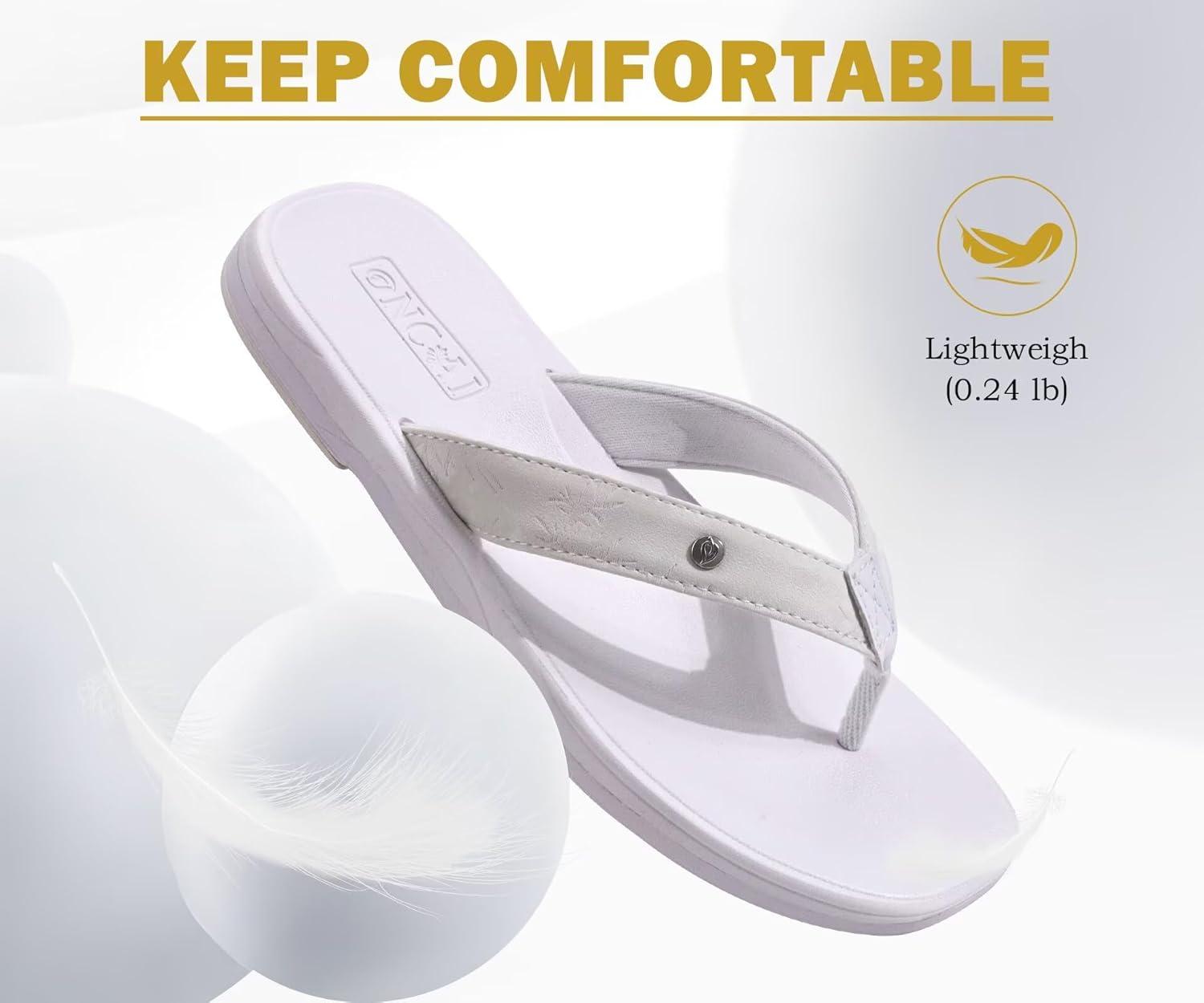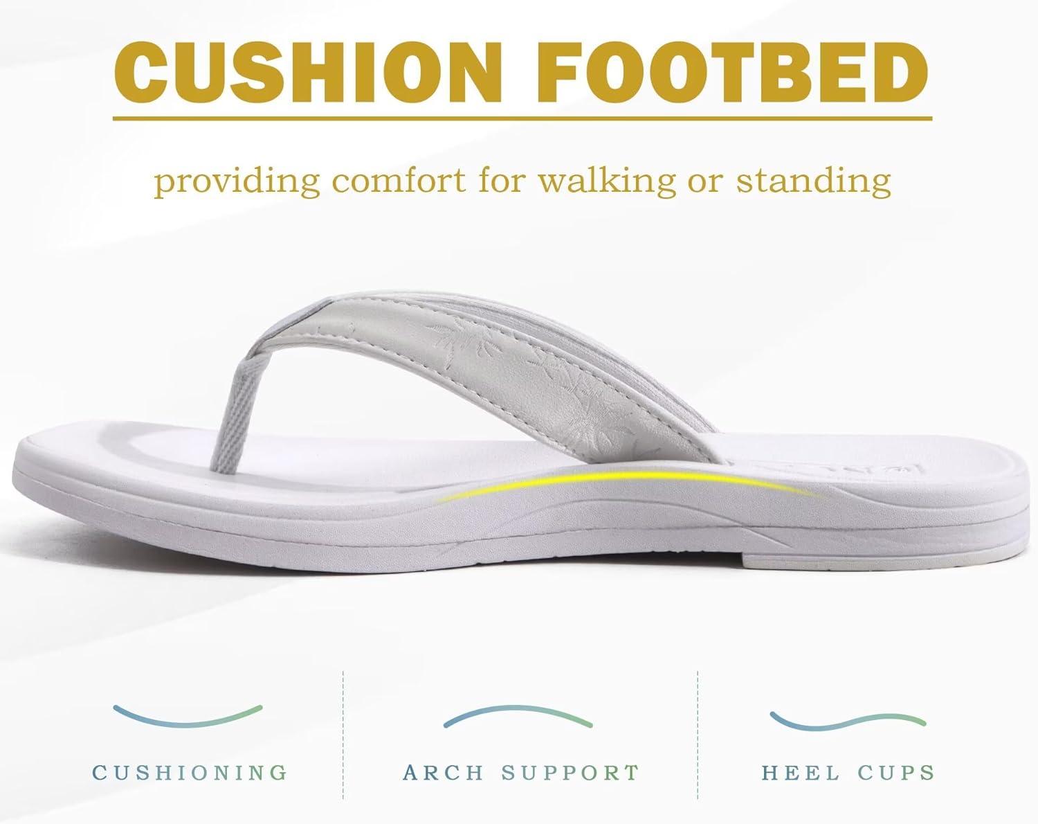 ONCAI Womens Cushion Flip Flops Women’s Soft Comfortable Flip Flop Fashion Summer Beach Cute Lightweight Sandals for Woman Size 6-11(White)