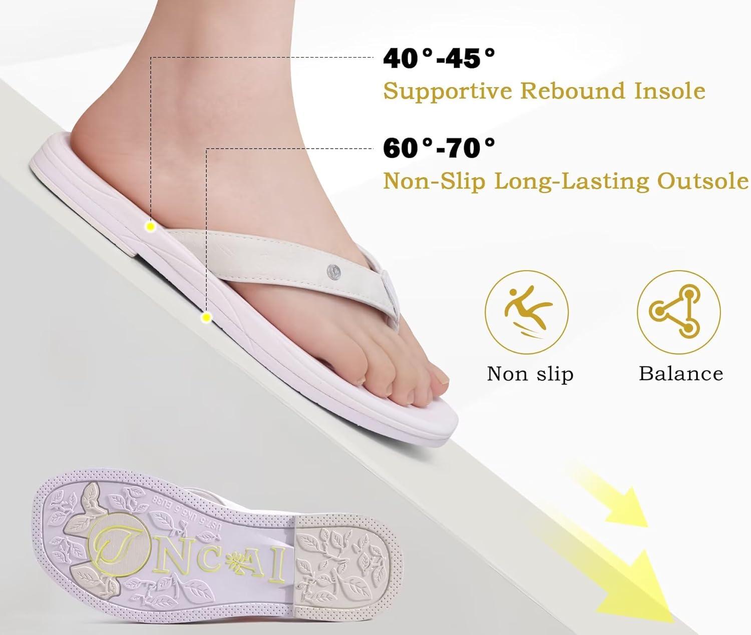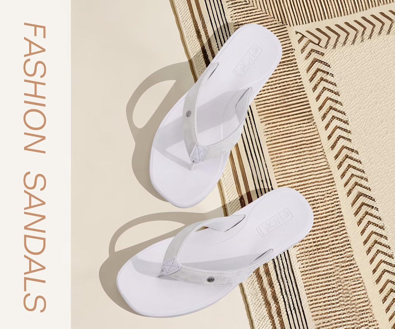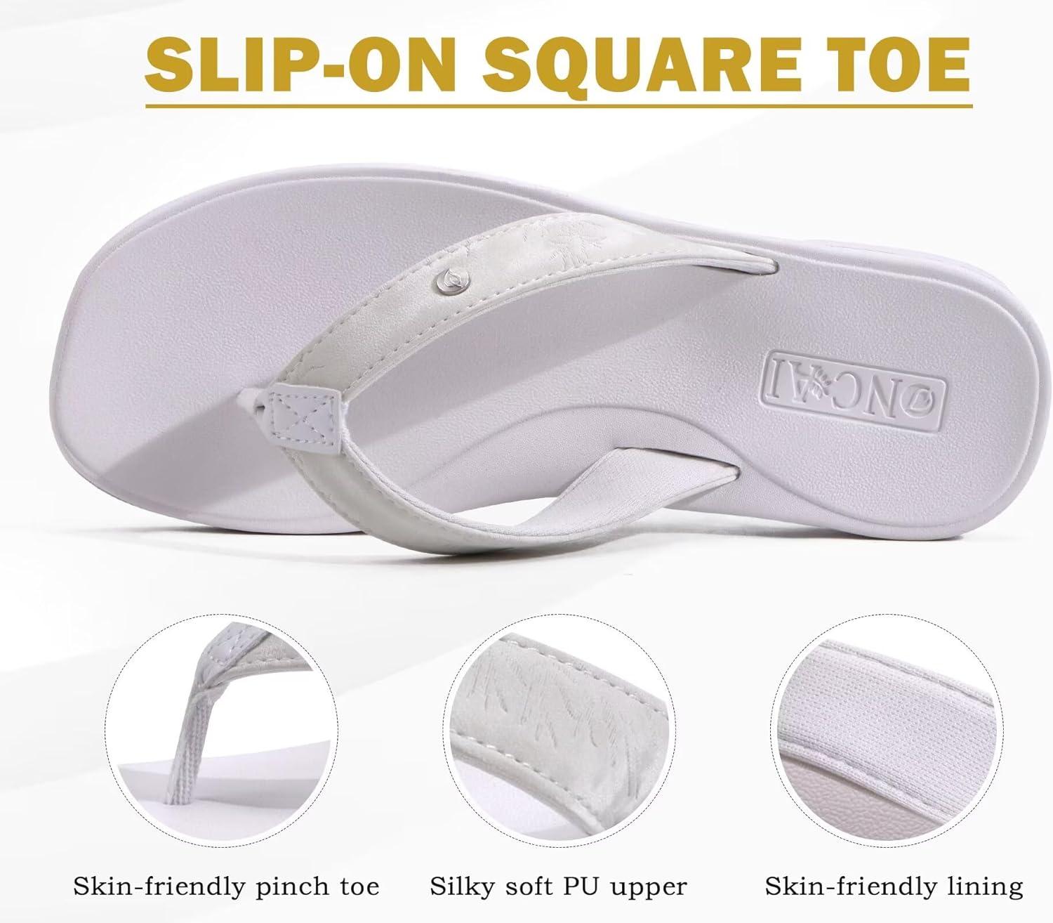 ONCAI Womens Cushion Flip Flops Women’s Soft Comfortable Flip Flop Fashion Summer Beach Cute Lightweight Sandals for Woman Size 6-11(White)