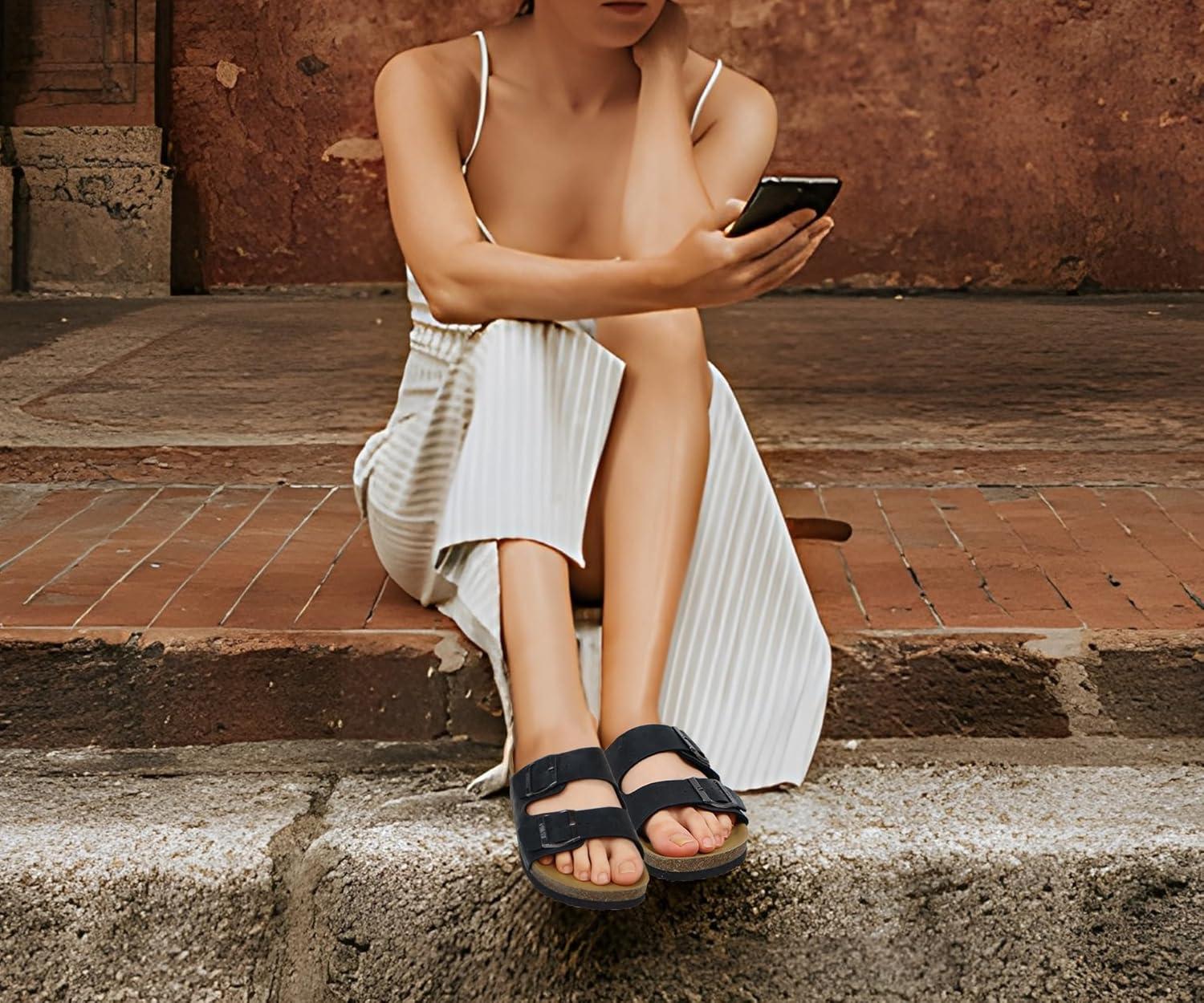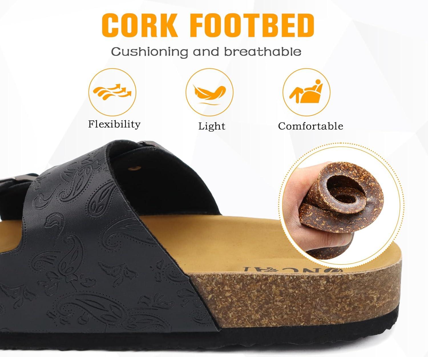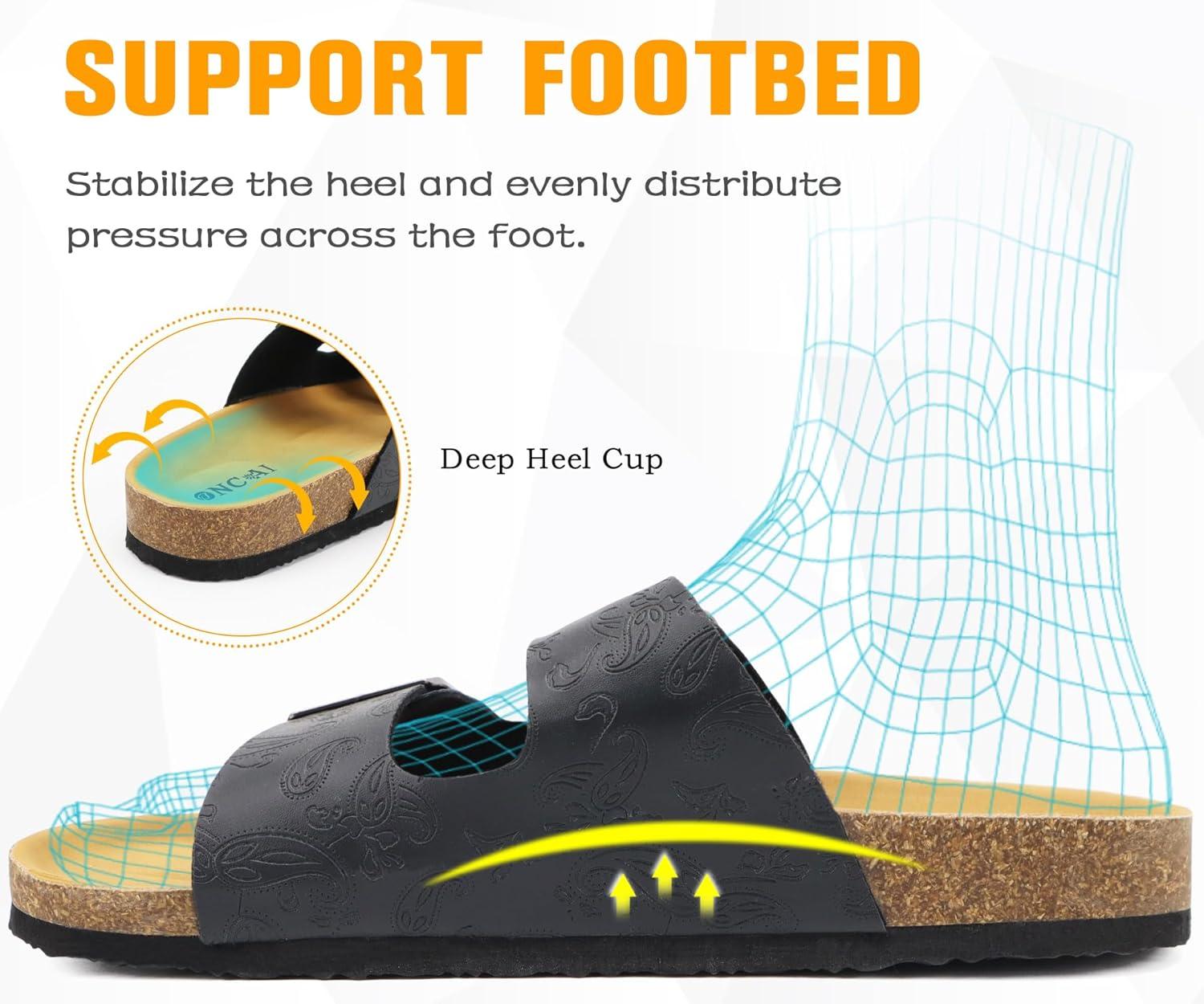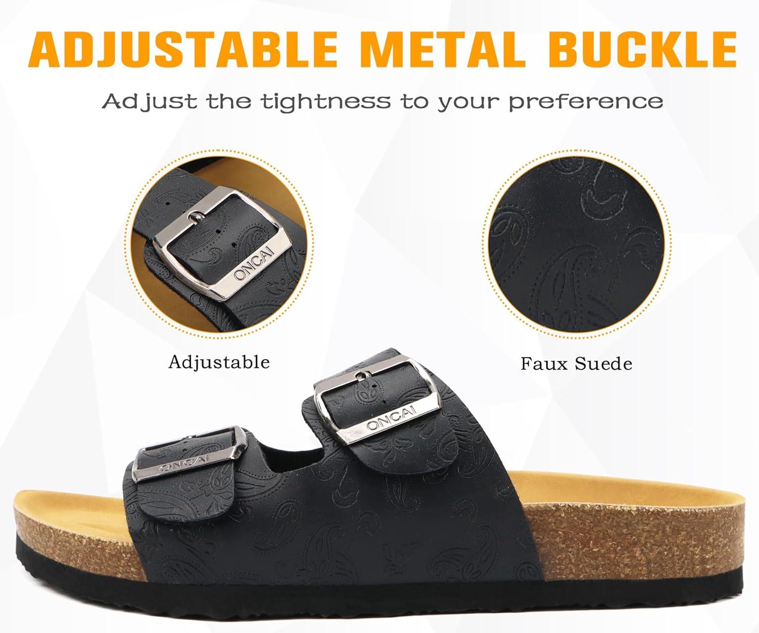 Save up to 40% on ONCAI Womens Flat Slide Sandals with Arch Support 2 Strap Adjustable Buckle Slip on Slides Shoes Non Slip Rubber Sole(Black Floral) styles during our end-of-season sale.