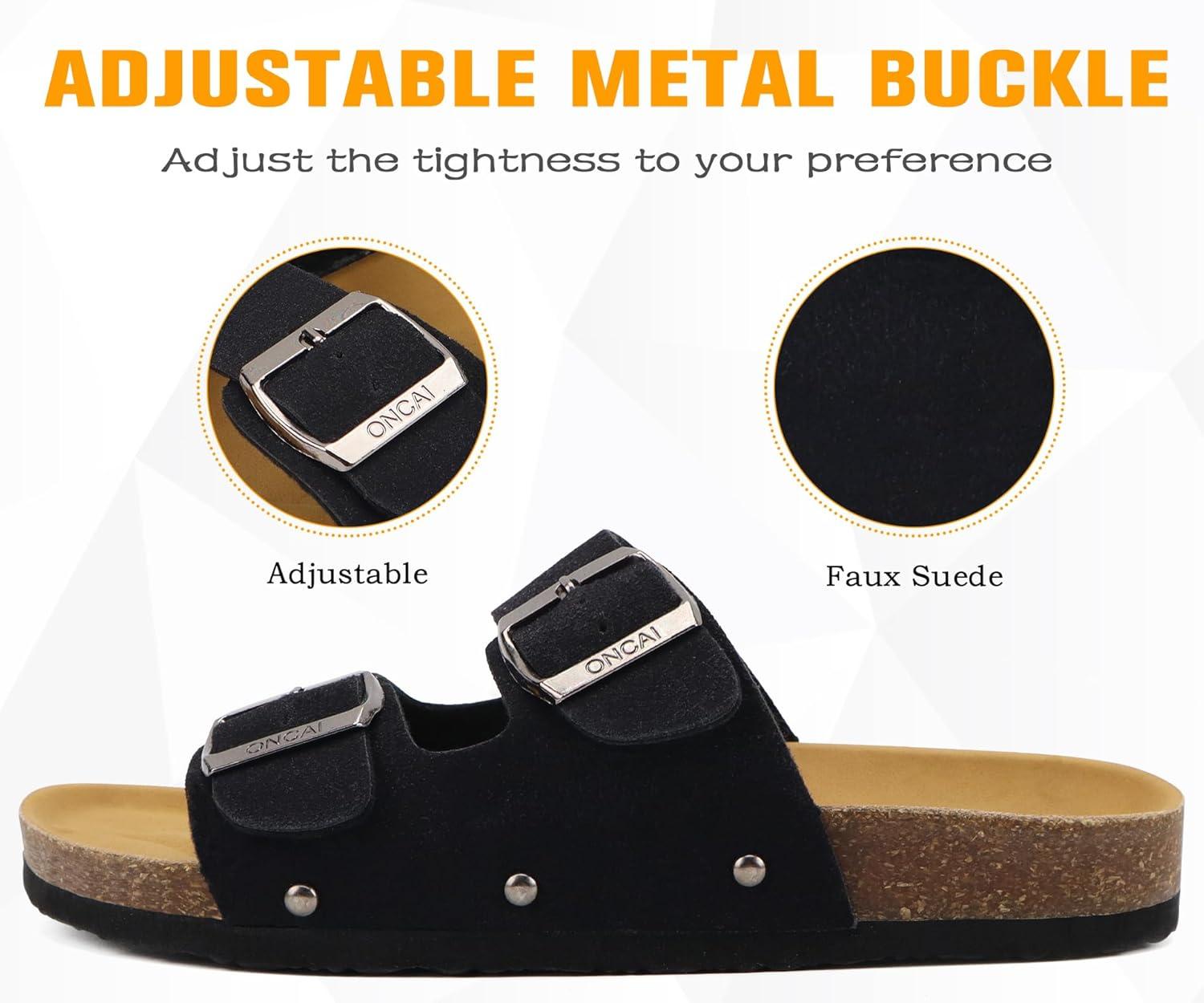 Discover the latest ONCAI Womens Flat Slide Sandals with Arch Support 2 Strap Adjustable Buckle Slip on Slides Shoes Non Slip Rubber Sole(Black) from and take advantage of our limited-time introductory offer.