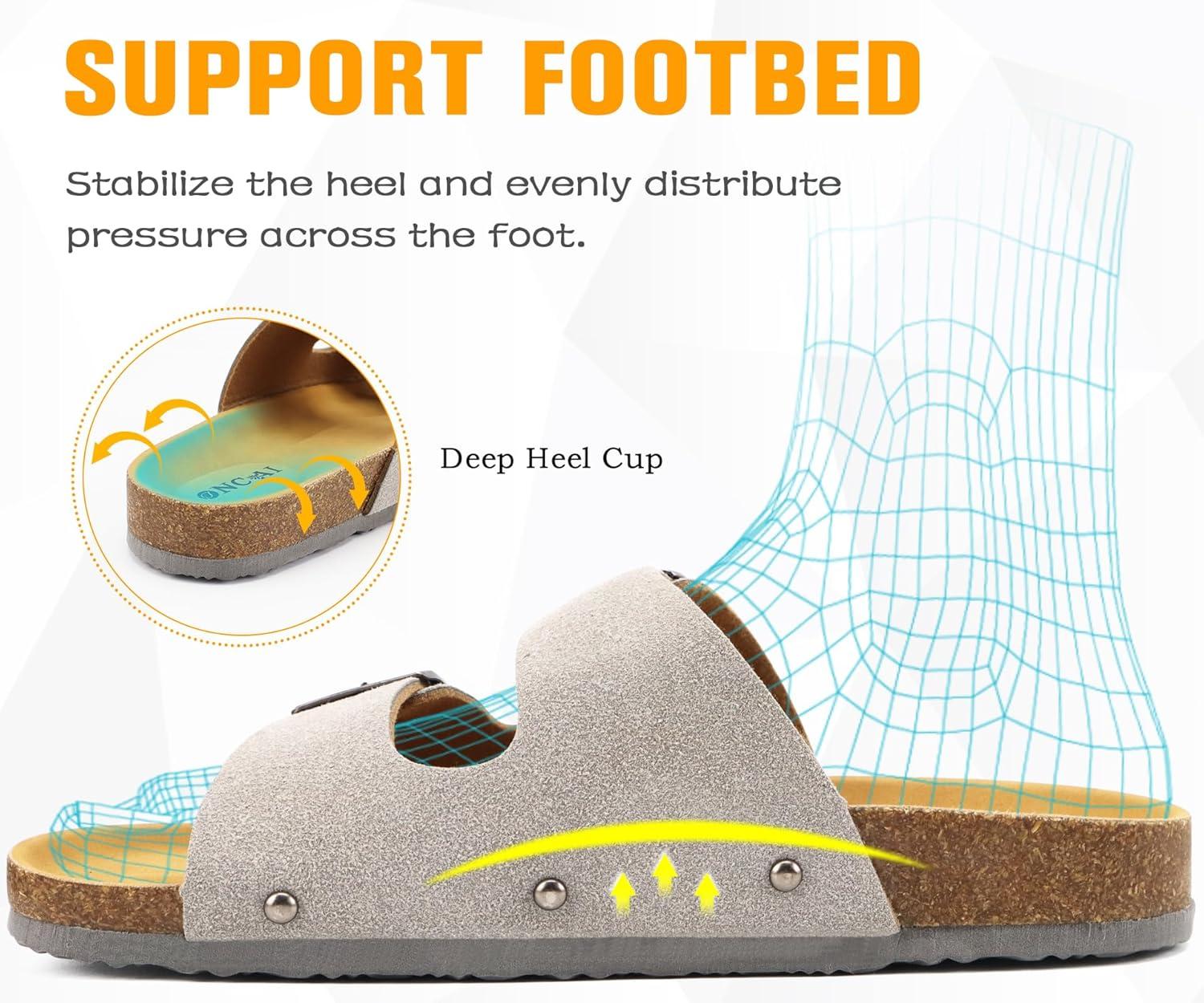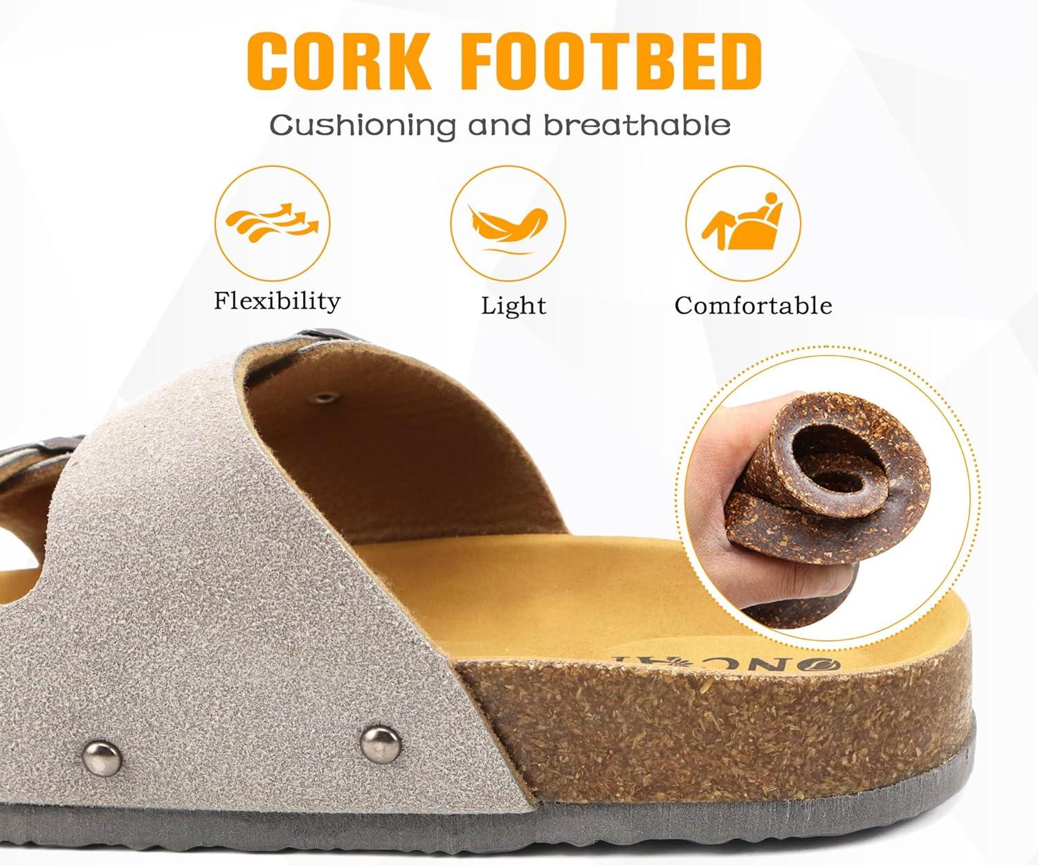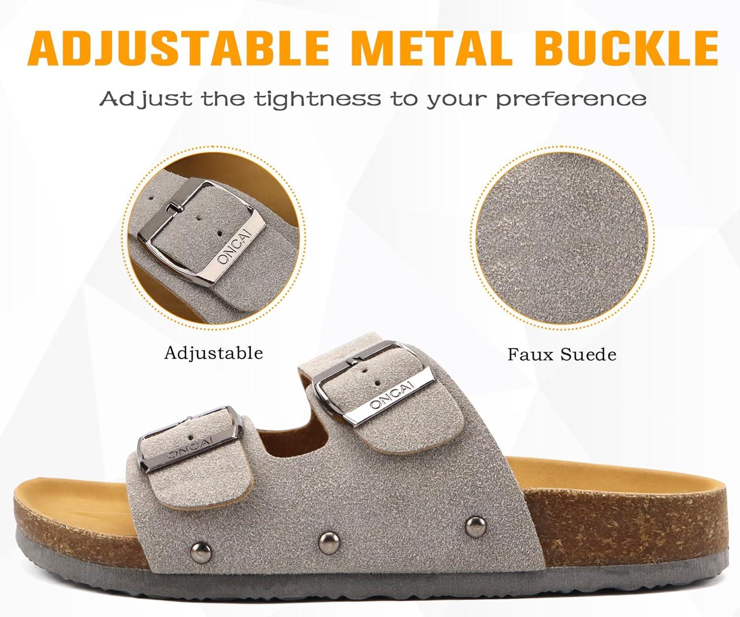 Save up to 40% on ONCAI Womens Flat Slide Sandals with Arch Support 2 Strap Adjustable Buckle Slip on Slides Shoes Non Slip Rubber Sole(Grey) styles during our end-of-season sale.
