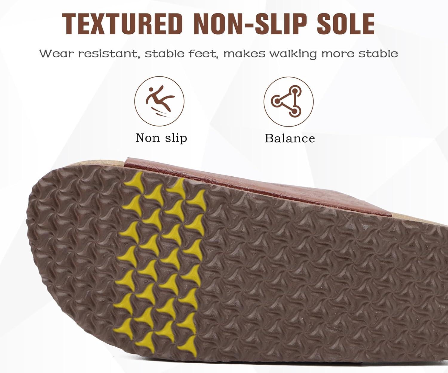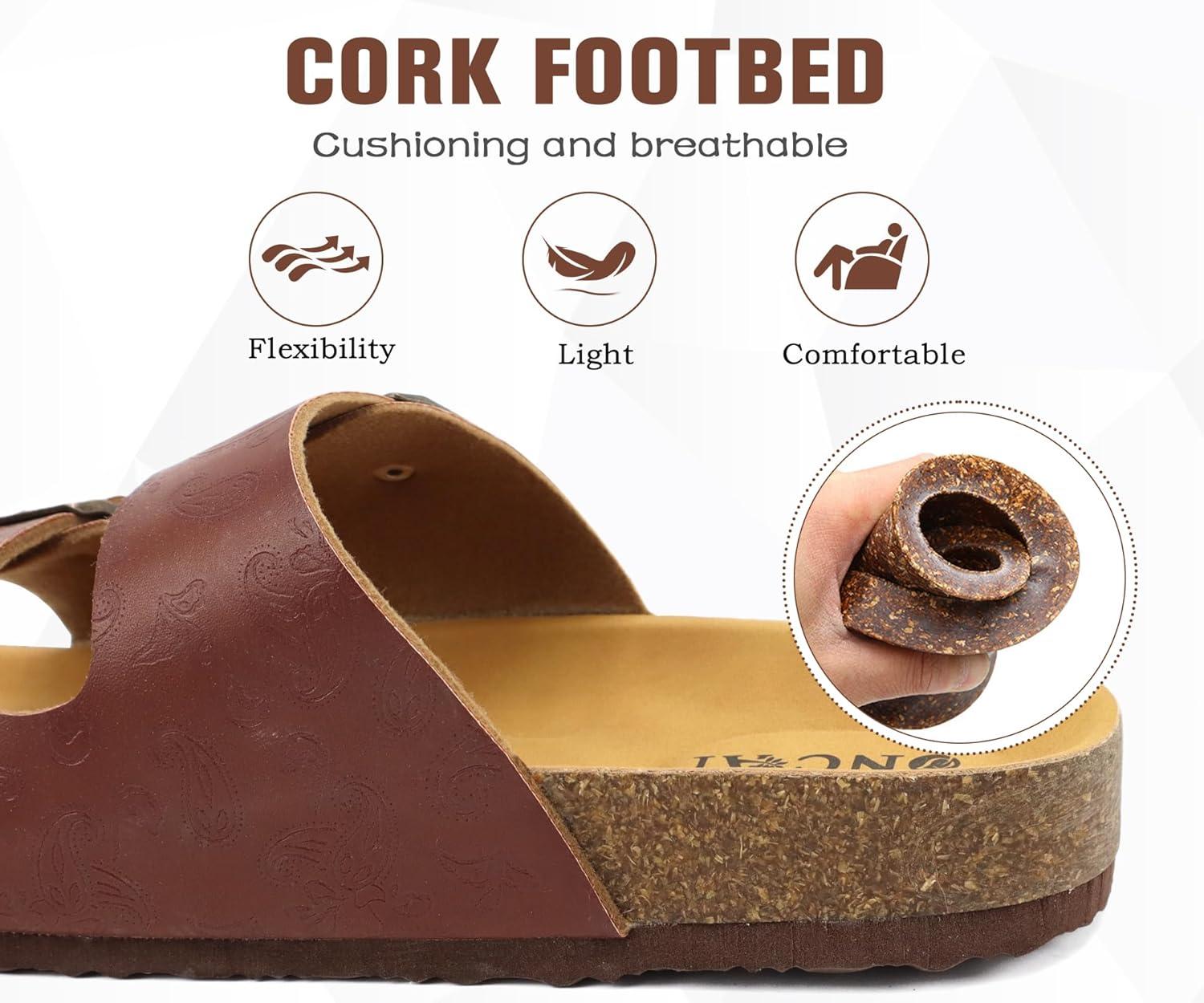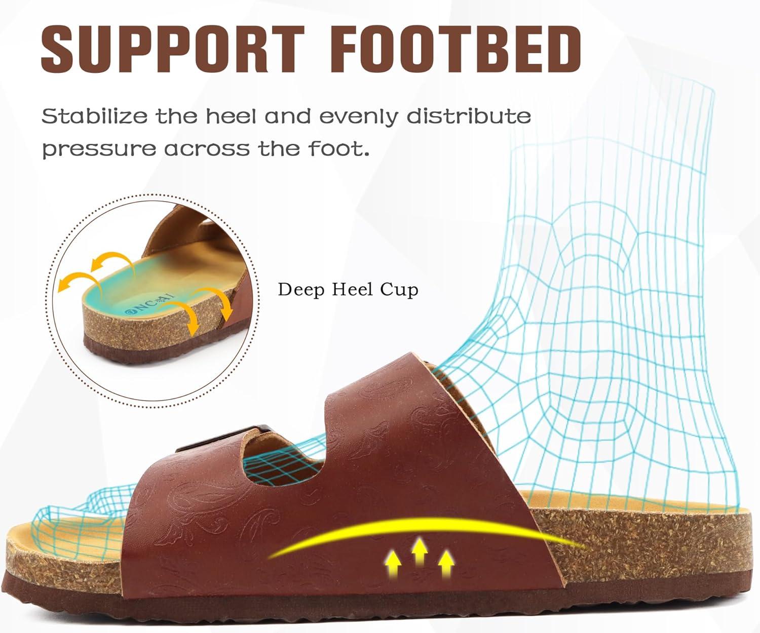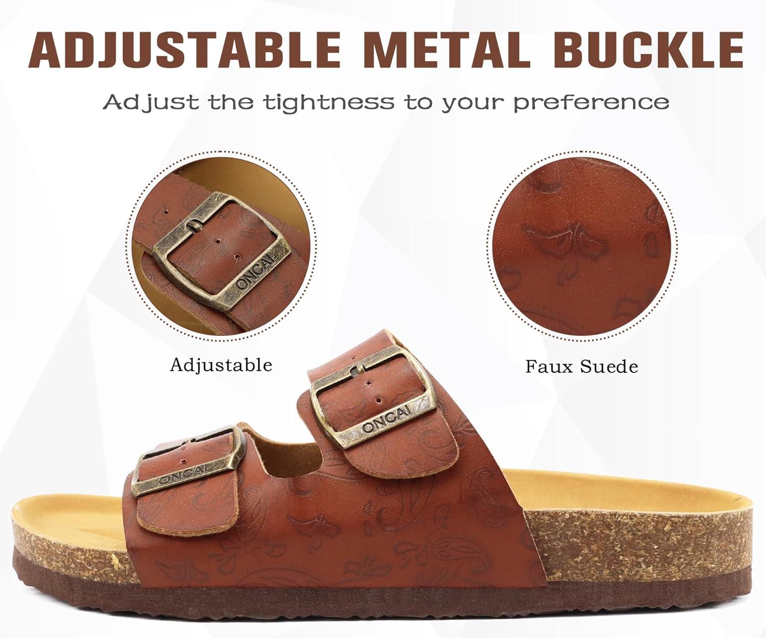 ONCAI Womens Flat Slide Sandals with Arch Support 2 Strap Adjustable Buckle Slip on Slides Shoes Non Slip Rubber Sole(Whiskey Floral)