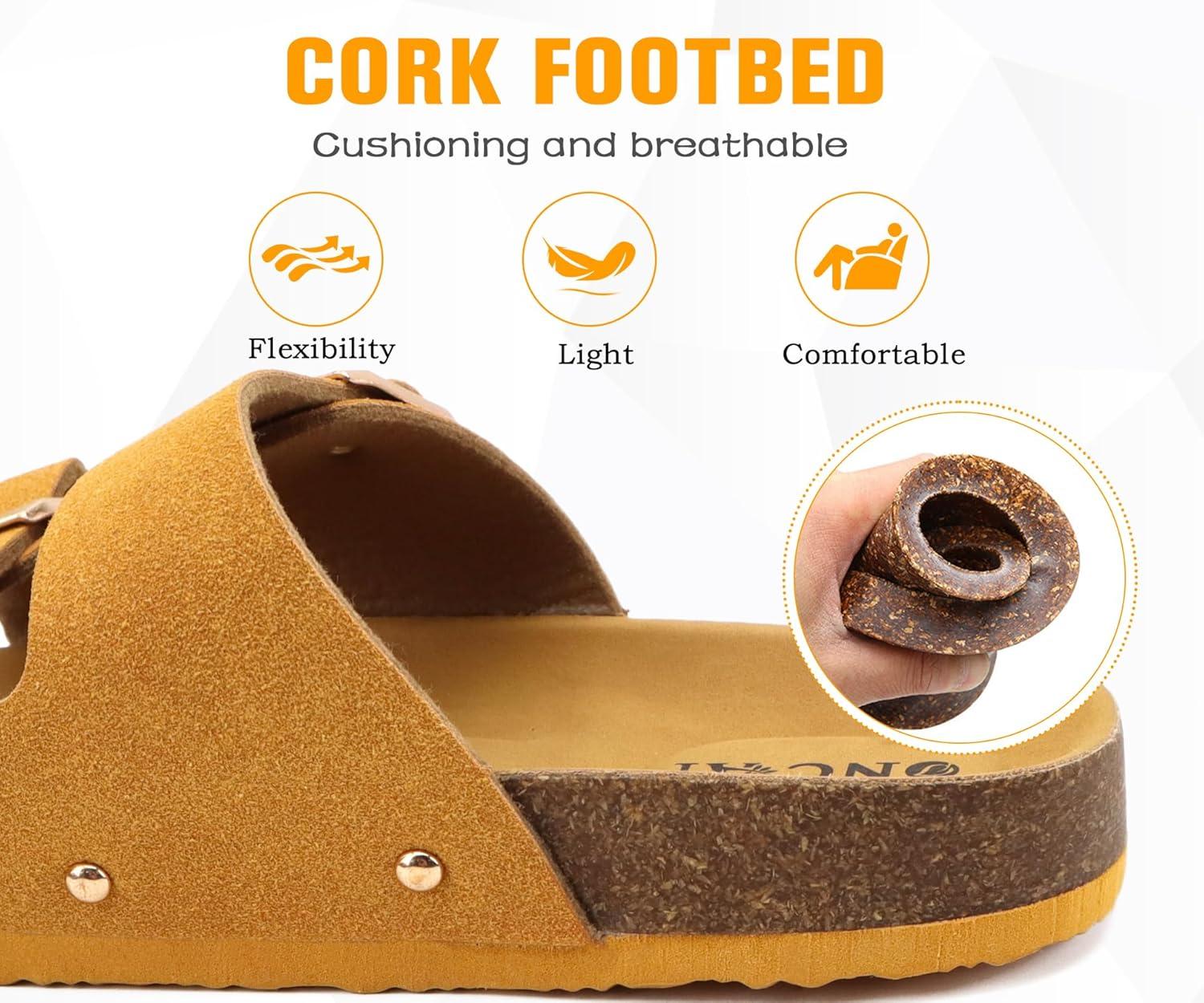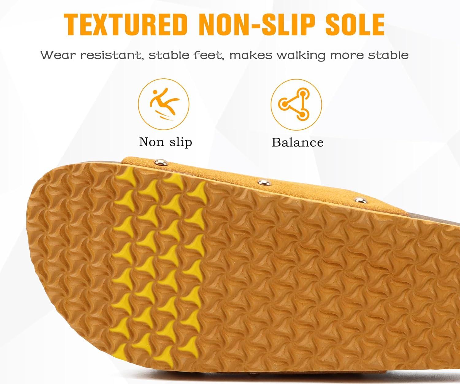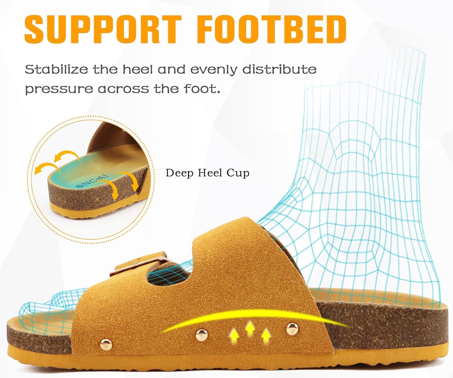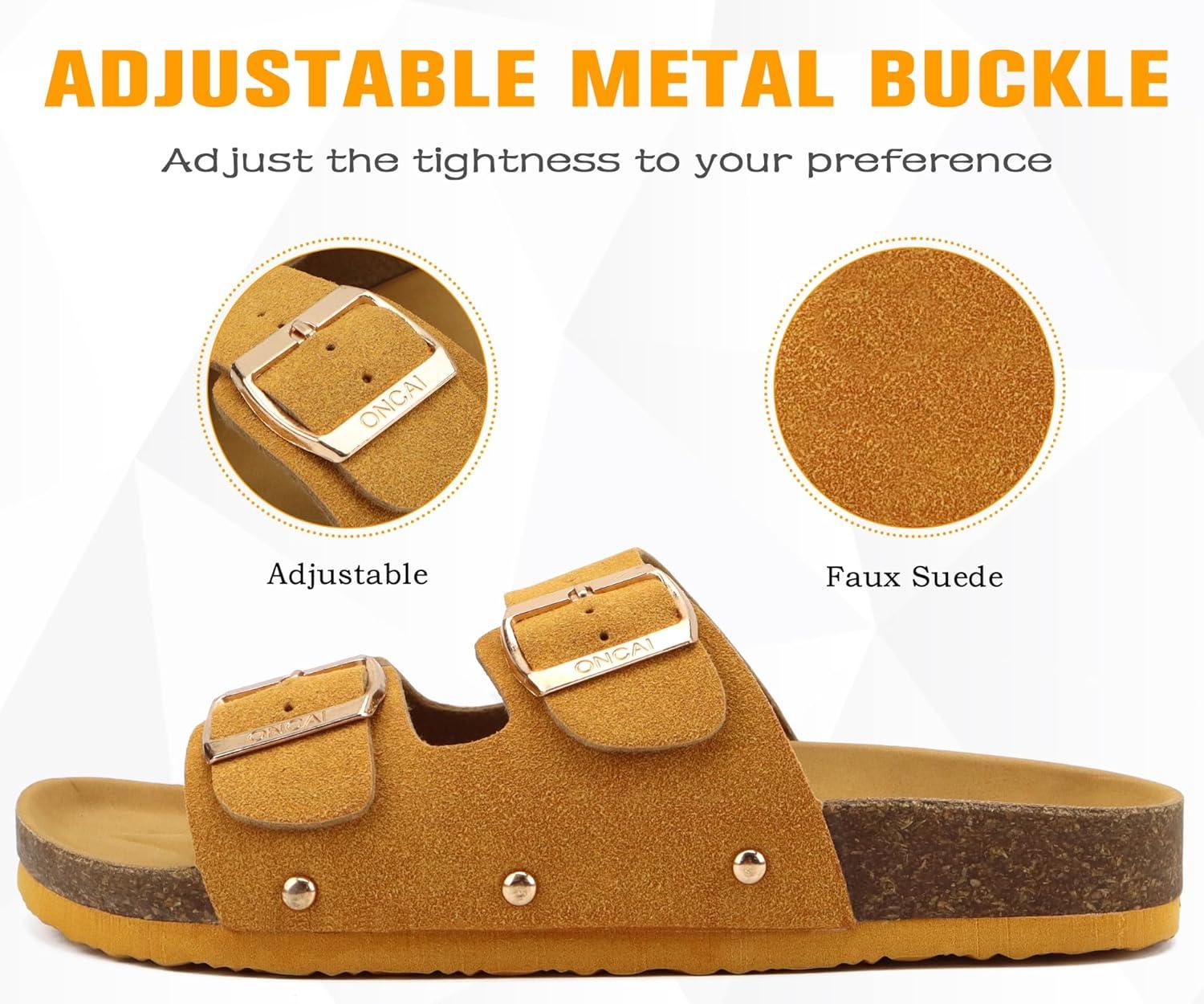 ONCAI Womens Flat Slide Sandals with Arch Support 2 Strap Adjustable Buckle Slip on Slides Shoes Non Slip Rubber Sole(Yellow)