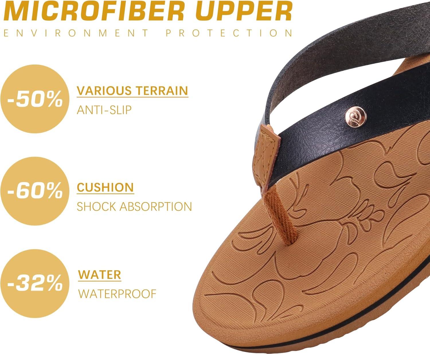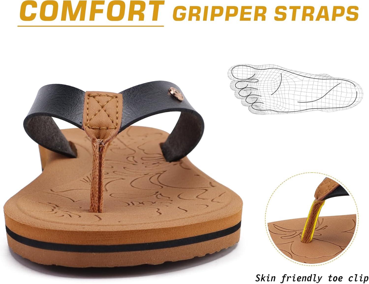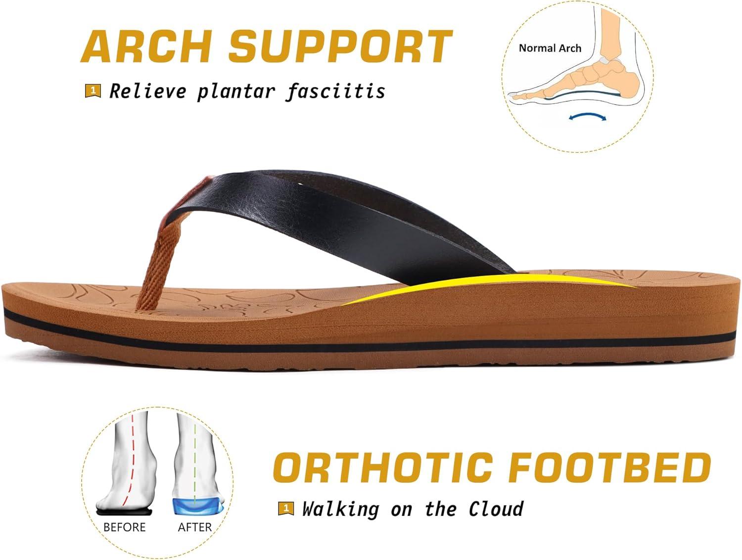 ONCAI Women’s Flip Flops Arch Support Yoga Mat Summer Beach Woman Thong Sandals with Orthotic Rubber Soles(US Size 5-11)(Black/Khaki)