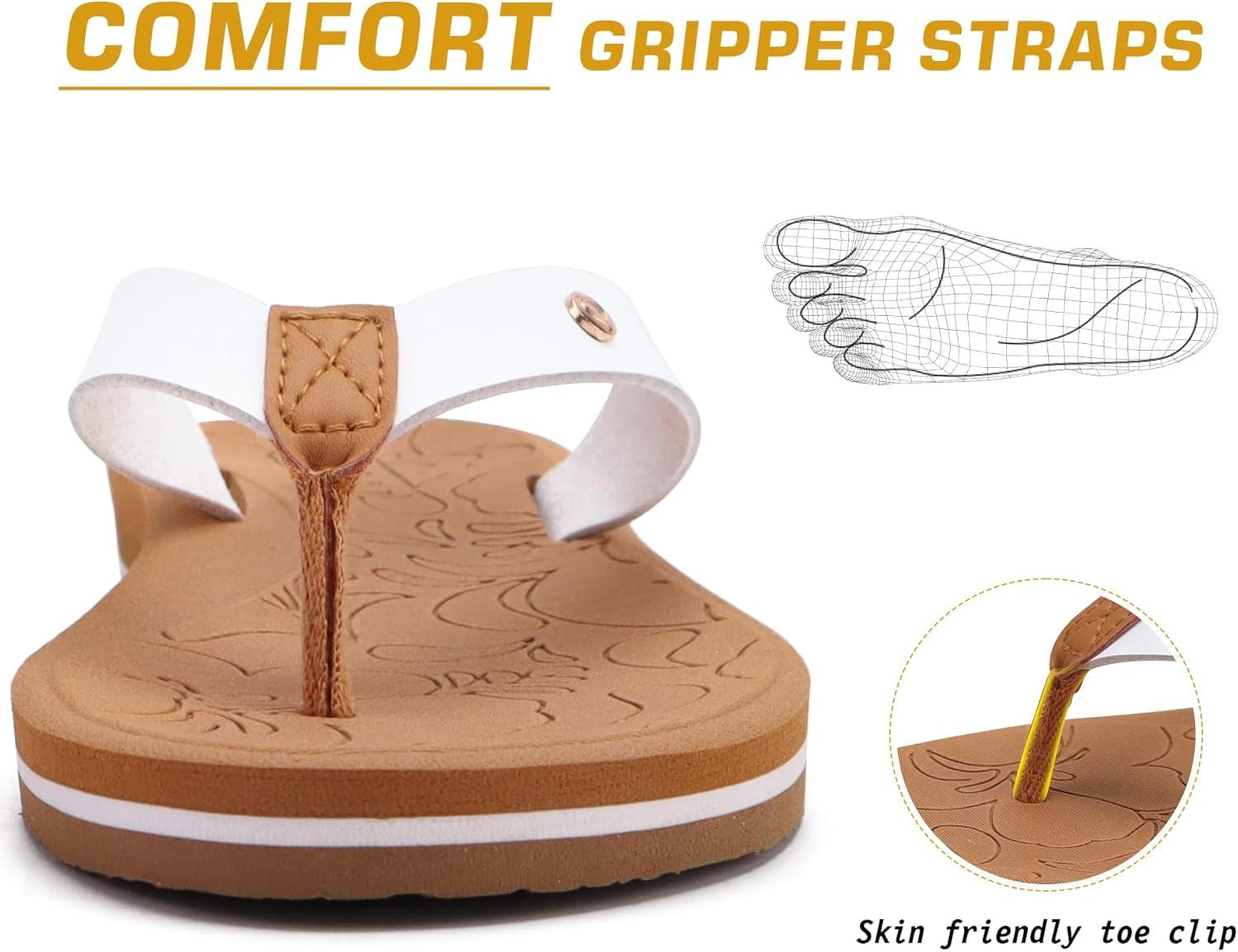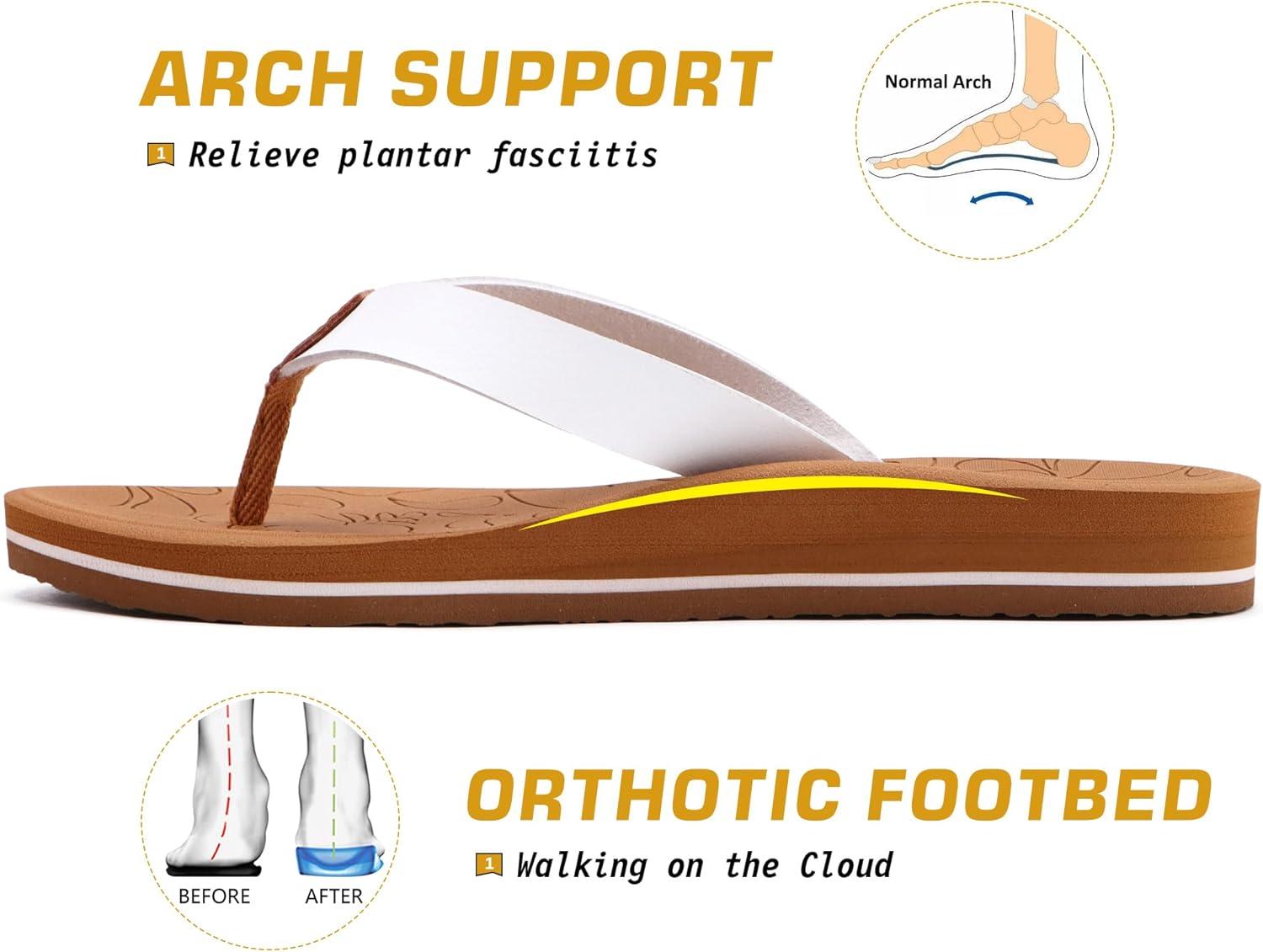 ONCAI Women’s Flip Flops Arch Support Yoga Mat Summer Beach Woman Thong Sandals with Orthotic Rubber Soles(US Size 5-11)(White/Khaki)