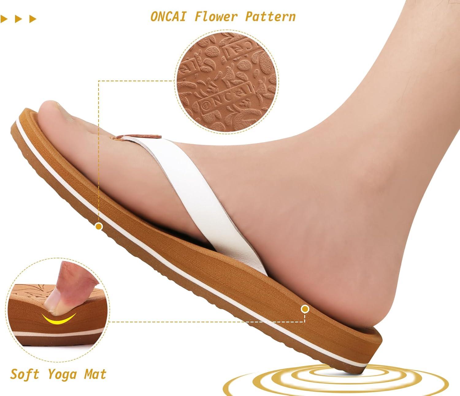 Save up to 40% on ONCAI Women’s Flip Flops Arch Support Yoga Mat Summer Beach Woman Thong Sandals with Orthotic Rubber Soles(US Size 5-11)(White/Khaki) styles during our end-of-season sale.