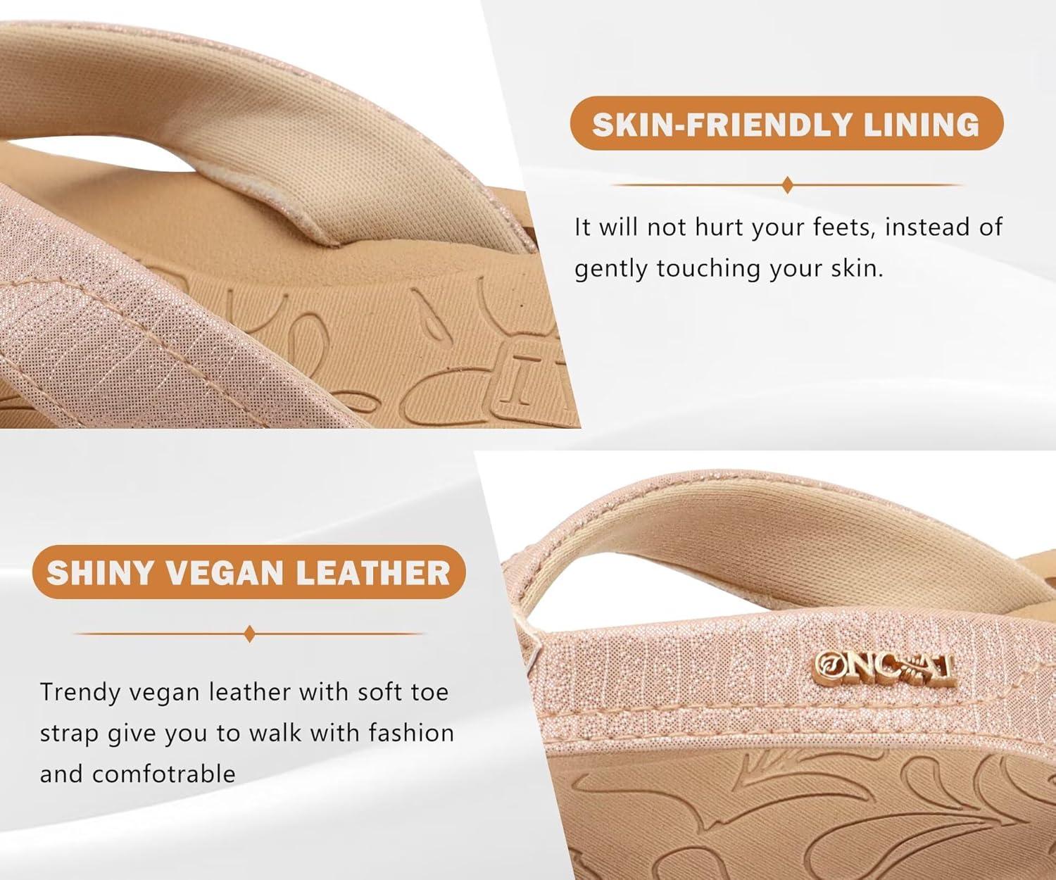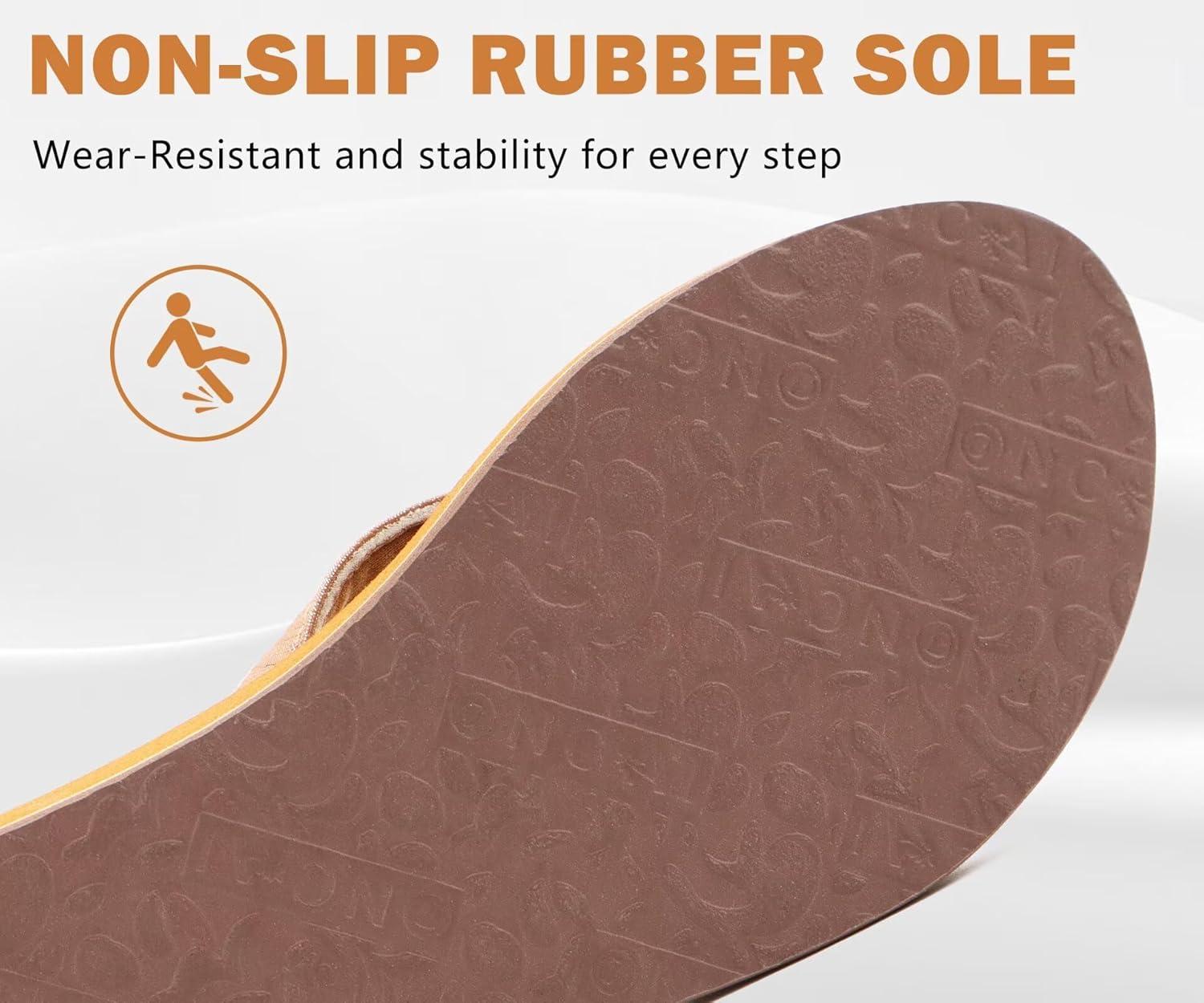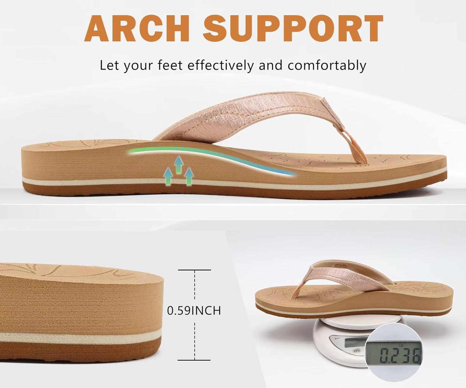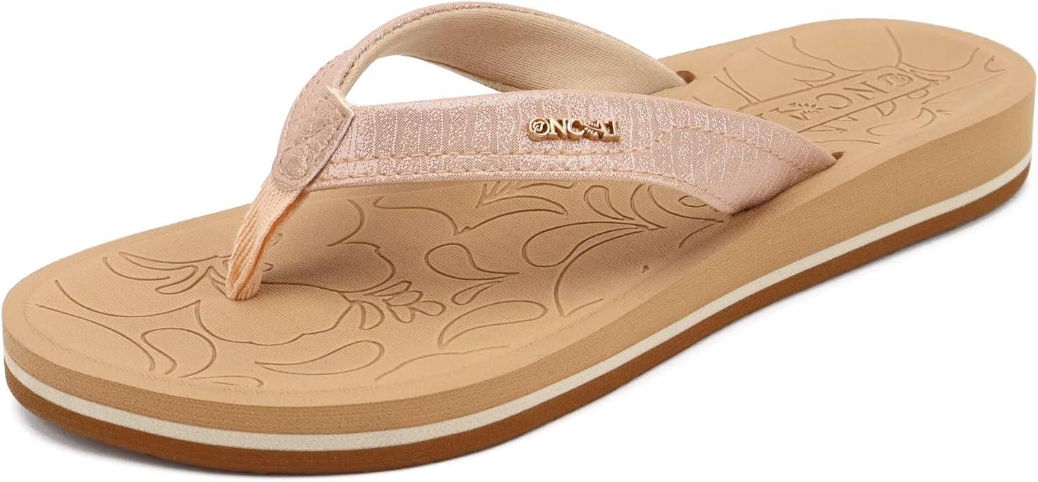 ONCAI Women’s Flip Flops Comfortable Summer Beach Thong Sandals for Women with Cushion Walking Arch Support Yoga Mat Indoor Outdoor Soles(Beige)