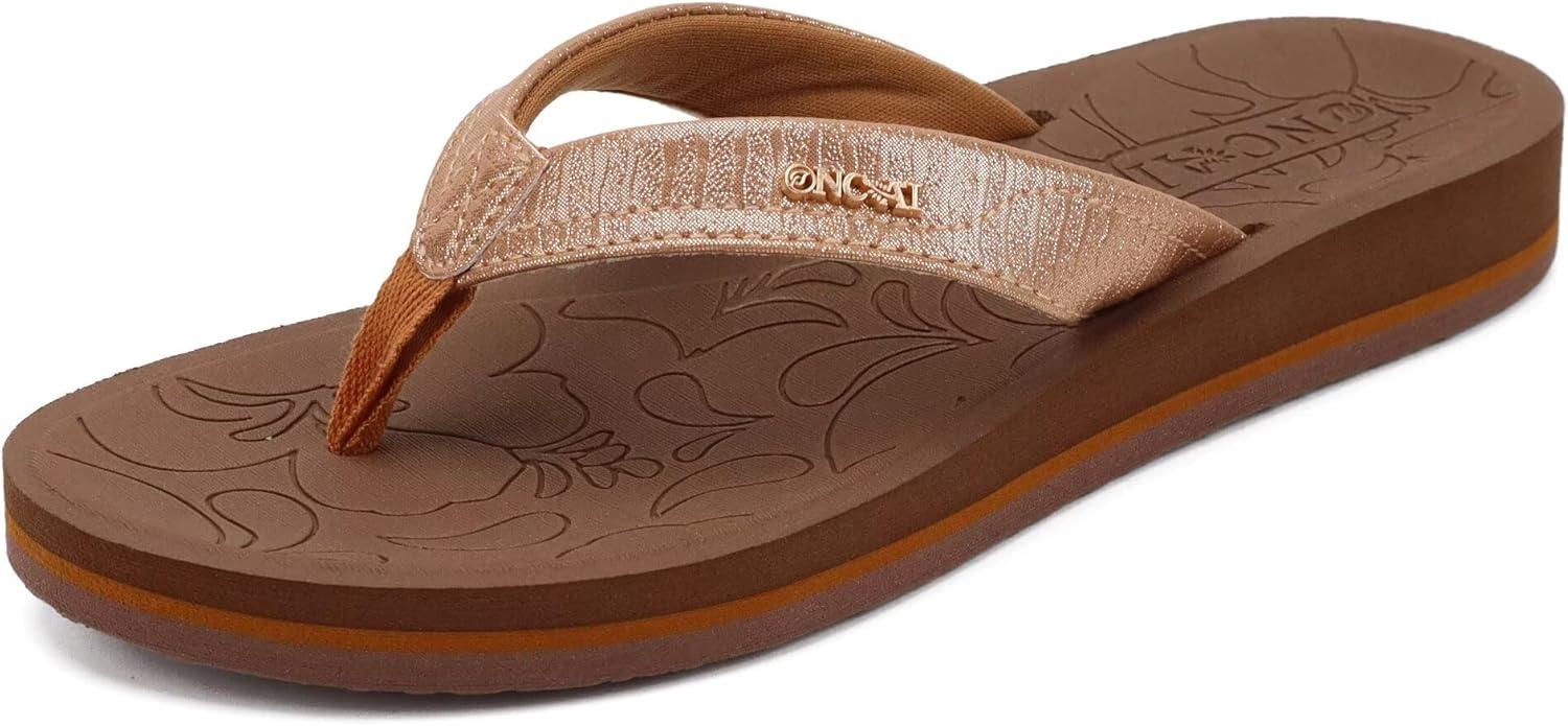 ONCAI Women’s Flip Flops Comfortable Summer Beach Thong Sandals for Women with Cushion Walking Arch Support Yoga Mat Indoor Outdoor Soles(Gold/Brown)