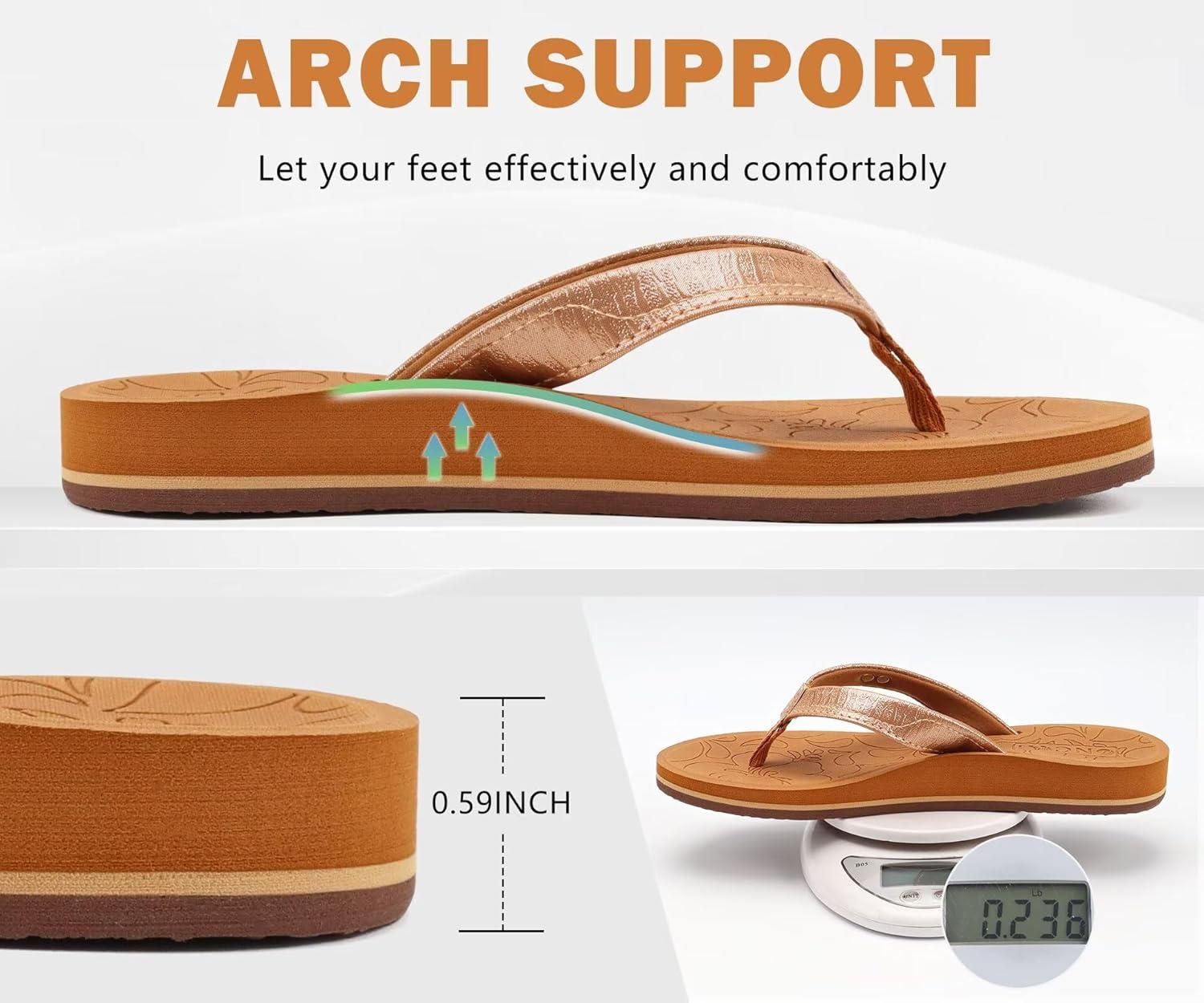 Save big on ONCAI Women’s Flip Flops Comfortable Summer Beach Thong Sandals for Women with Cushion Walking Arch Support Yoga Mat Indoor Outdoor Soles(Gold/Khaki) and accessories during our BOGO sale. Buy one, get one 50% off!