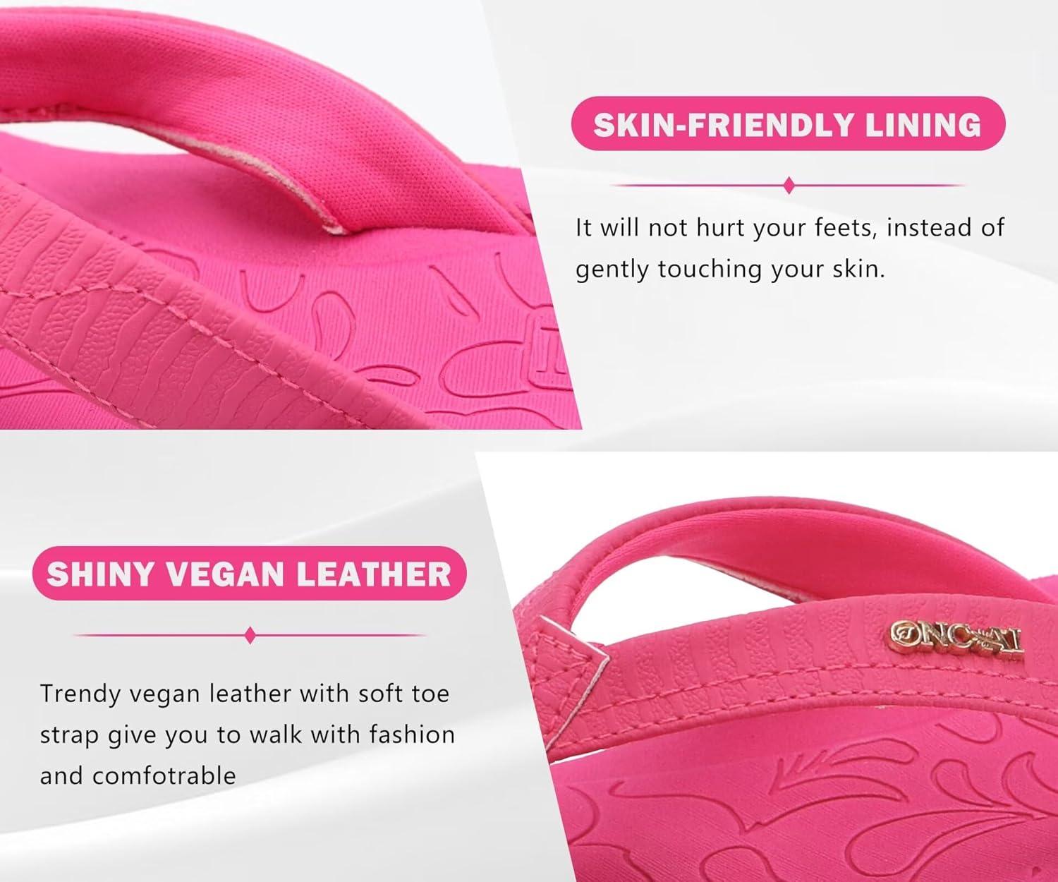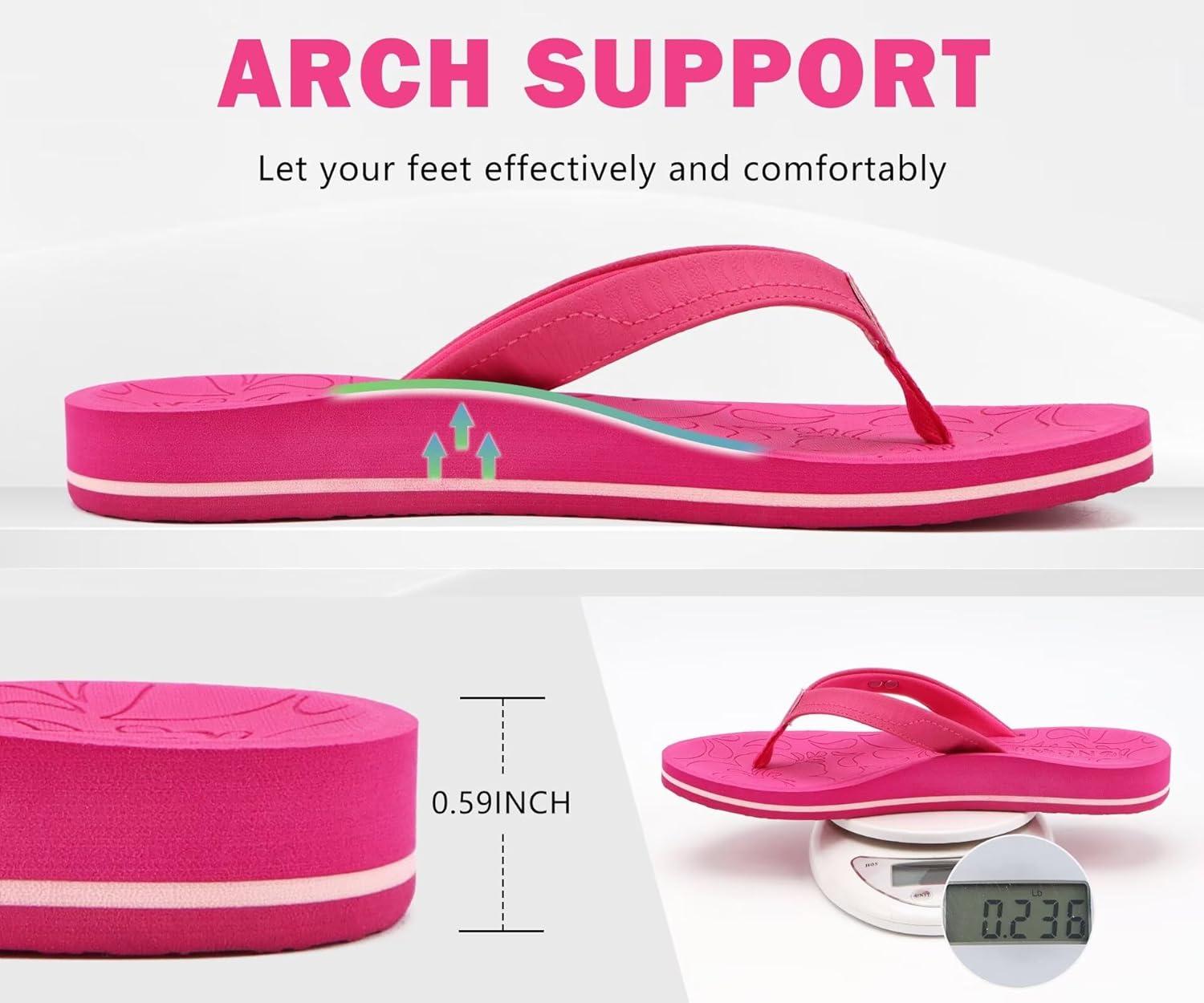 ONCAI Women’s Flip Flops Comfortable Summer Beach Thong Sandals for Women with Cushion Walking Arch Support Yoga Mat Indoor Outdoor Soles(Hot Pink)