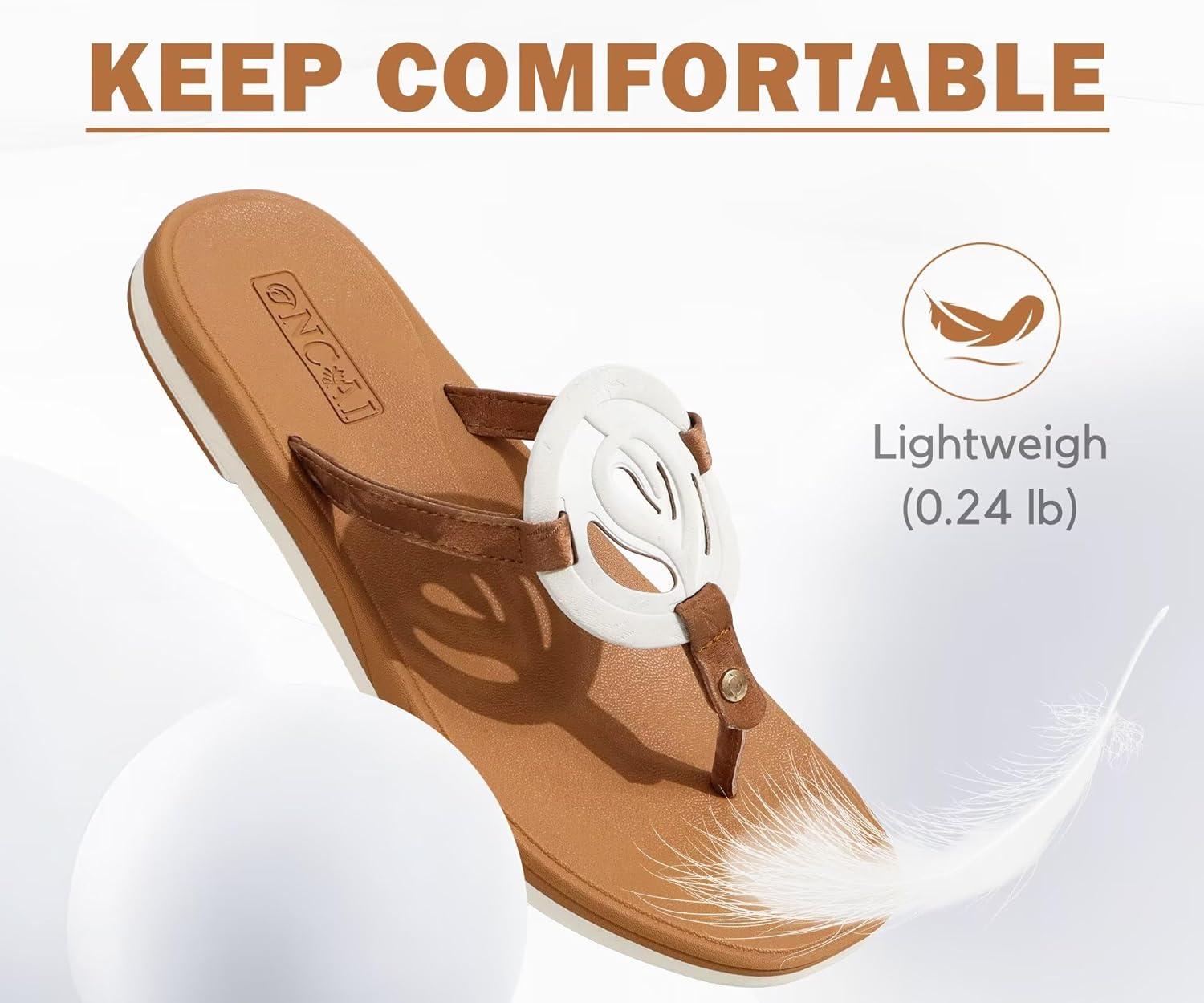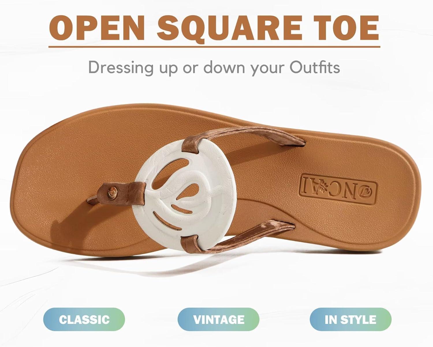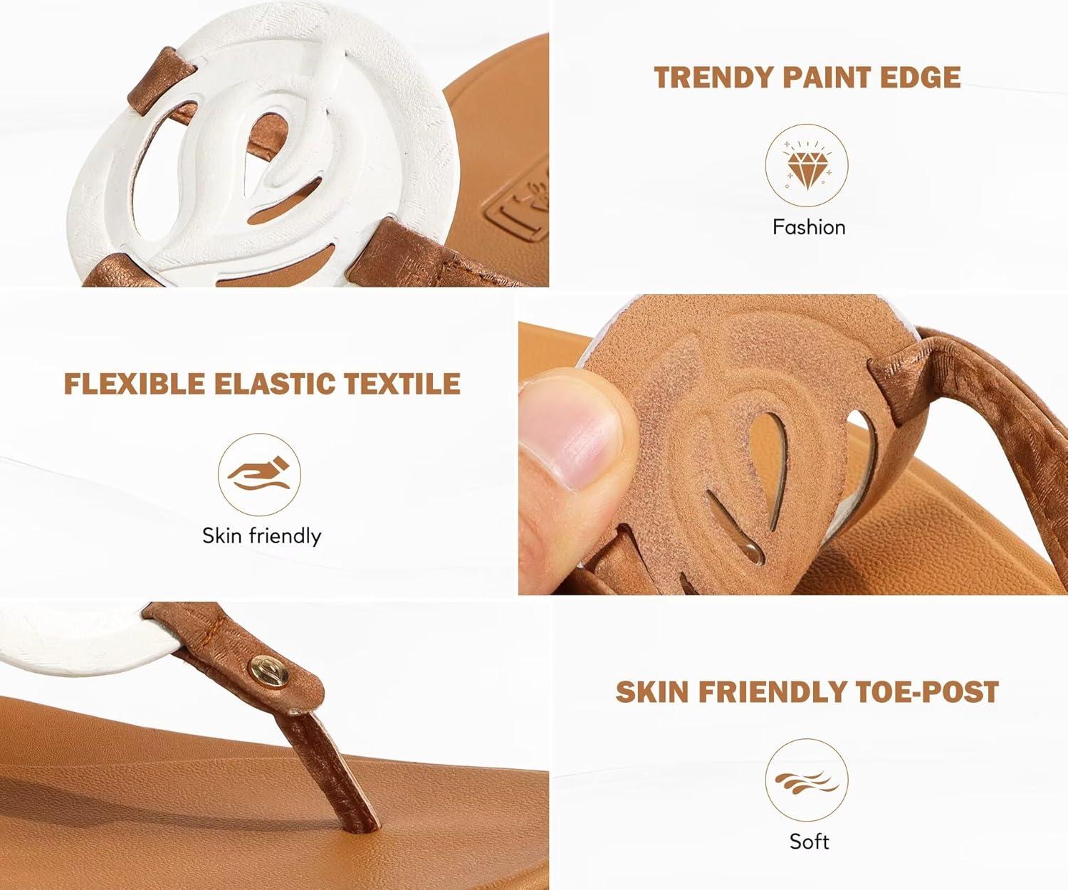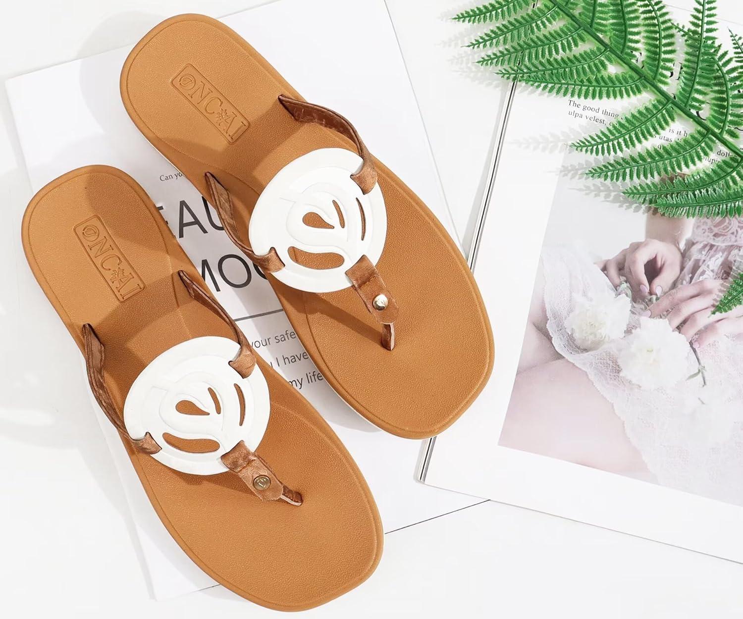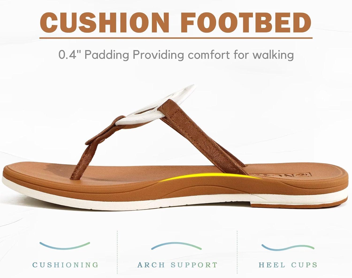 ONCAI Womens Flip Flops Fashion Flat Sandals Summer Vacations Casual Cute Slip On Dressys Sandals for Woman Size 6-11(White/Khaki)