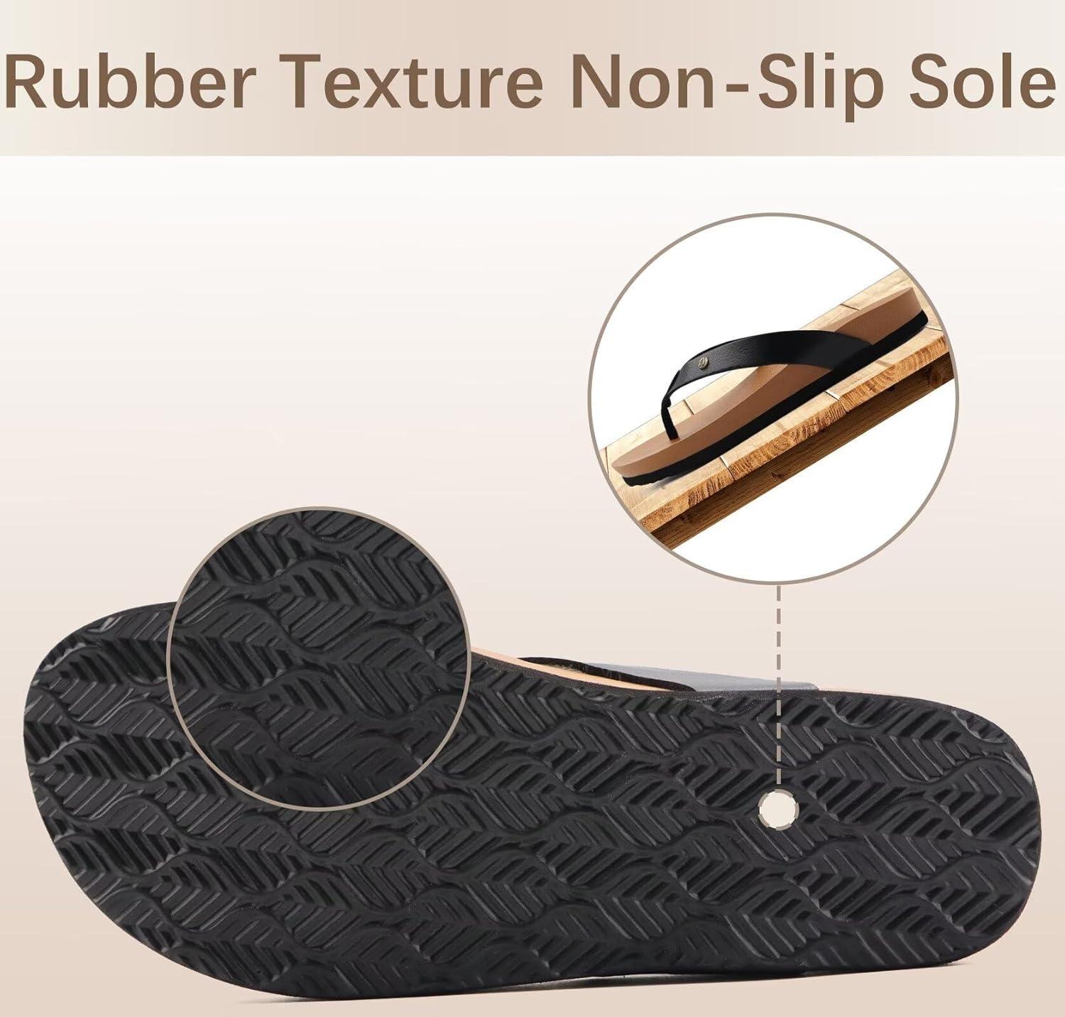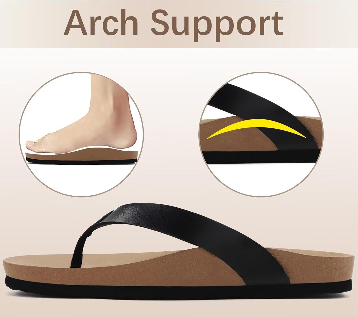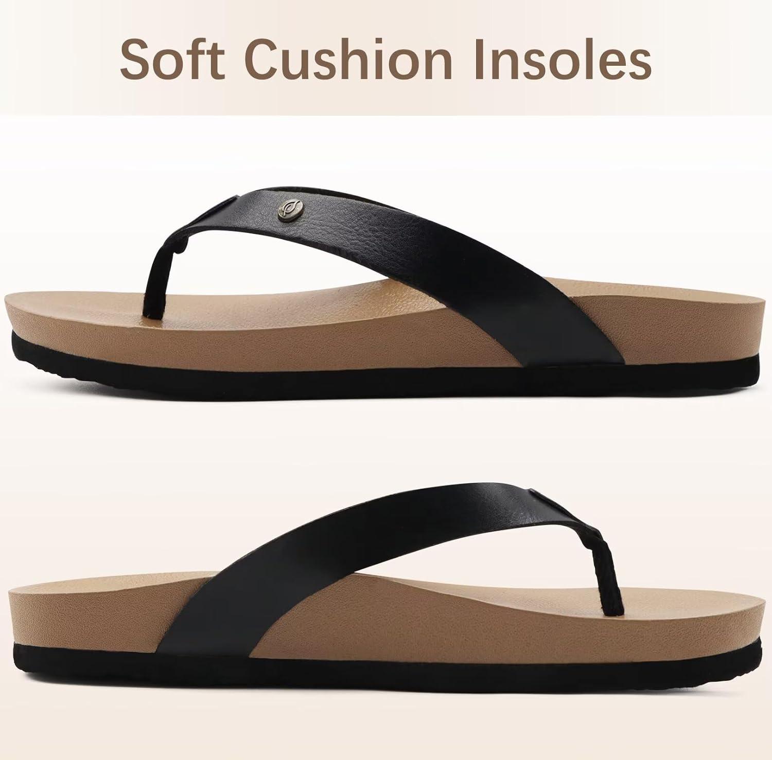 ONCAI Womens Flip Flops For Women Comfortable Strap Yoga Mat Non-Slip Women’s Thong Sandal Casual Summer Beach Slippers With Arch Support(Khaki/Black)