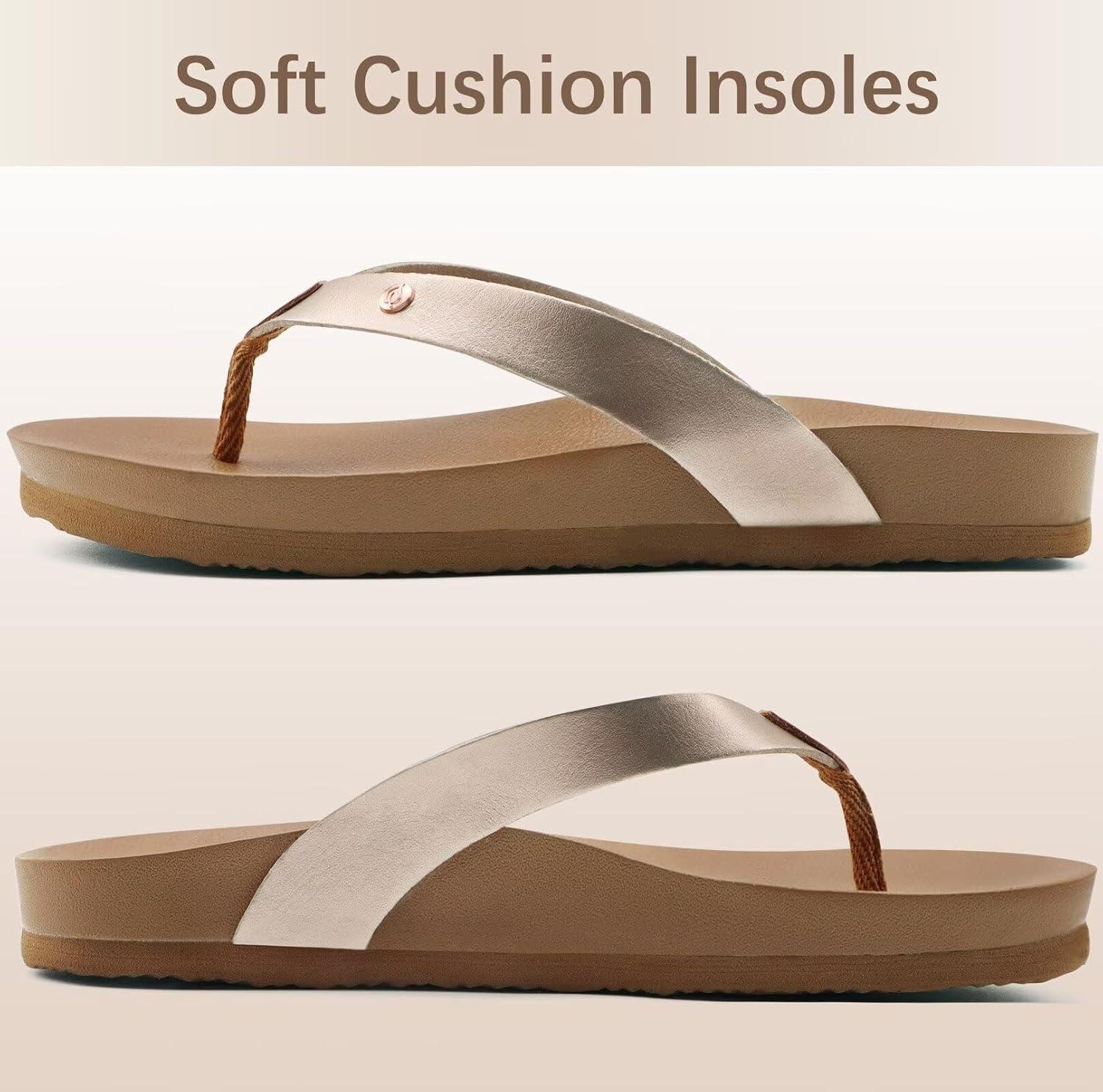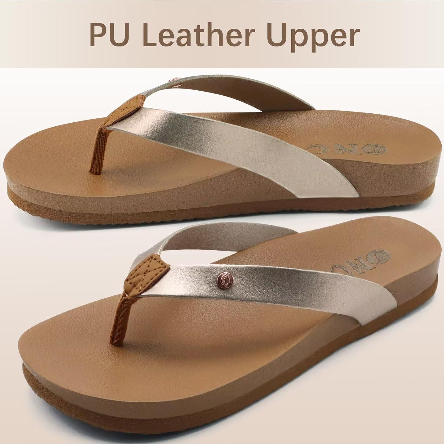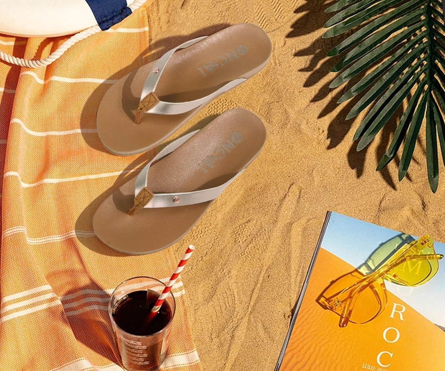 ONCAI Womens Flip Flops For Women Comfortable Strap Yoga Mat Non-Slip Women’s Thong Sandal Casual Summer Beach Slippers With Arch Support(Rose Gold)