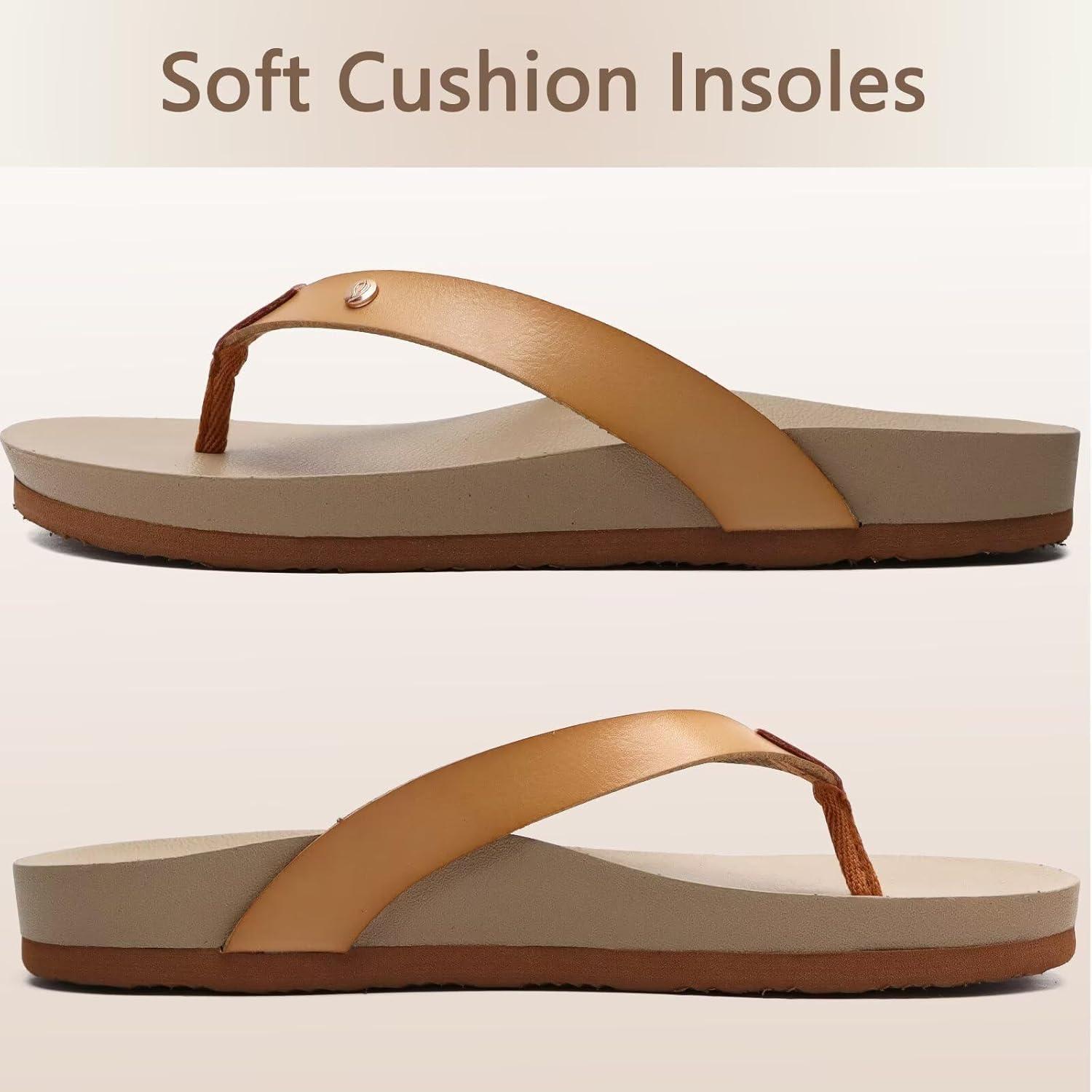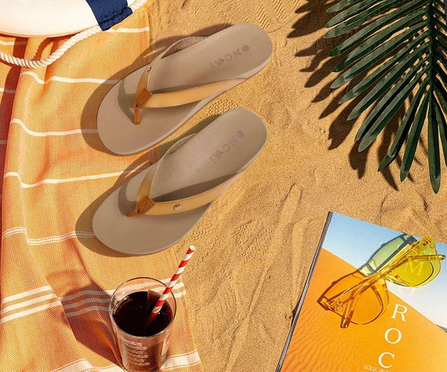 ONCAI Womens Flip Flops For Women Comfortable Strap Yoga Mat Non-Slip Women’s Thong Sandal Casual Summer Beach Slippers With Arch Support(Taupe)