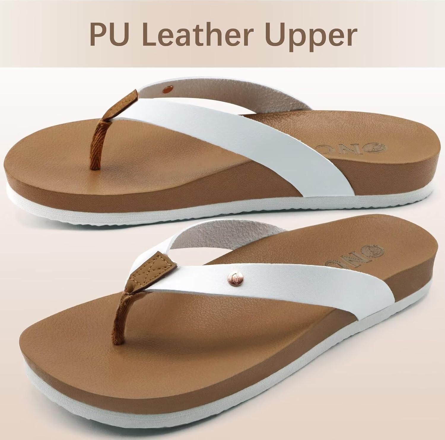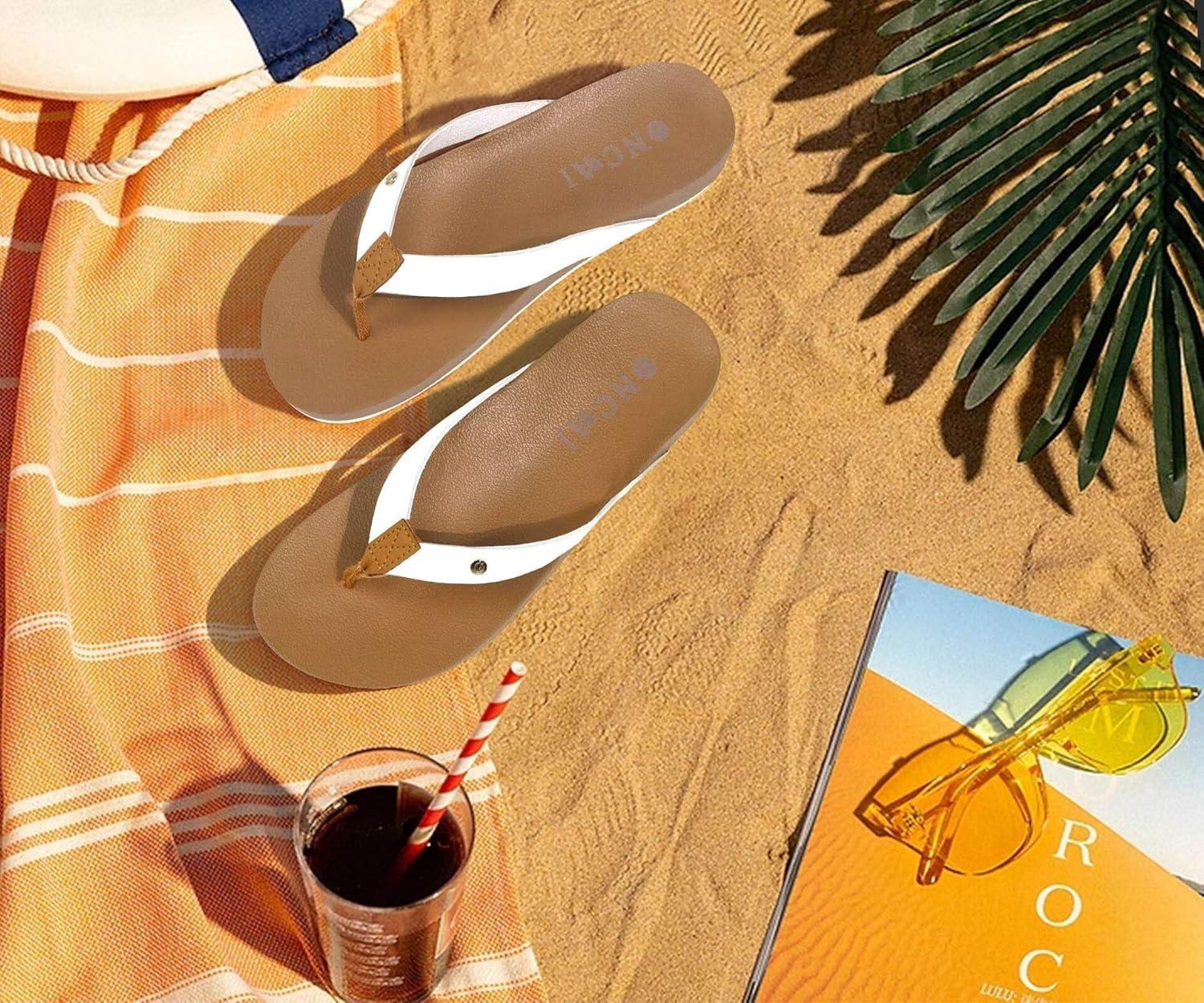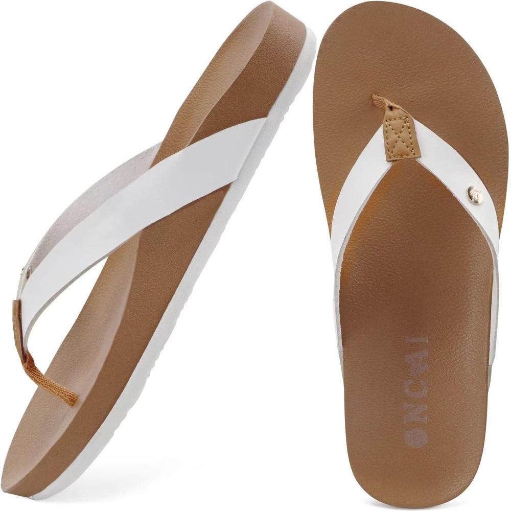 ONCAI Womens Flip Flops For Women Comfortable Strap Yoga Mat Non-Slip Women’s Thong Sandal Casual Summer Beach Slippers With Arch Support(White/Khaki)