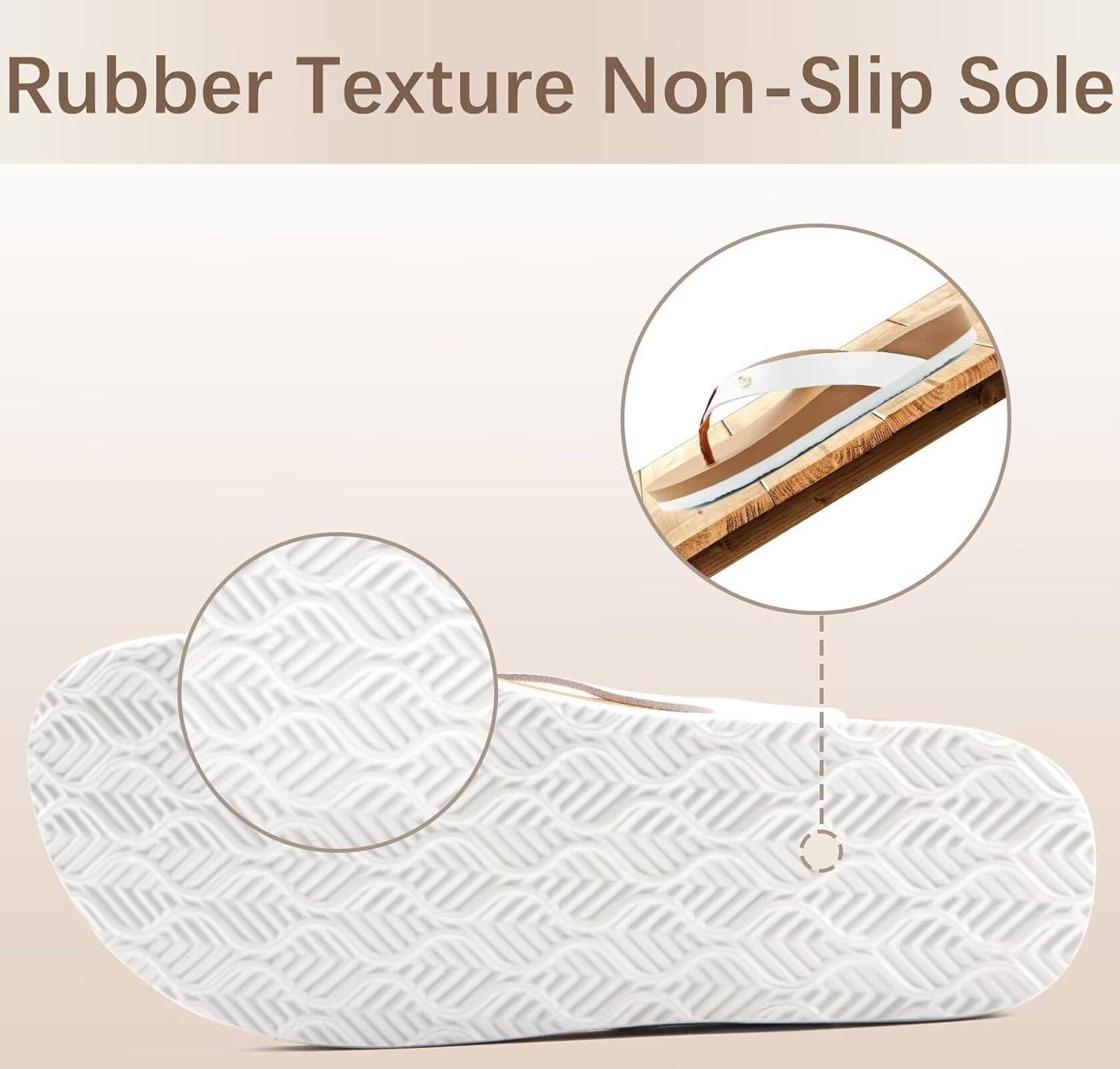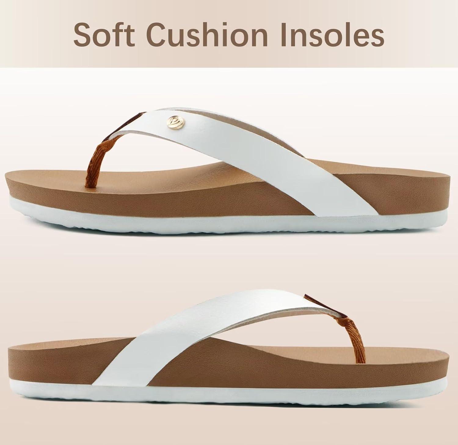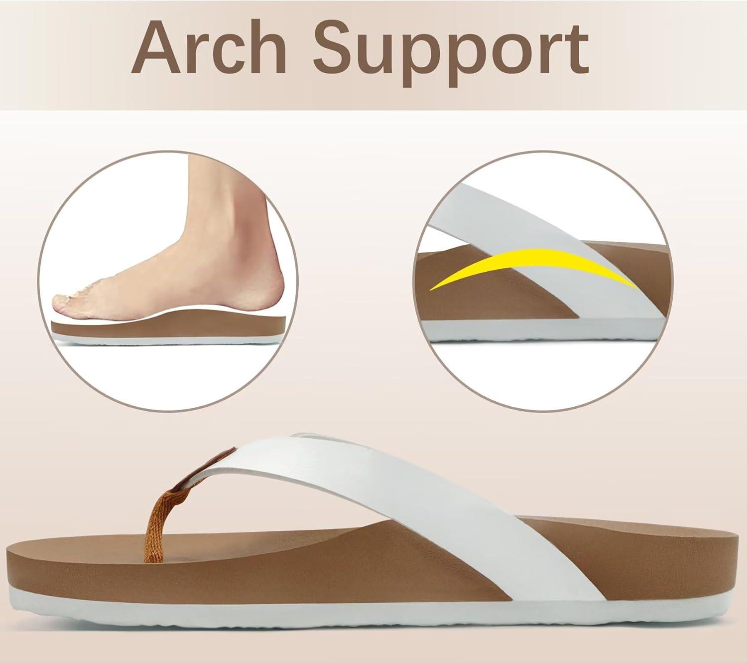 ONCAI Womens Flip Flops For Women Comfortable Strap Yoga Mat Non-Slip Women’s Thong Sandal Casual Summer Beach Slippers With Arch Support(White/Khaki)