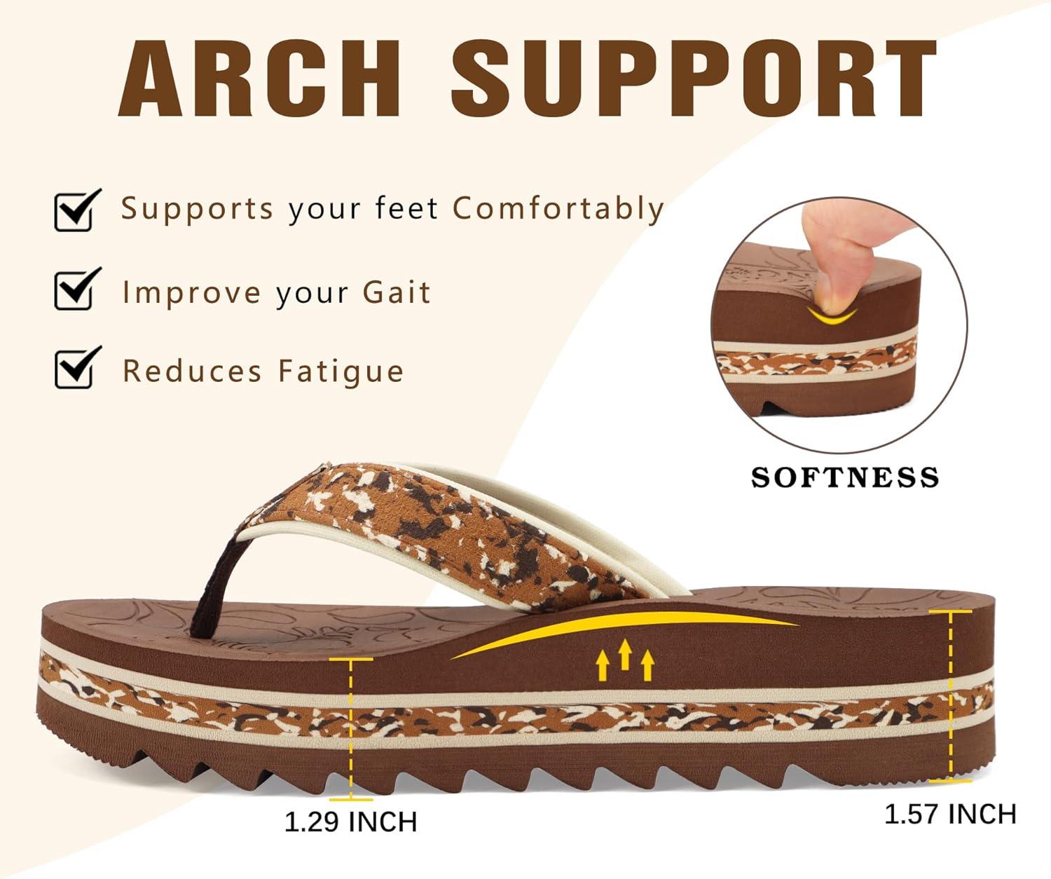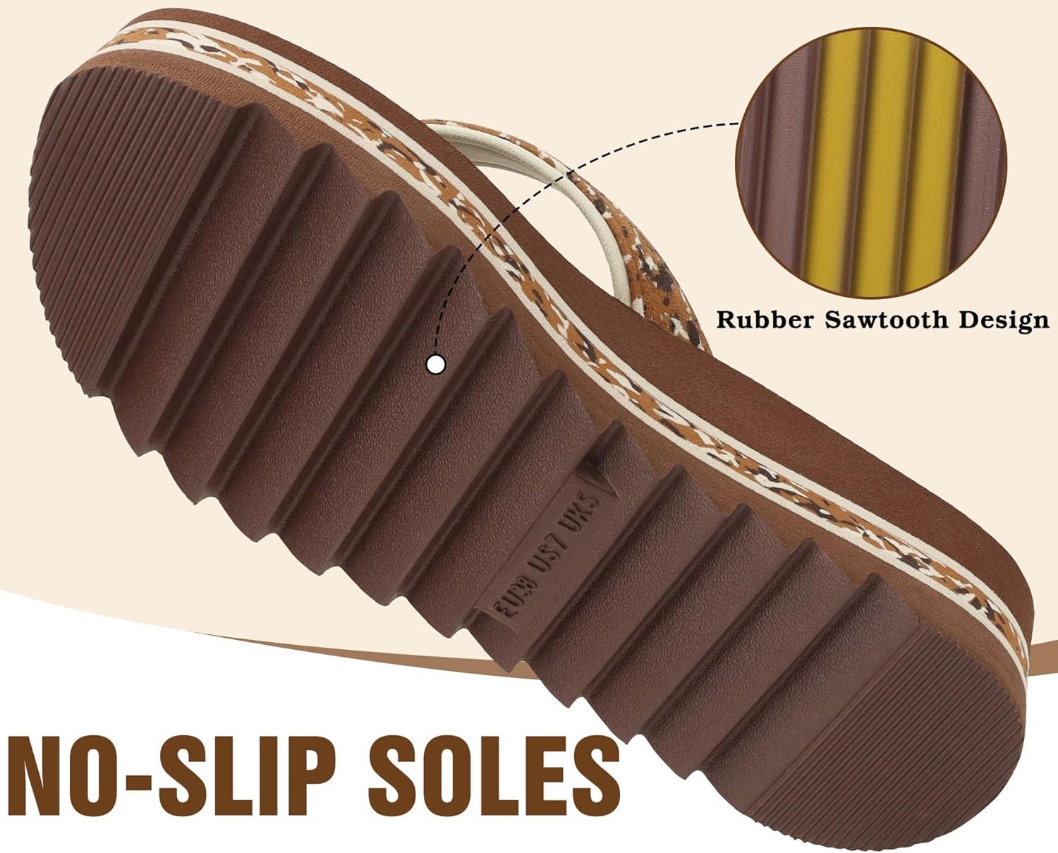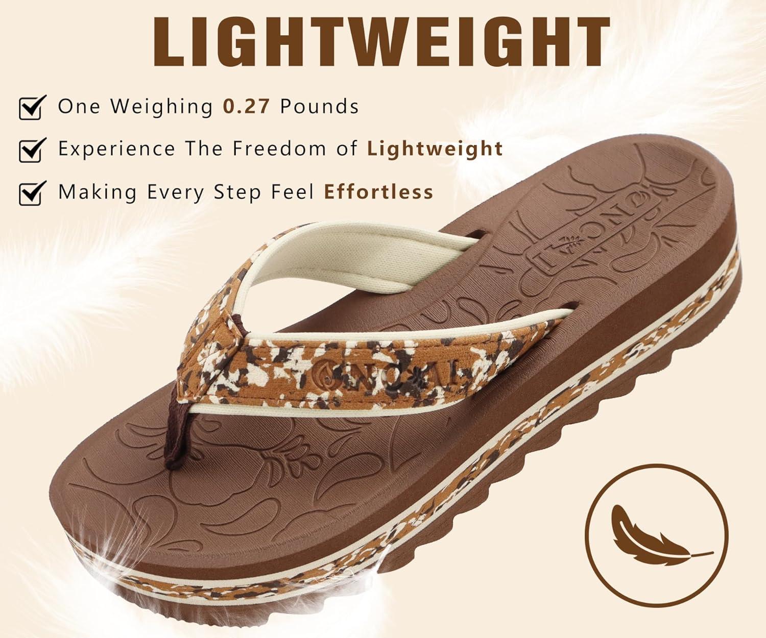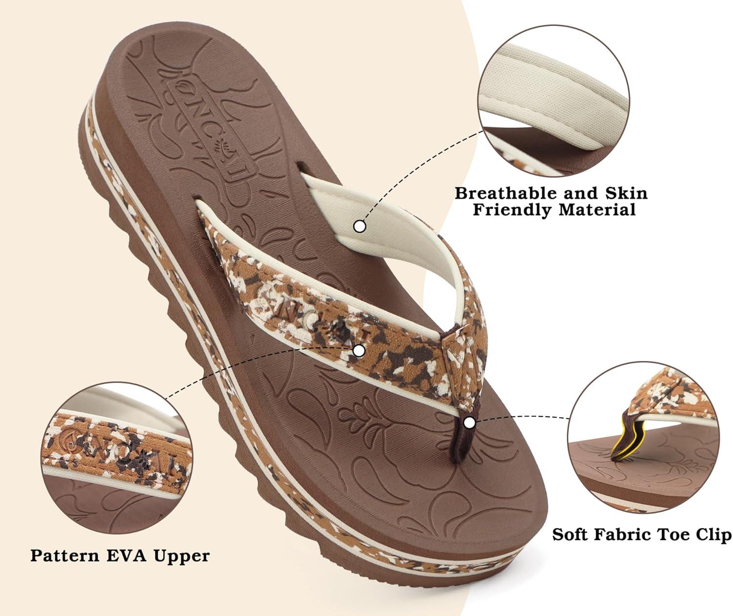 ONCAI Women’s Flip Flops,Fashion Platform Wedge Sandals for Woman Trendy Casual Ladies Sandalias Mujer Summer Beach Outdoor Chunky Comfort Yoga Mat Rubber Soles US Size 5-11(Brown)