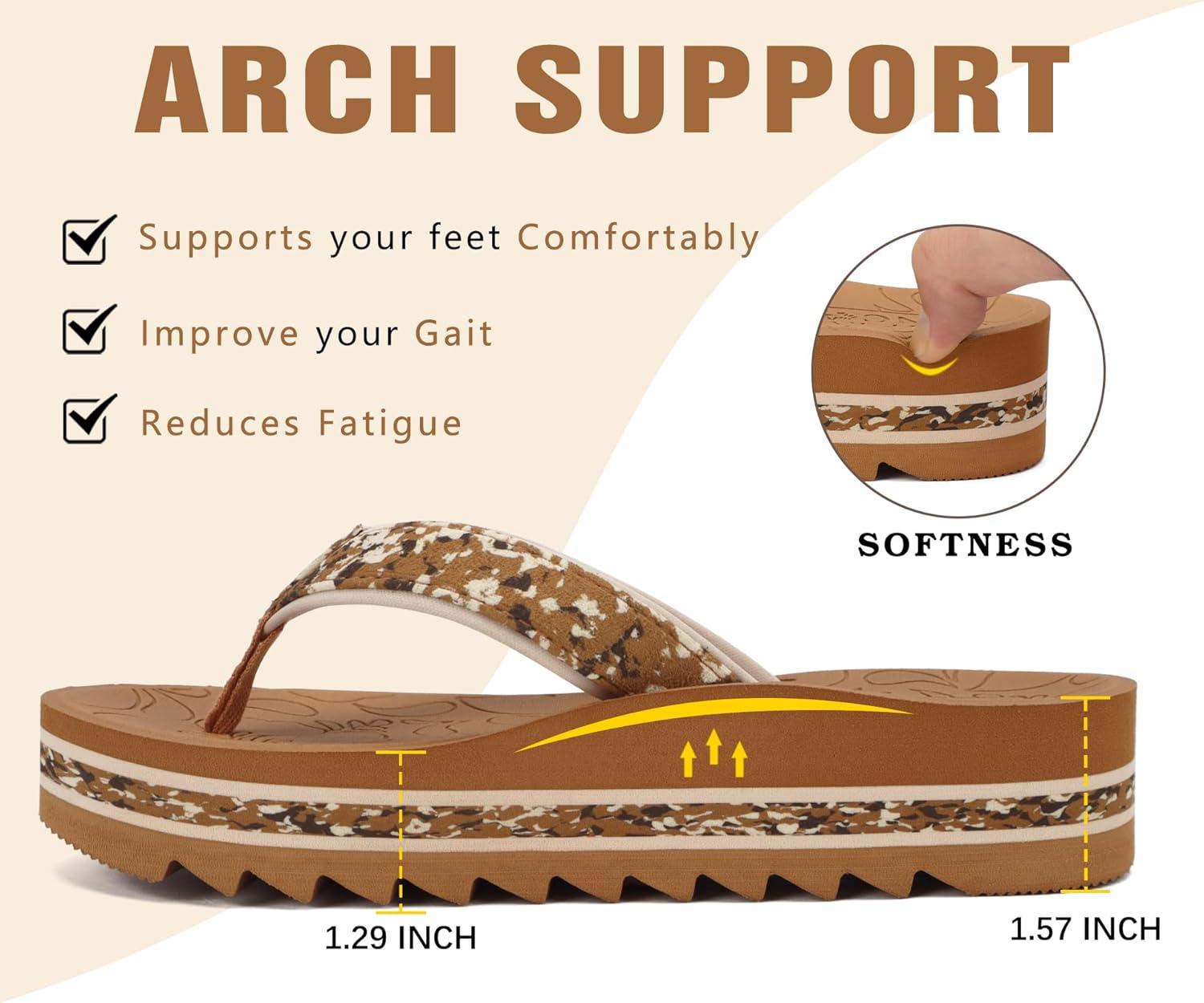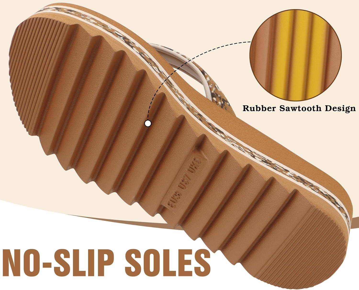 ONCAI Women’s Flip Flops,Fashion Platform Wedge Sandals for Woman Trendy Casual Ladies Sandalias Mujer Summer Beach Outdoor Chunky Comfort Yoga Mat Rubber Soles US Size 5-11(Khaki)