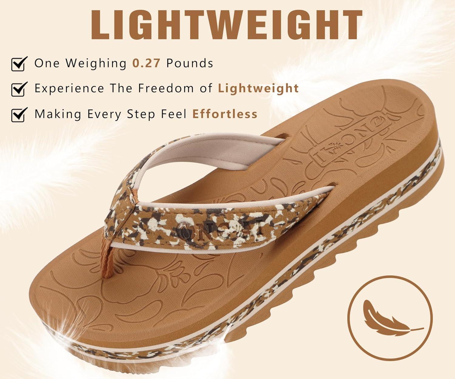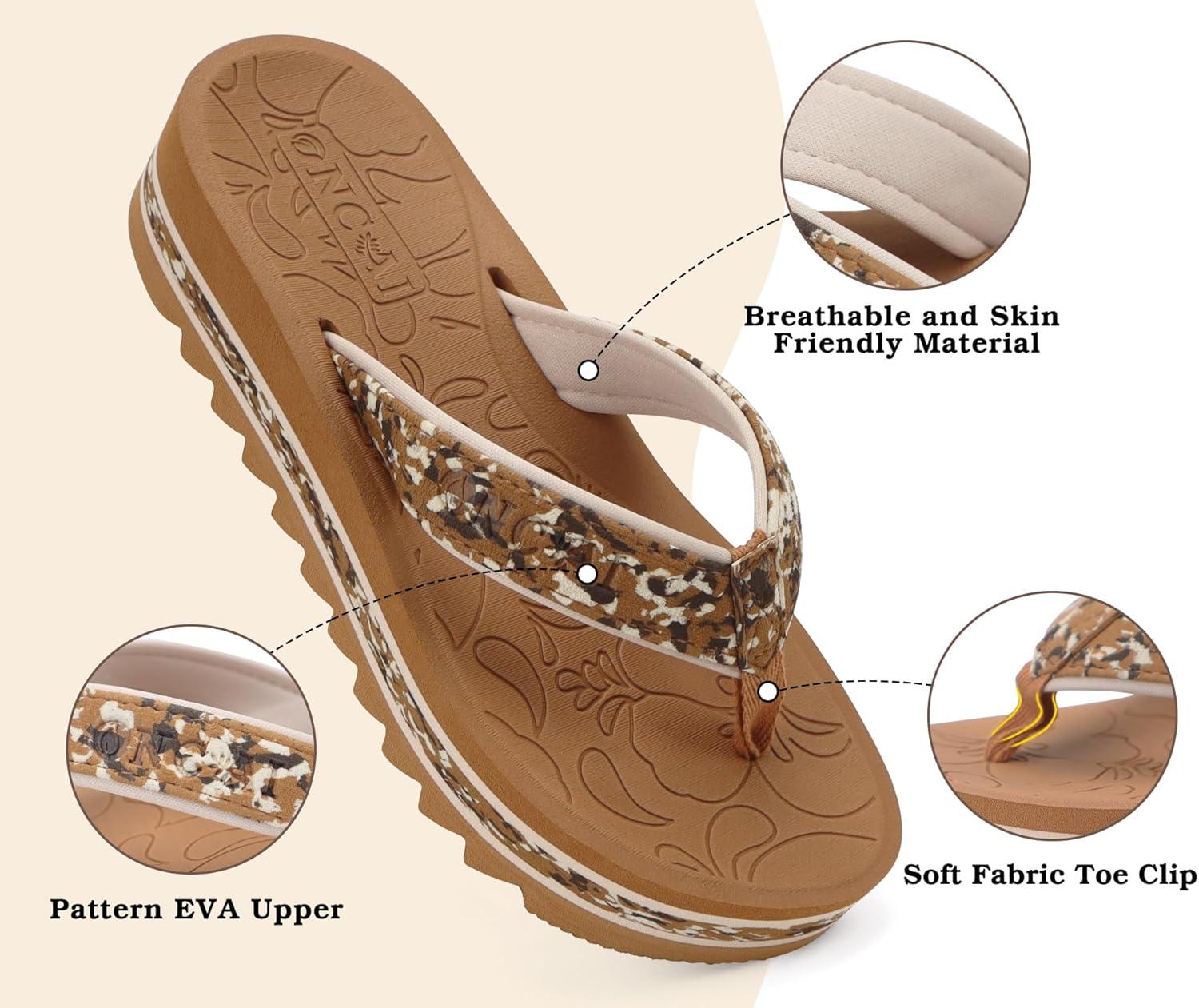 ONCAI Women’s Flip Flops,Fashion Platform Wedge Sandals for Woman Trendy Casual Ladies Sandalias Mujer Summer Beach Outdoor Chunky Comfort Yoga Mat Rubber Soles US Size 5-11(Vine-khaki)