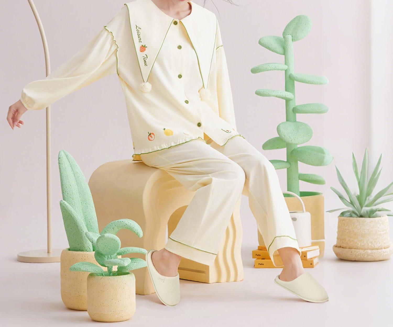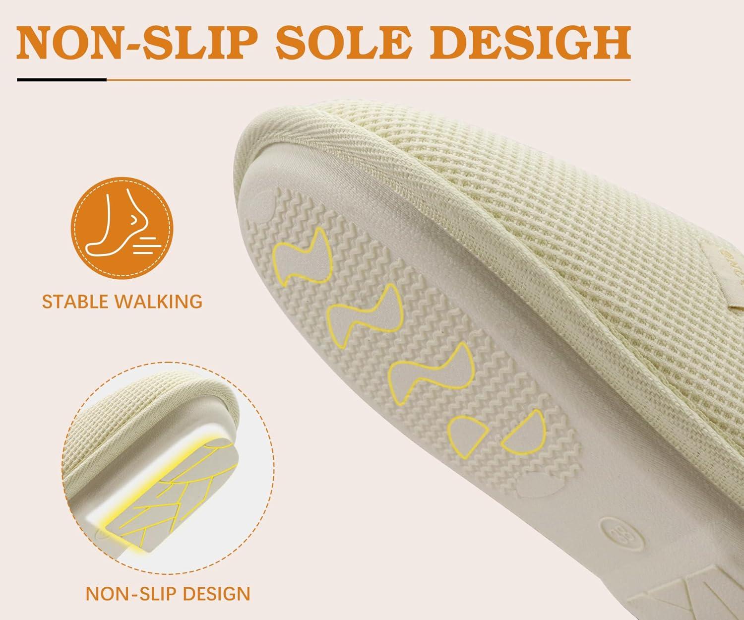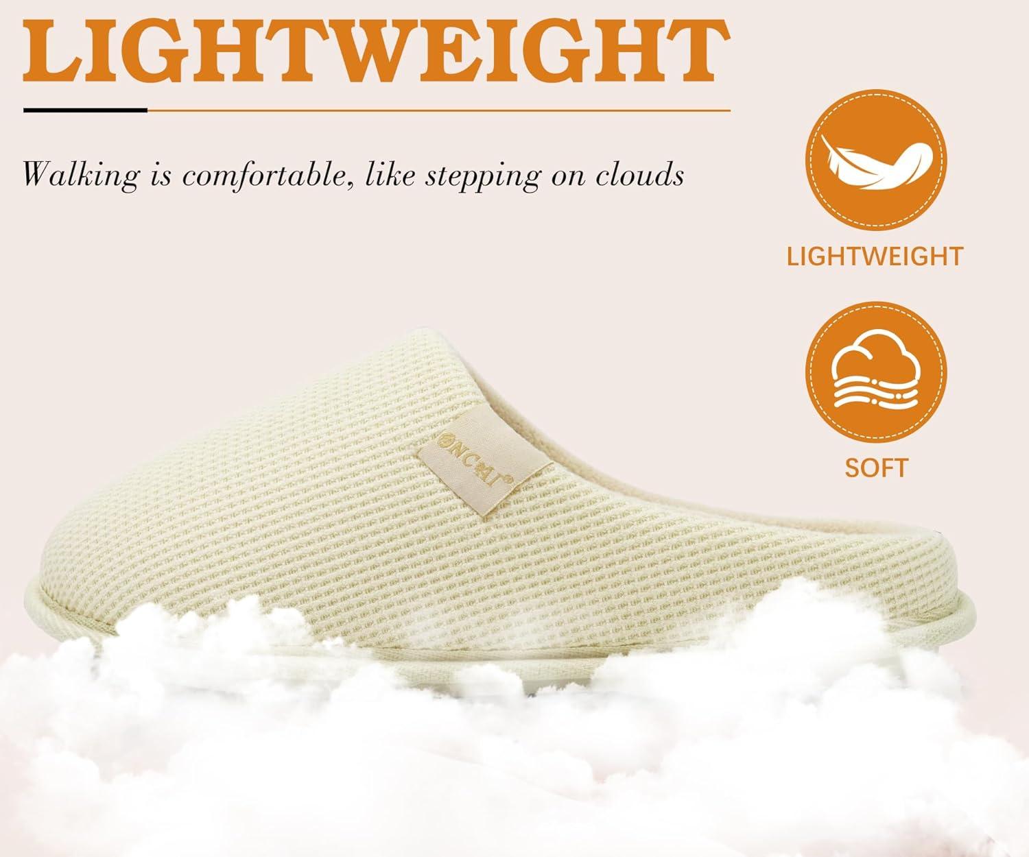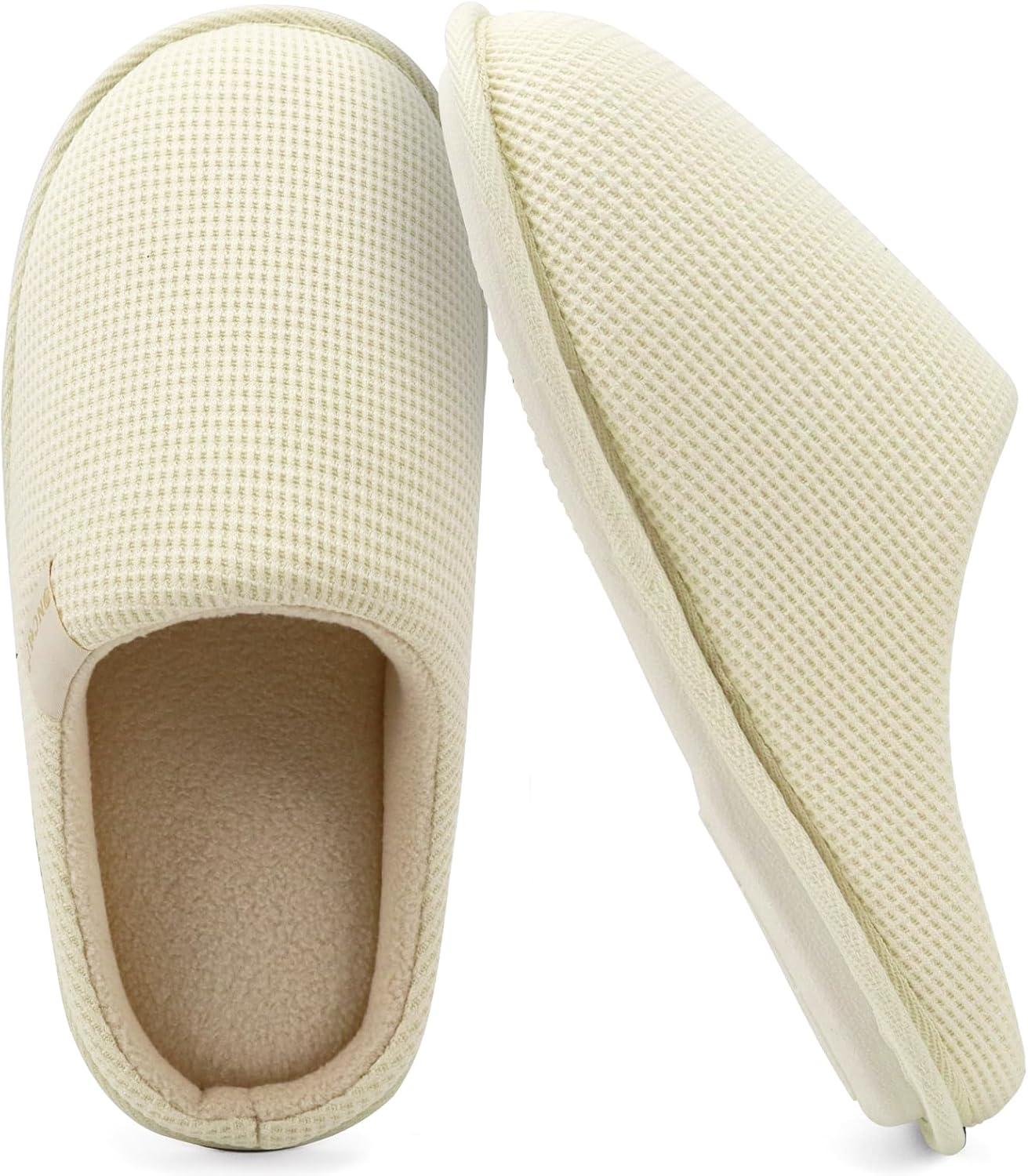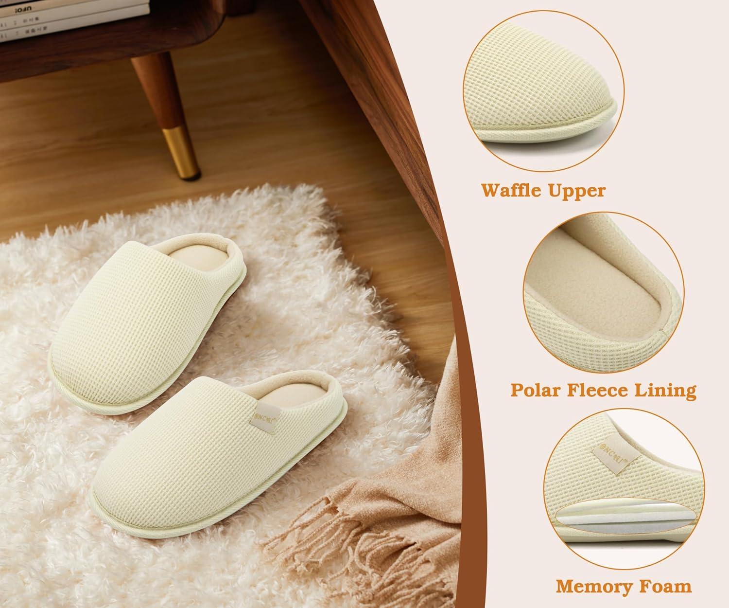 ONCAI Women’s House Slippers, Cushion Memory Foam Waffle Upper Home Comfortable Warm Winter Cozy Soft Lightweight Indoor Best House Shoes Non-slip Rubber Sole US Size 5-11(Off-white)