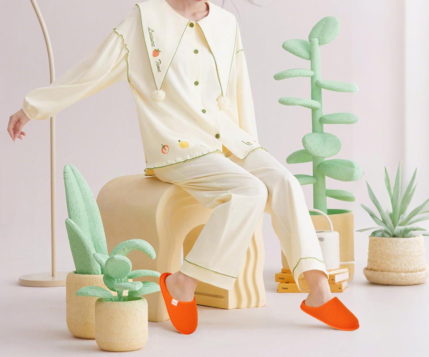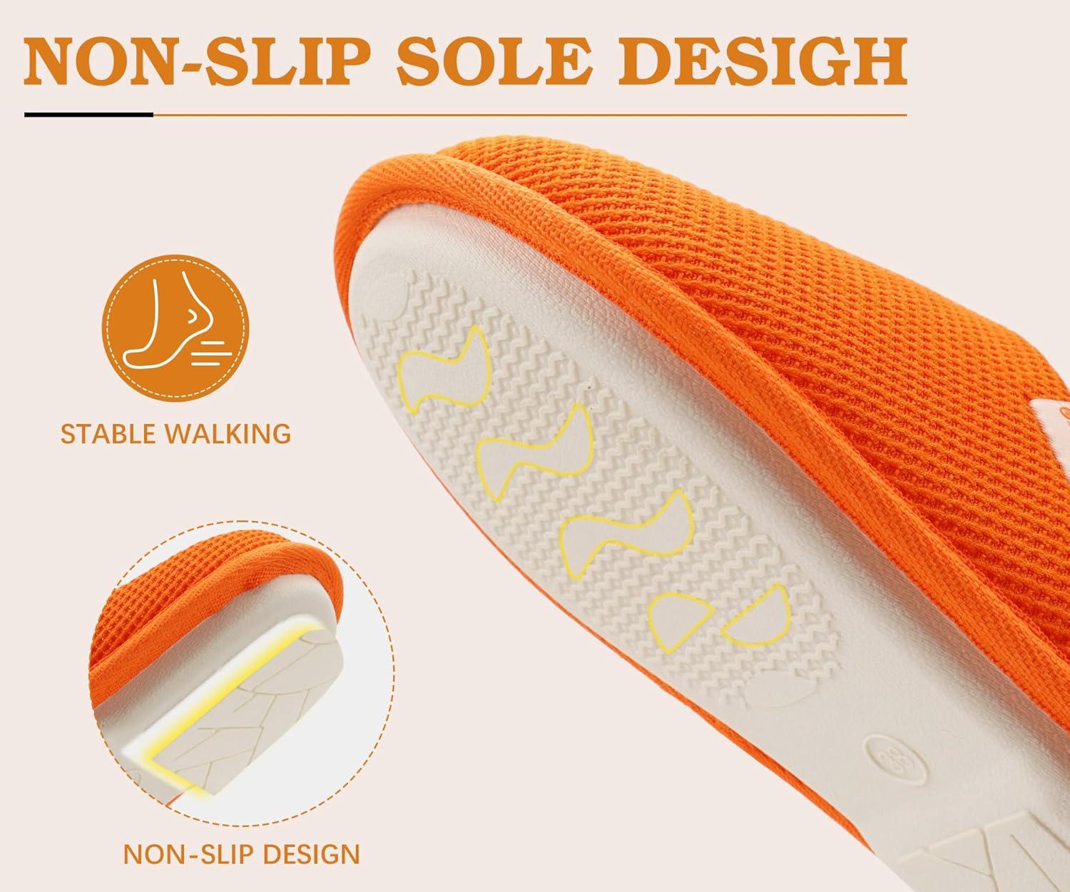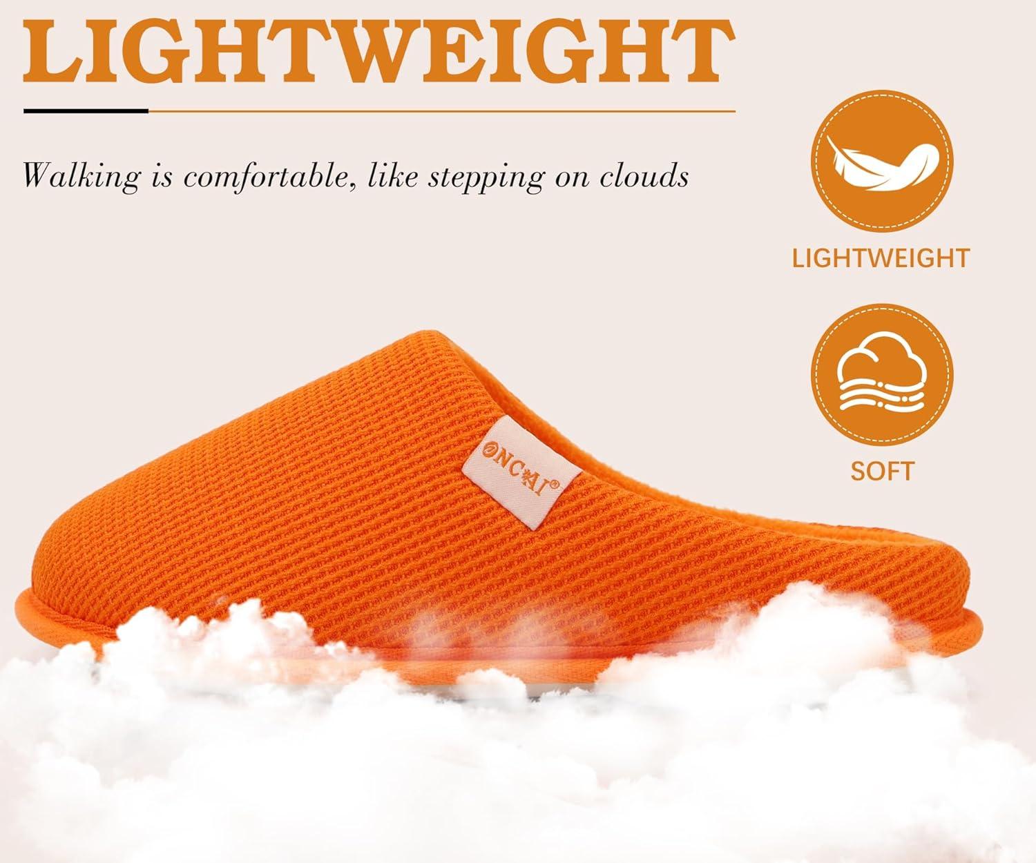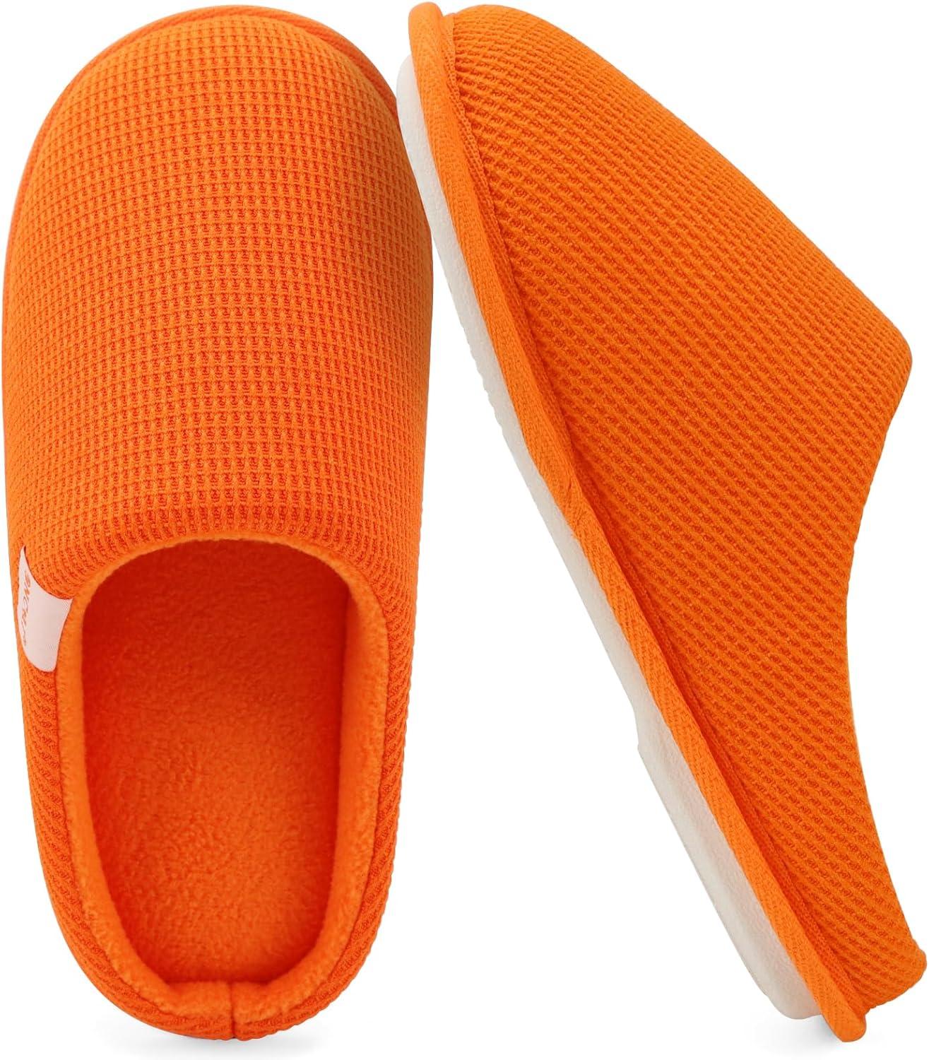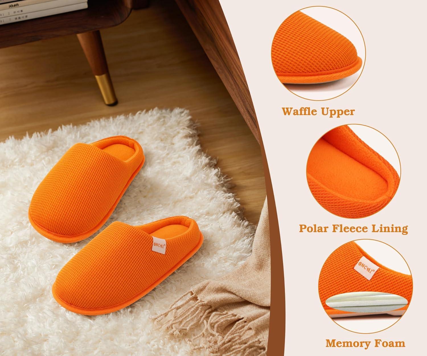 ONCAI Women’s House Slippers, Cushion Memory Foam Waffle Upper Home Comfortable Warm Winter Cozy Soft Lightweight Indoor Best House Shoes Non-slip Rubber Sole US Size 5-11(Orange)