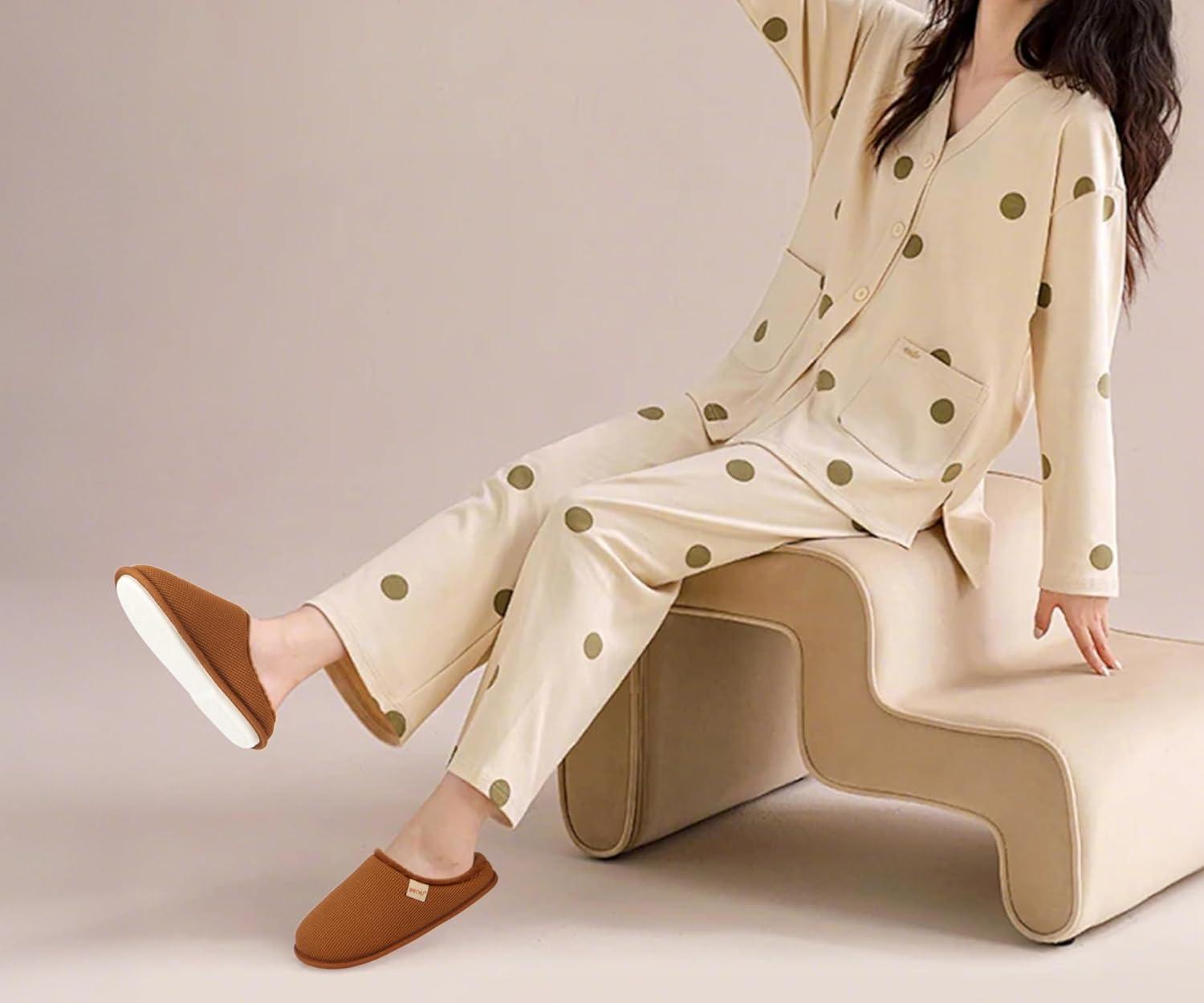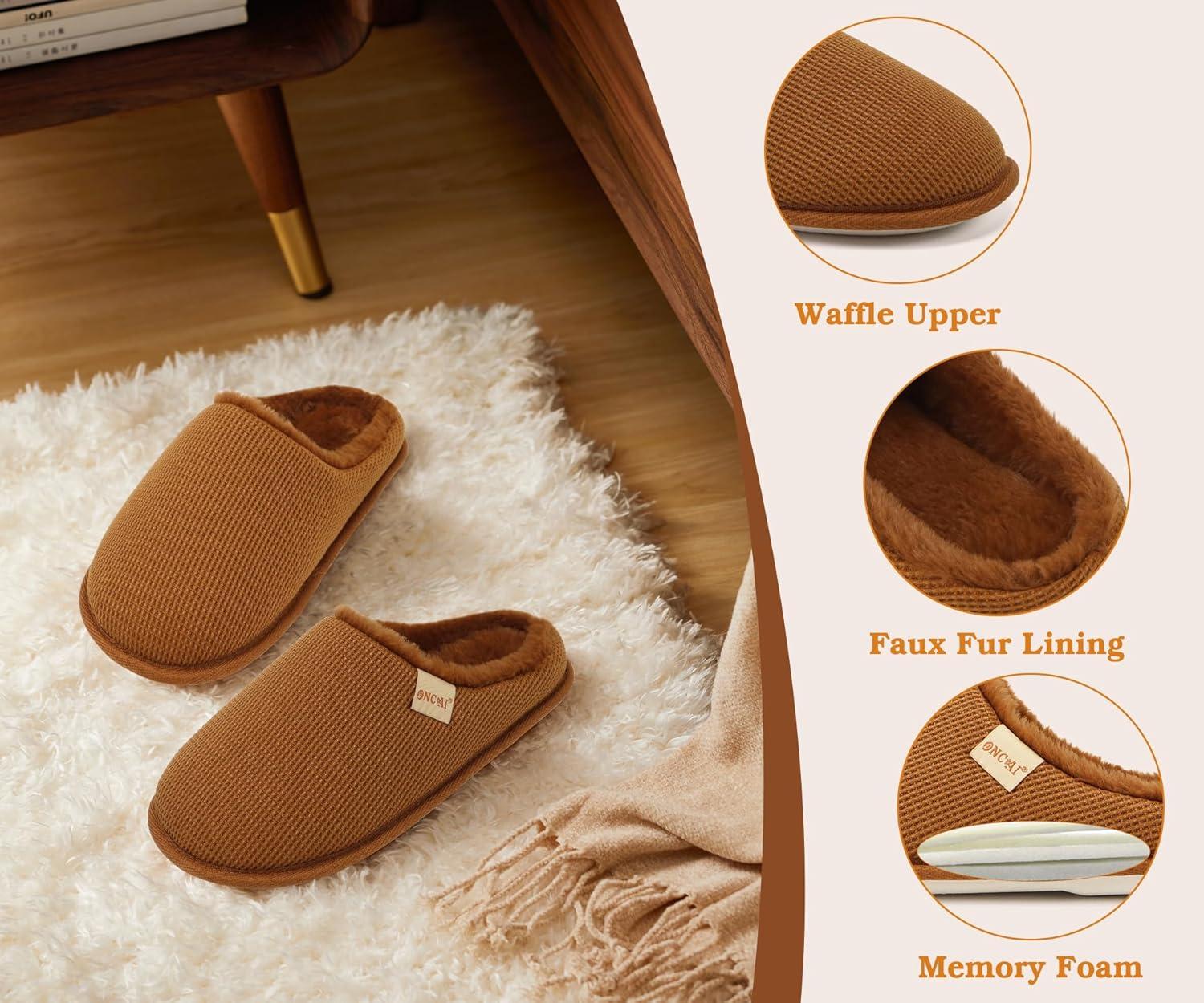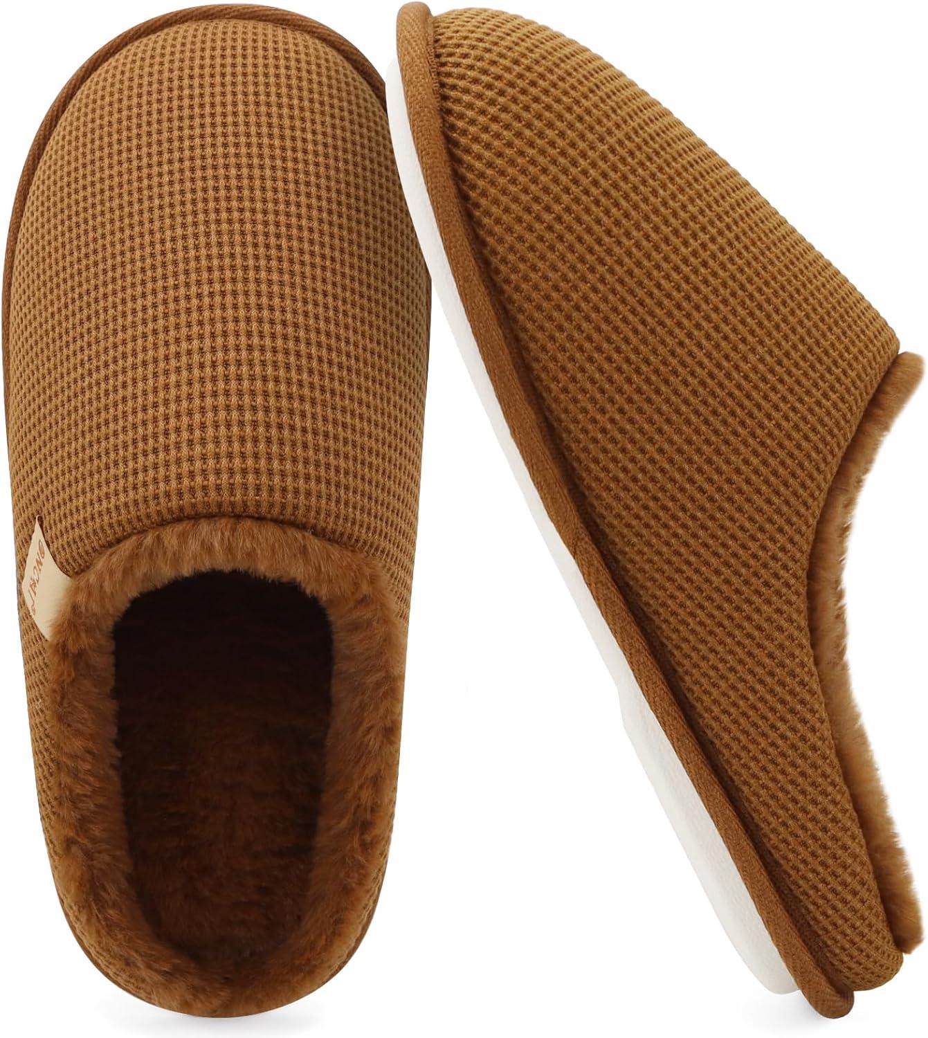ONCAI Women’s House Slippers, Cushion Memory Foam Waffle Upper Home Comfortable Warm Winter Cozy Soft Lightweight Indoor Best House Shoes Non-slip Rubber Sole US Size 5-11(Plush Dark Khaki)