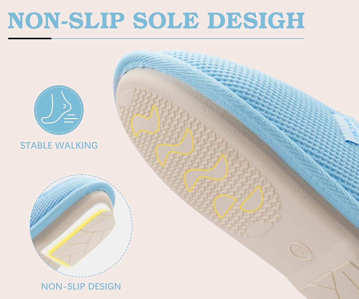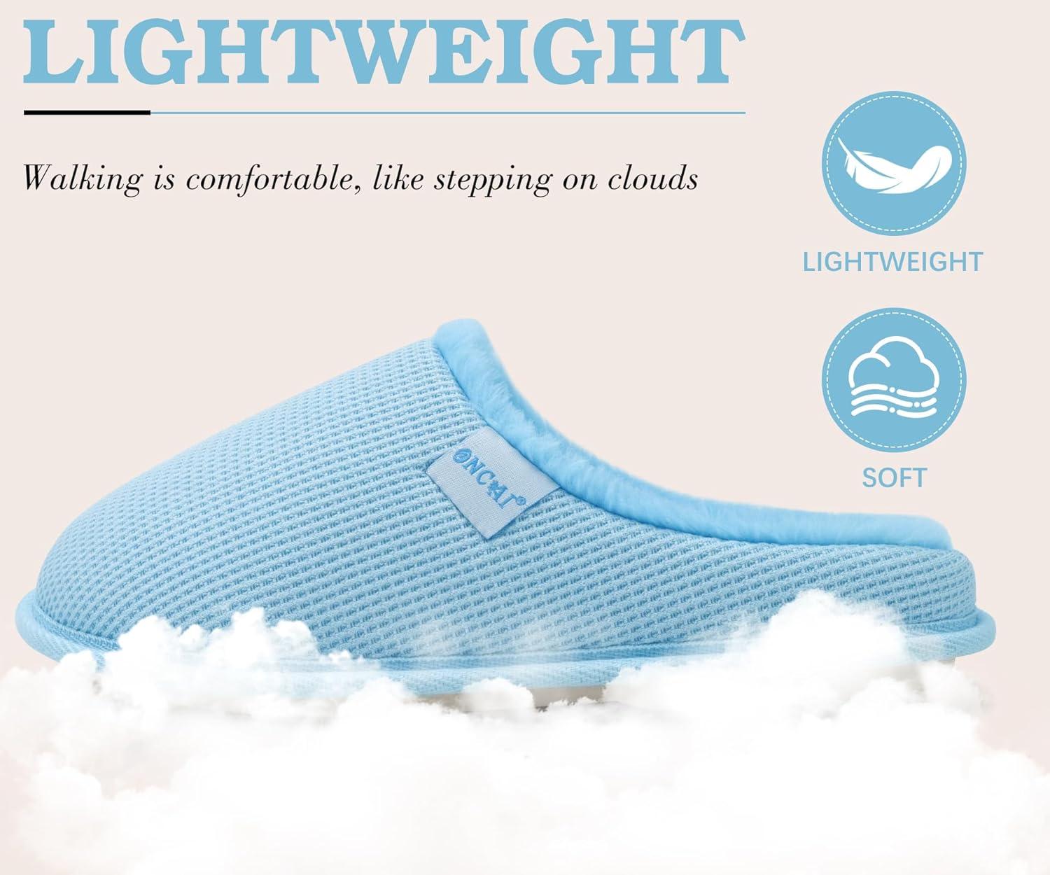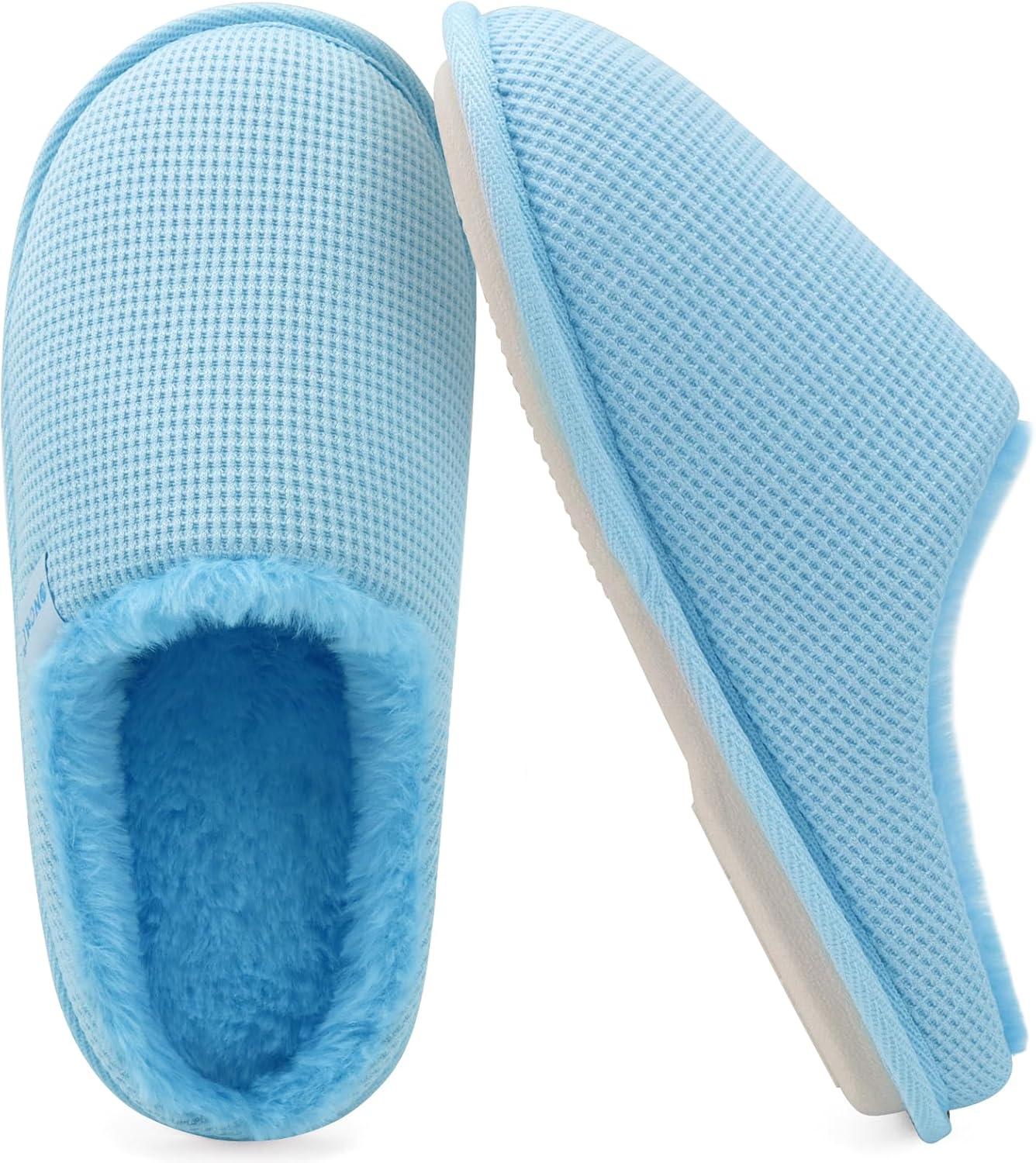 ONCAI Women’s House Slippers, Cushion Memory Foam Waffle Upper Home Comfortable Warm Winter Cozy Soft Lightweight Indoor Best House Shoes Non-slip Rubber Sole US Size 5-11(Plush Light Blue)