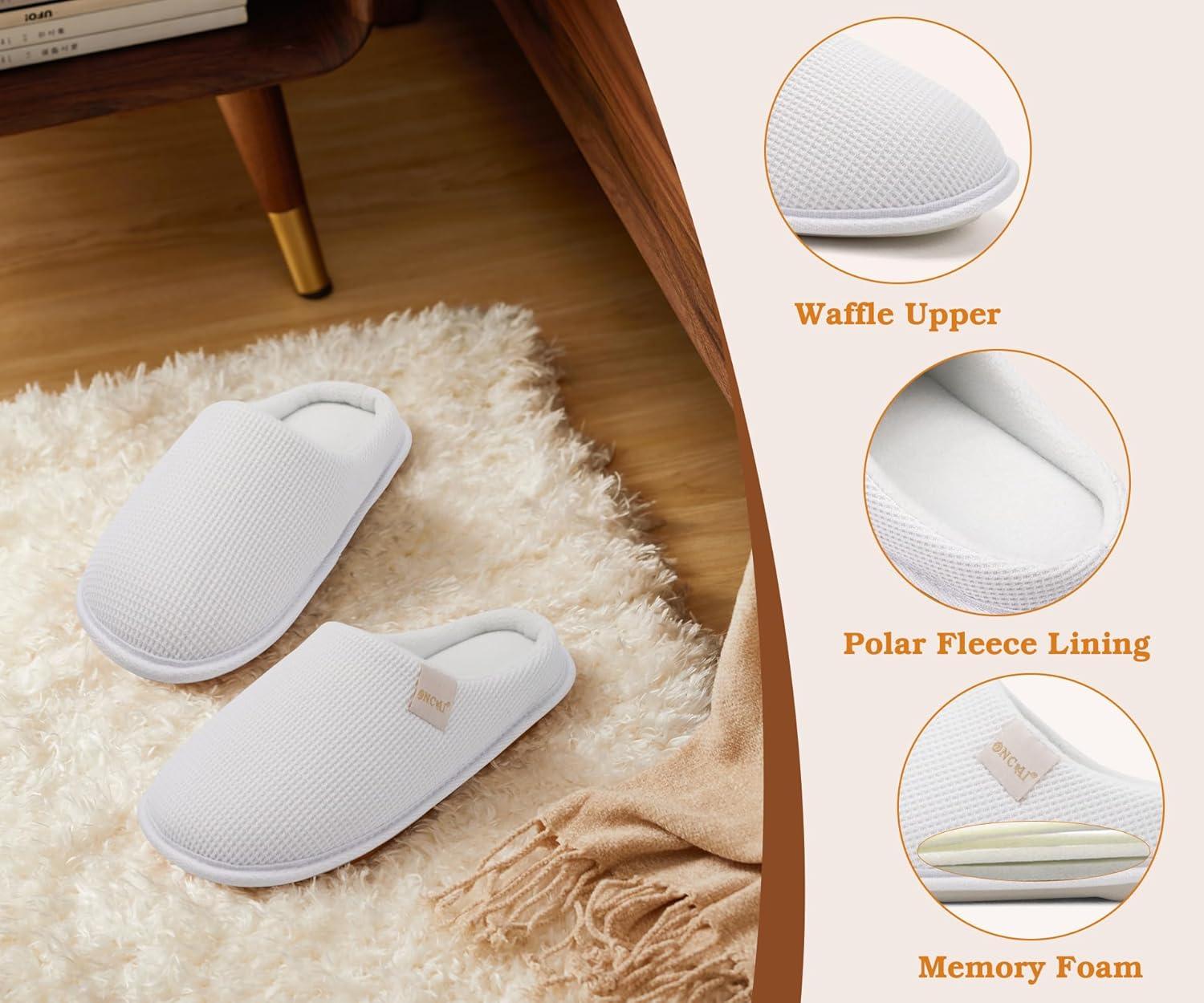 Don’t miss out on our limited-time offer: buy ONCAI Women’s House Slippers, Cushion Memory Foam Waffle Upper Home Comfortable Warm Winter Cozy Soft Lightweight Indoor Best House Shoes Non-slip Rubber Sole US Size 5-11(White), get {accessory} free!