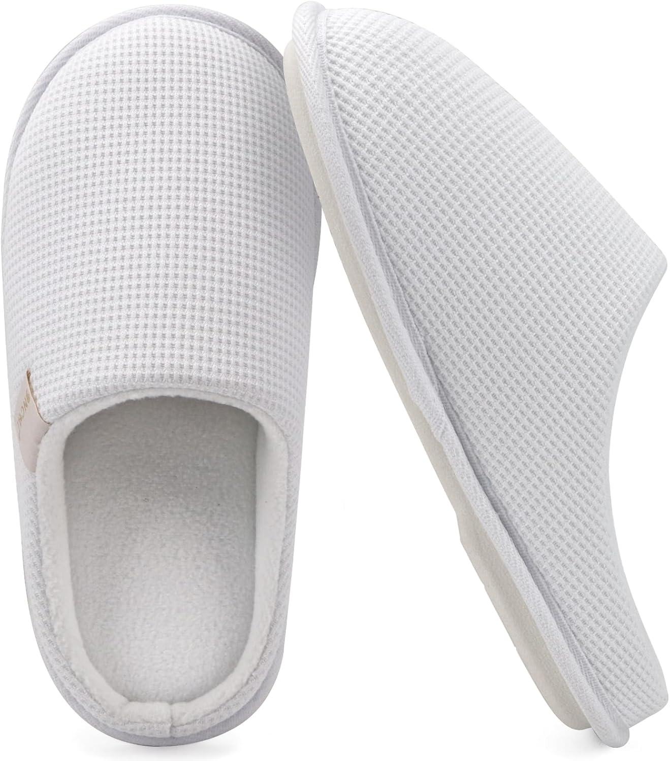 ONCAI Women’s House Slippers, Cushion Memory Foam Waffle Upper Home Comfortable Warm Winter Cozy Soft Lightweight Indoor Best House Shoes Non-slip Rubber Sole US Size 5-11(White)