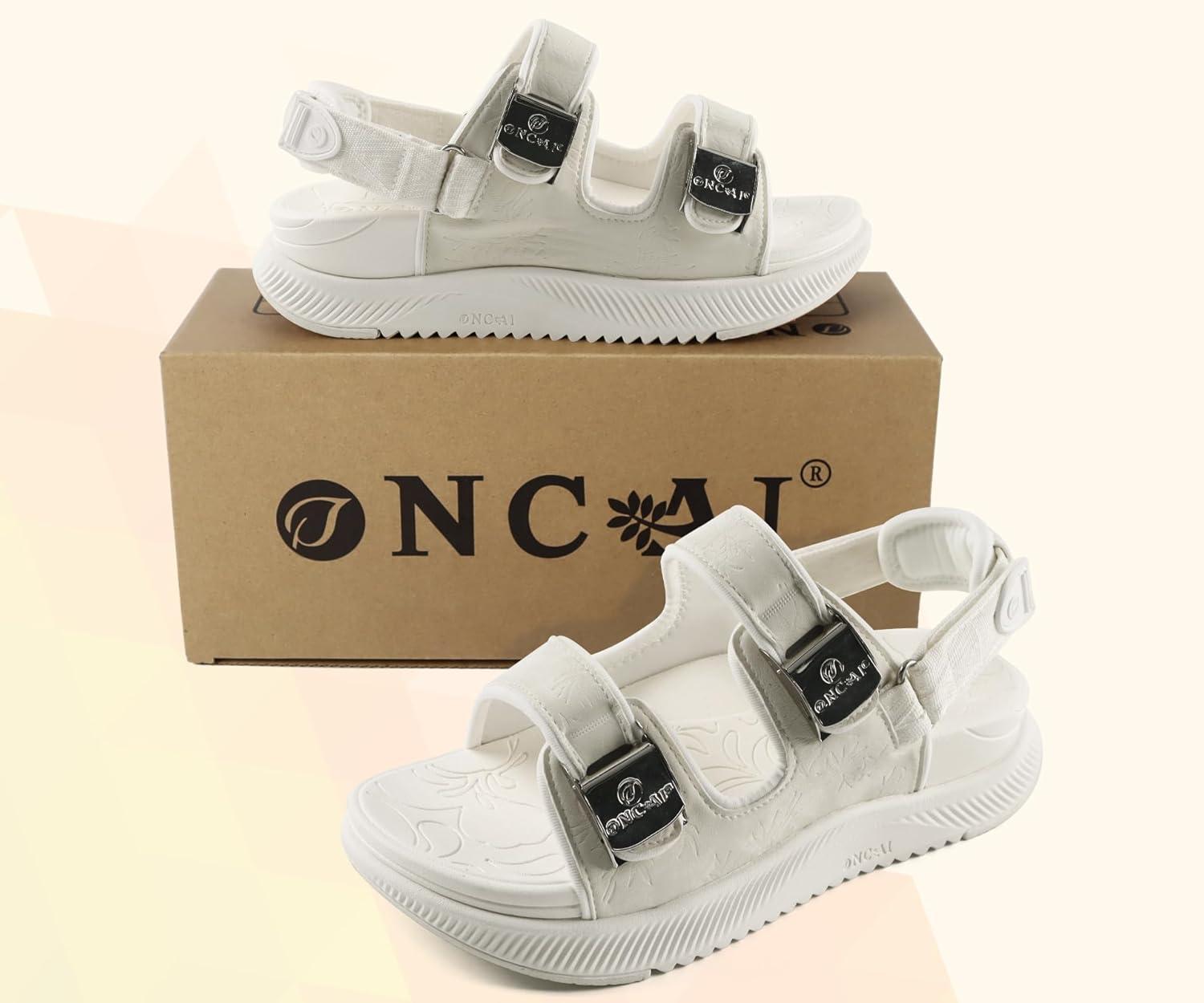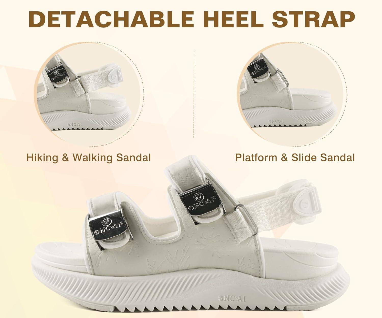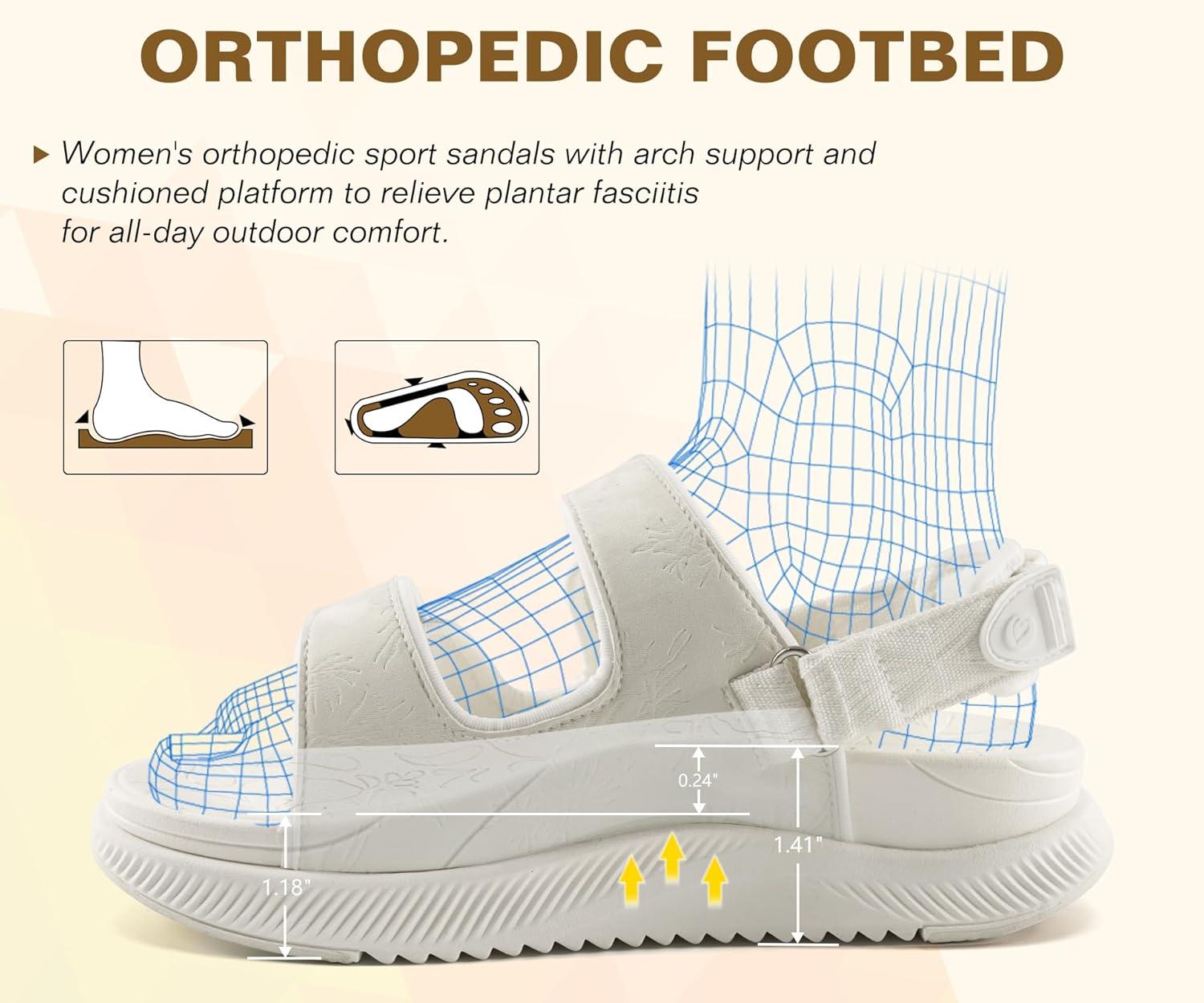 ONCAI Womens Orthopedic Walking Sandals with Arch Support Comfort Casual Sport Platform Recovery Hiking Sandals for Women Water Summer Vacation Thick Outdoor Adjustable Strap Size 6-12(Beigewhite)