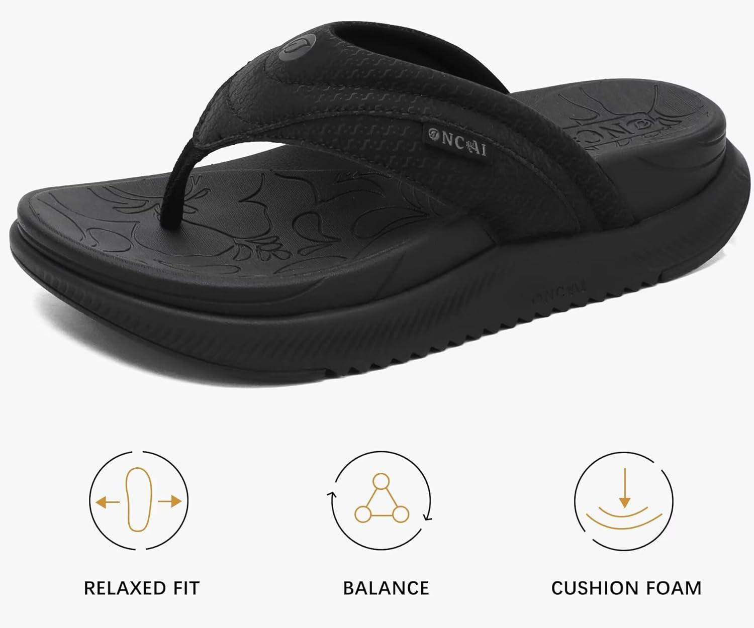 ONCAI Women’s Orthotic Cushion Flip Flops Recovery Walking Sandals for Women with Arch Support Summer Comfortable Slip On Flip Flops for Womans Size 6-12(Black)