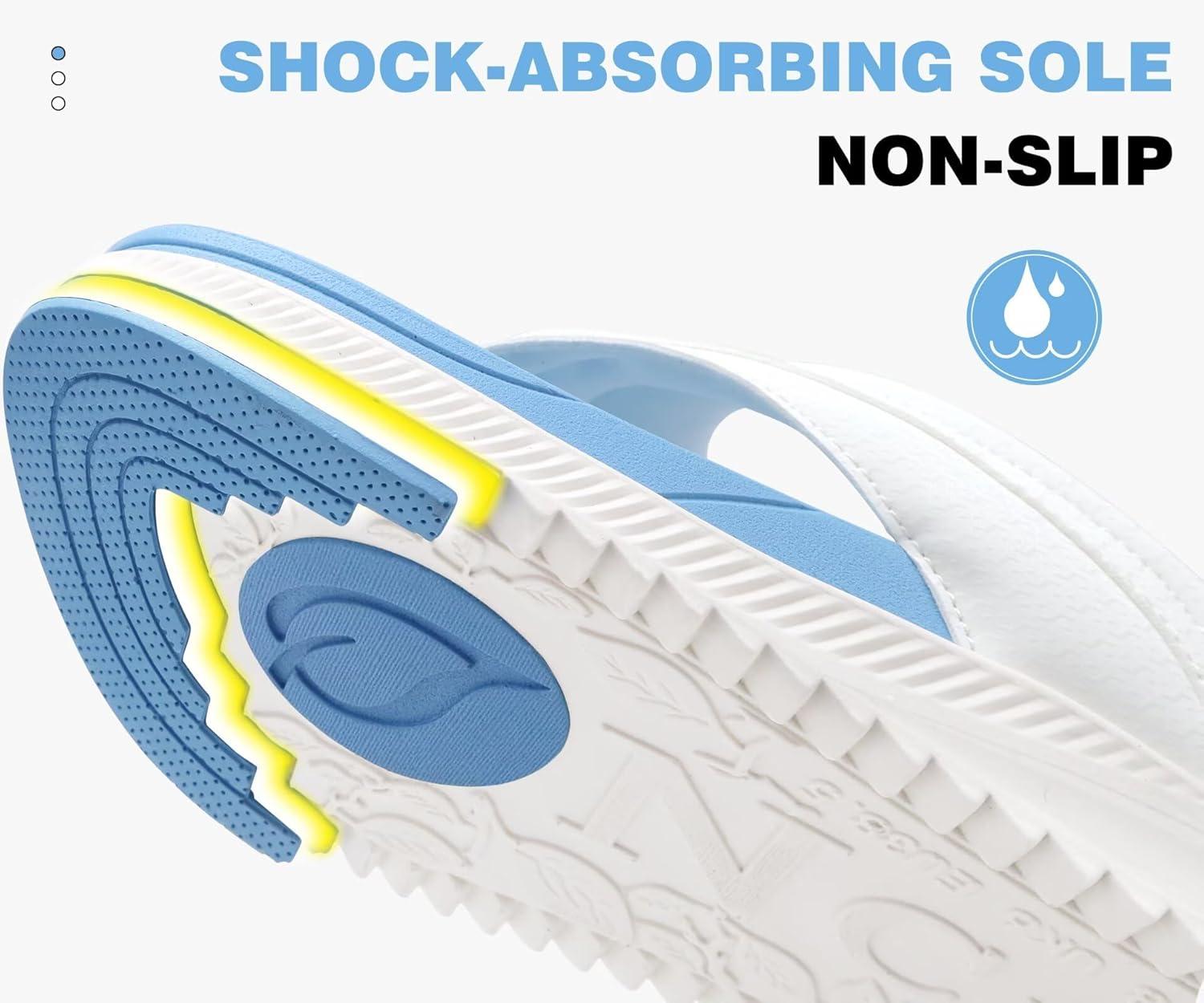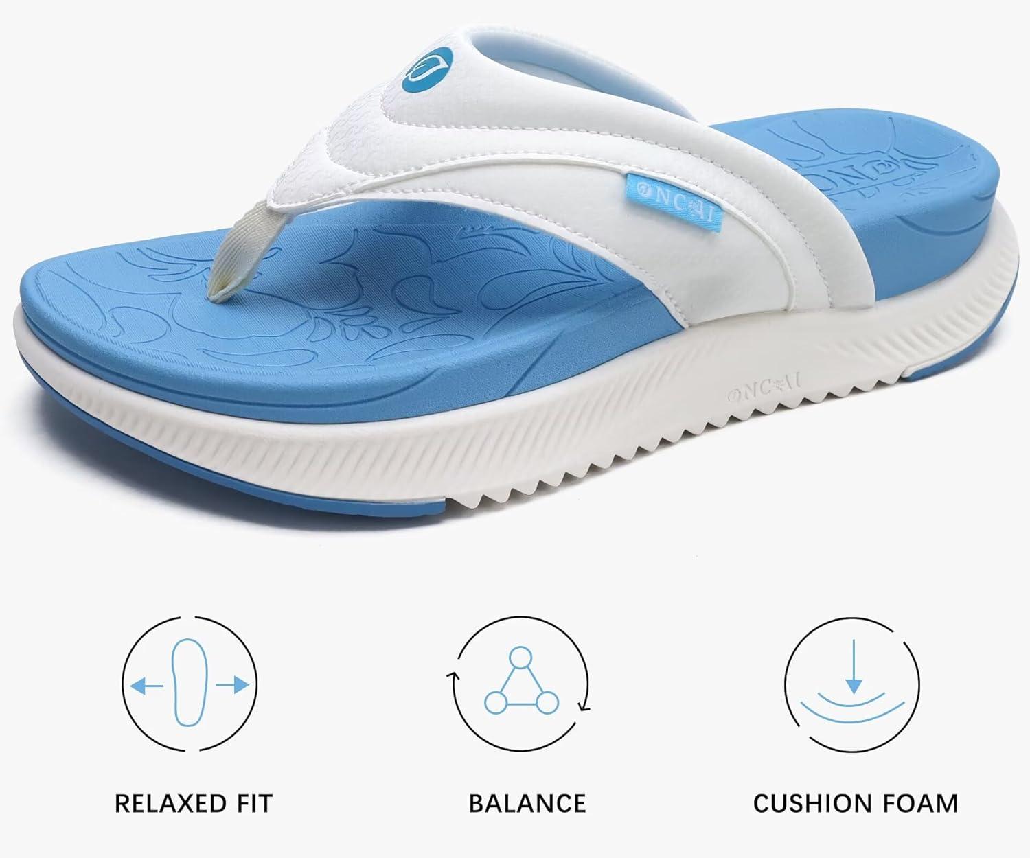 ONCAI Women’s Orthotic Cushion Flip Flops Recovery Walking Sandals for Women with Arch Support Summer Comfortable Slip On Flip Flops for Womans Size 6-12(Blue/White)