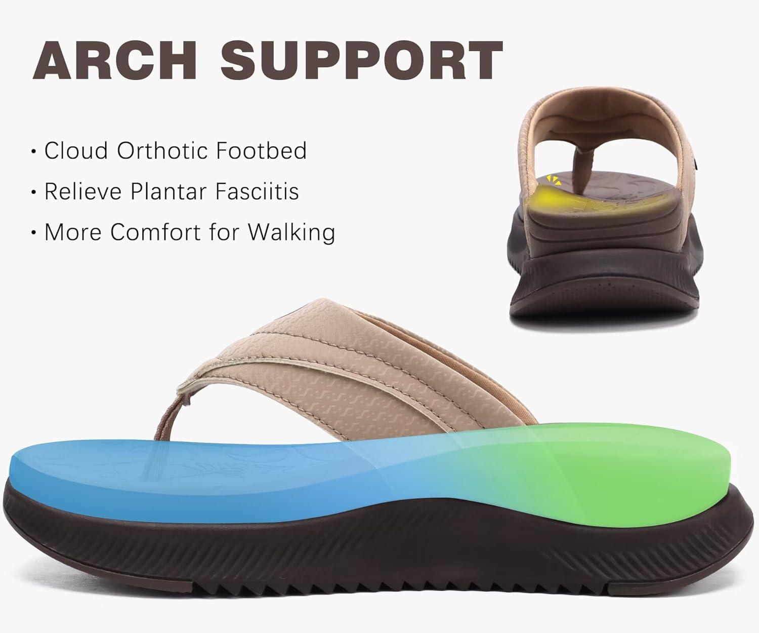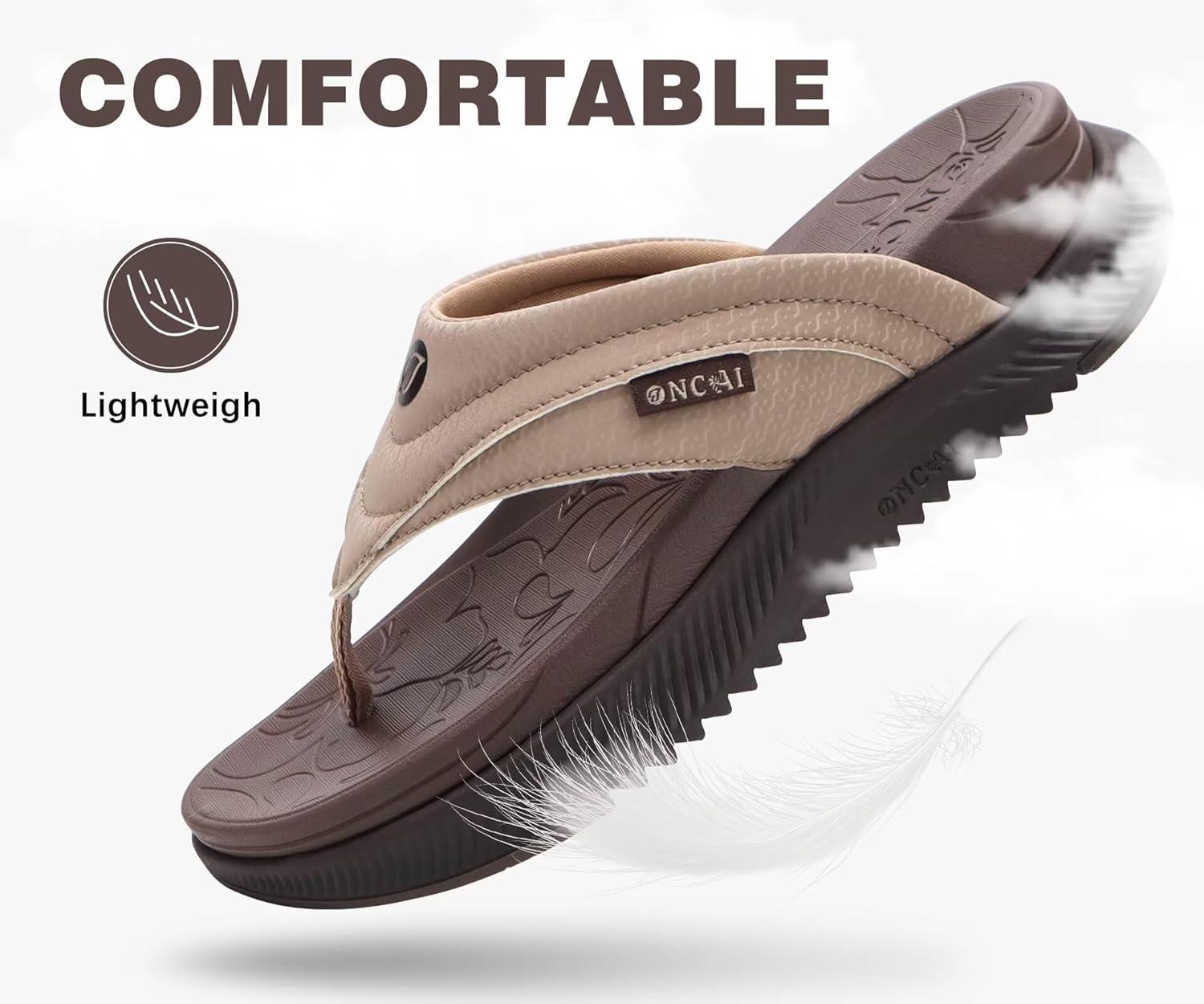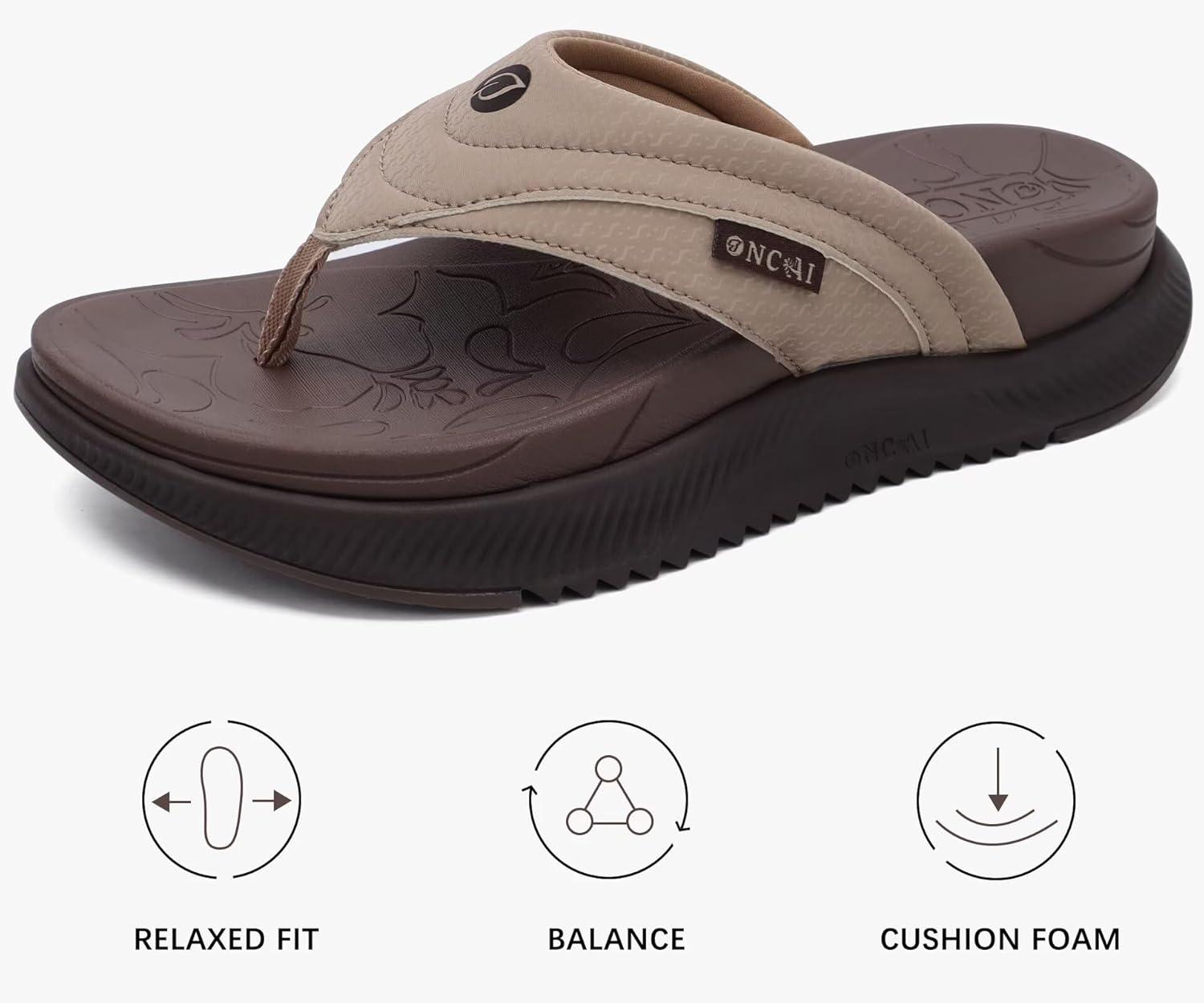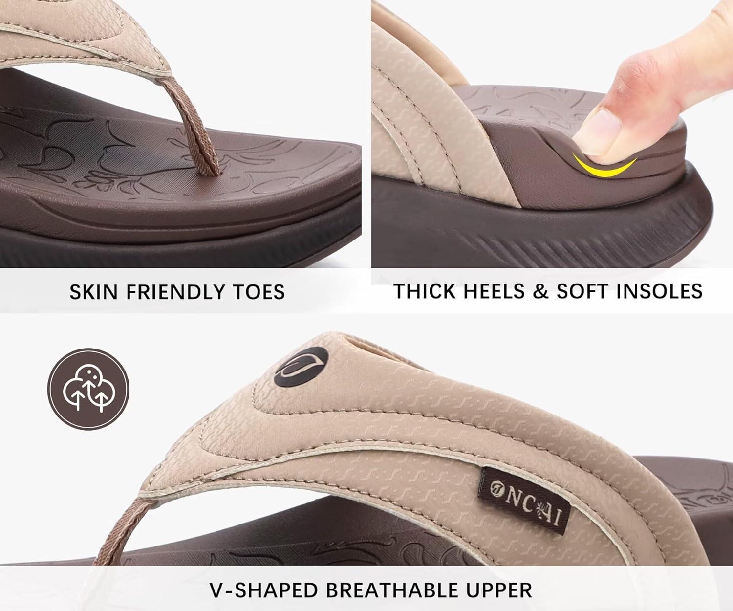 ONCAI Women’s Orthotic Cushion Flip Flops Recovery Walking Sandals for Women with Arch Support Summer Comfortable Slip On Flip Flops for Womans Size 6-12(Brown)