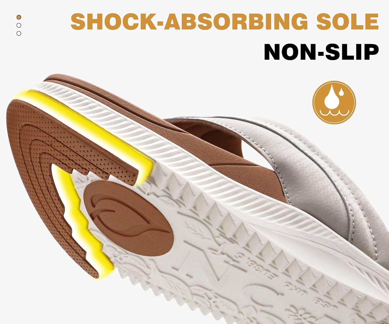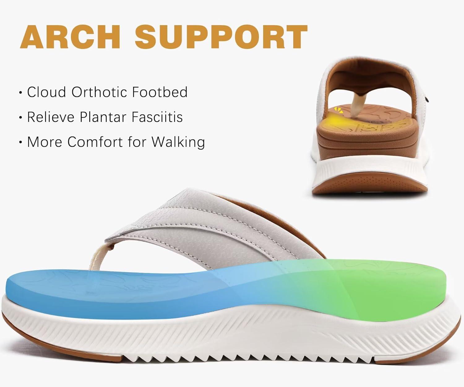 ONCAI Women’s Orthotic Cushion Flip Flops Recovery Walking Sandals for Women with Arch Support Summer Comfortable Slip On Flip Flops for Womans Size 6-12(Khaki/White)