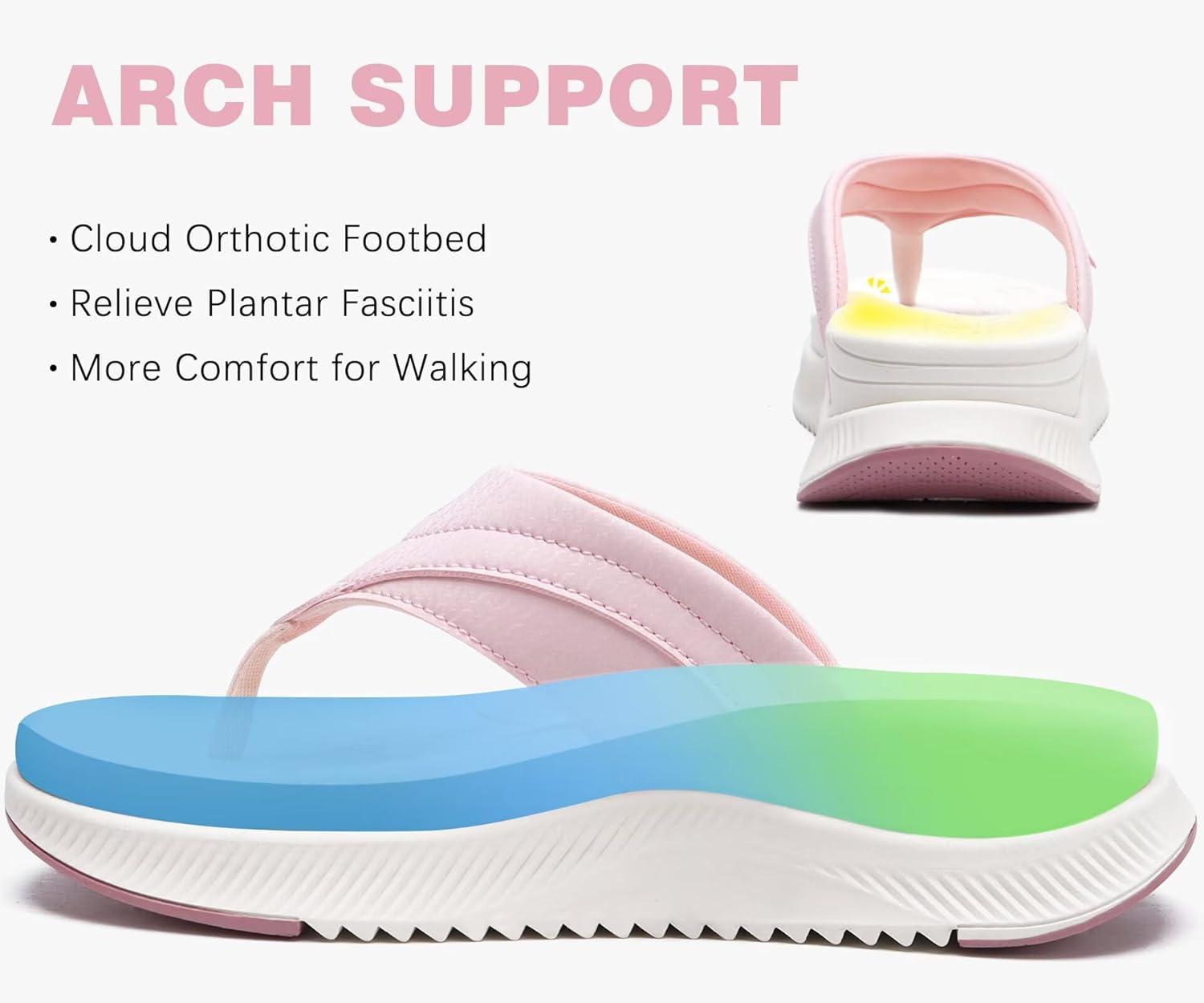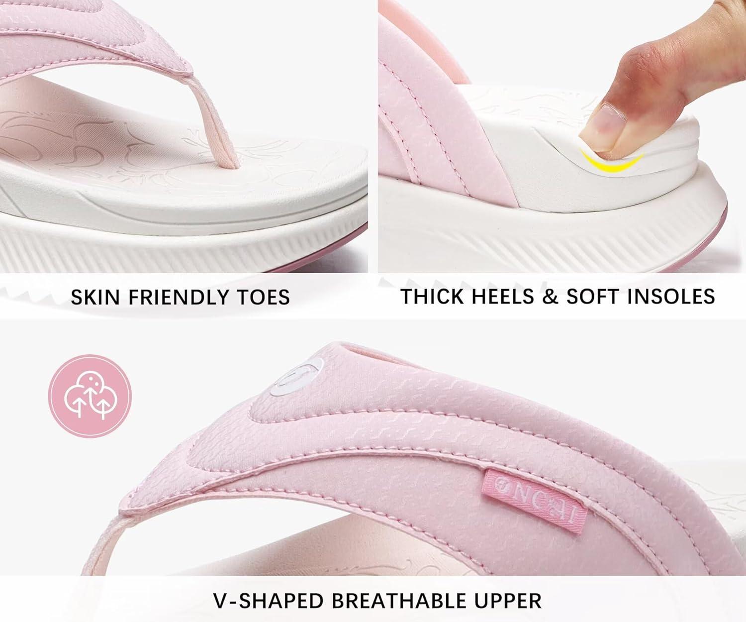 ONCAI Women’s Orthotic Cushion Flip Flops Recovery Walking Sandals for Women with Arch Support Summer Comfortable Slip On Flip Flops for Womans Size 6-12(Pink/White)