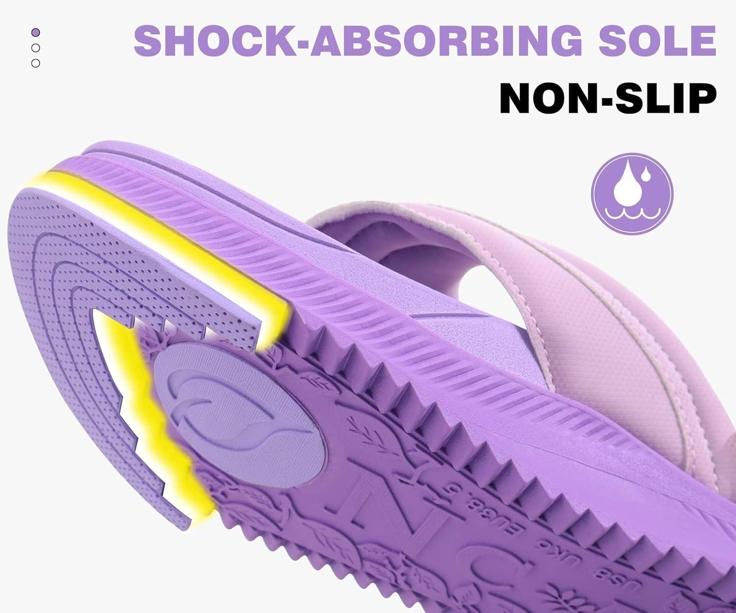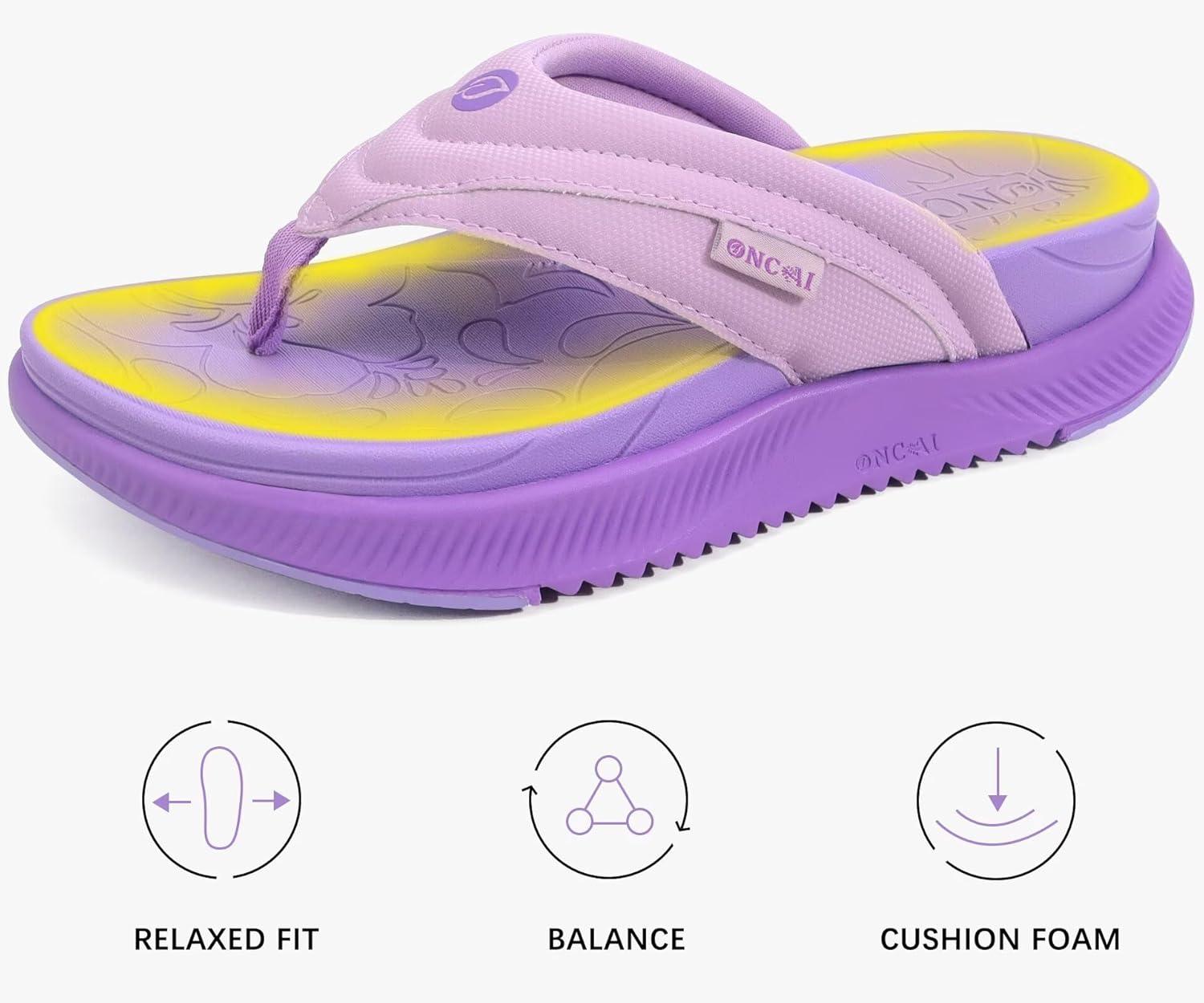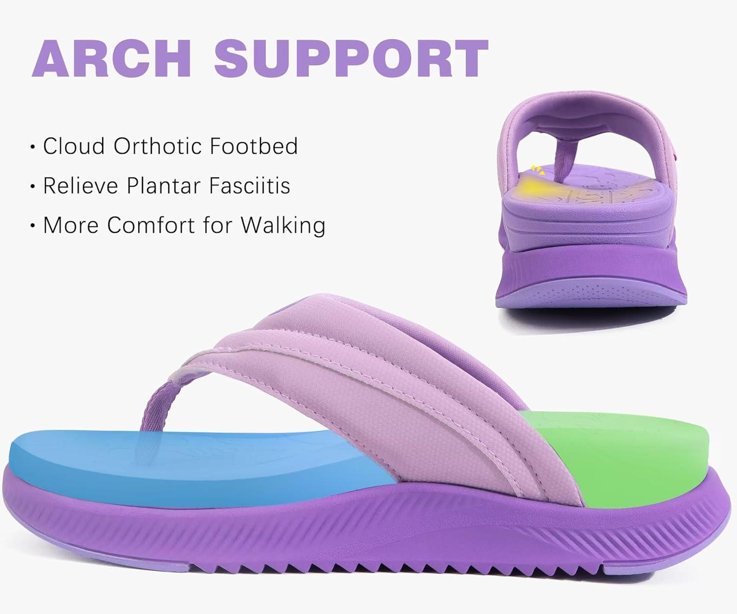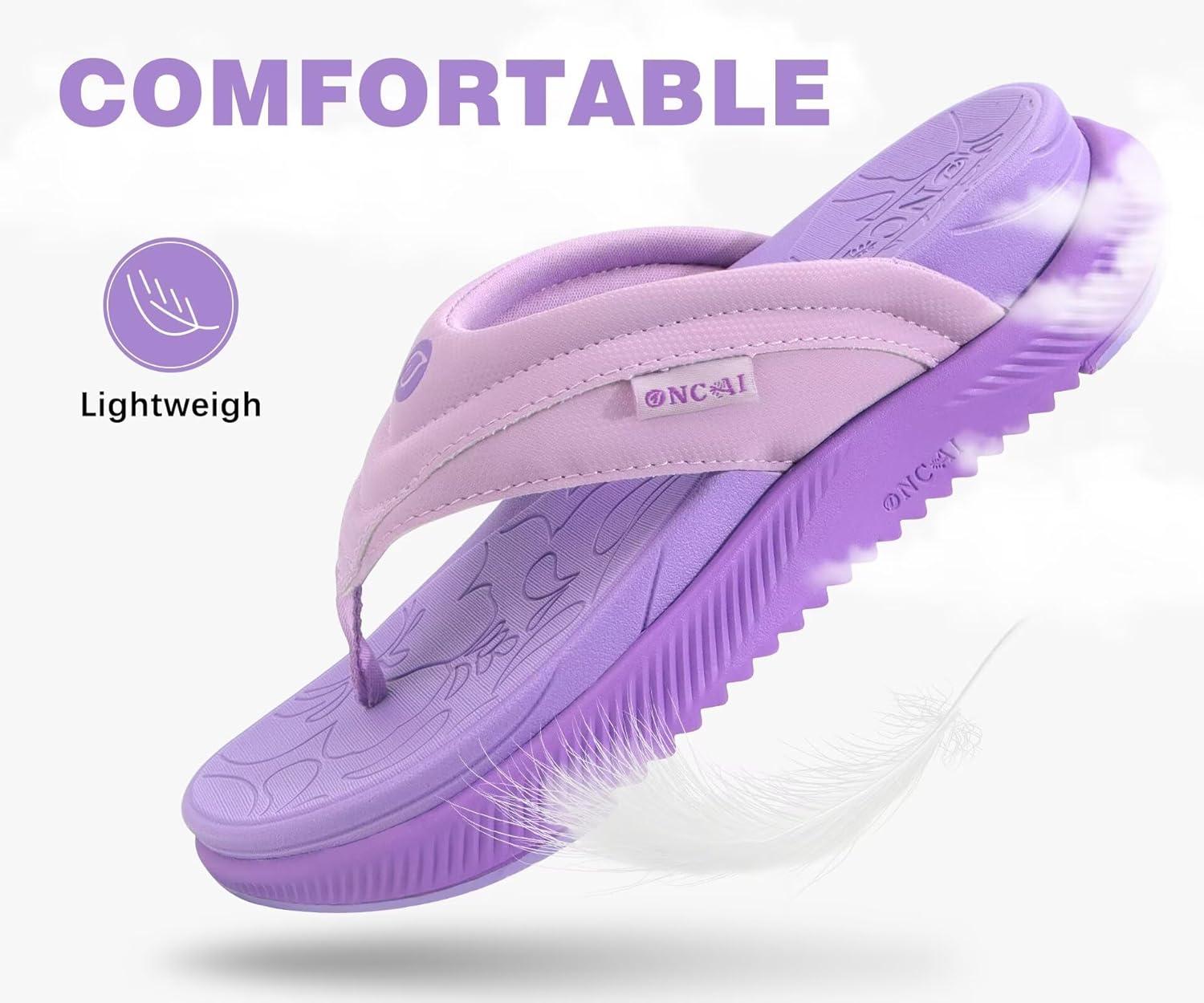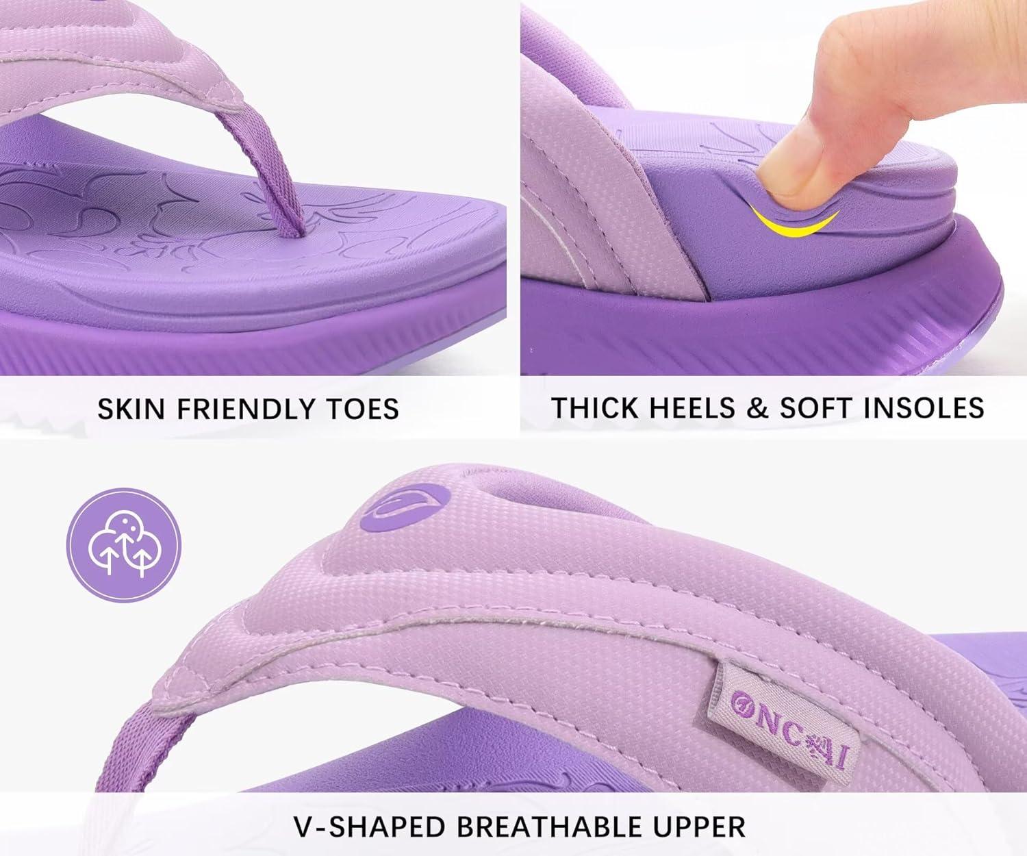 ONCAI Women’s Orthotic Cushion Flip Flops Recovery Walking Sandals for Women with Arch Support Summer Comfortable Slip On Flip Flops for Womans Size 6-12(Purple)