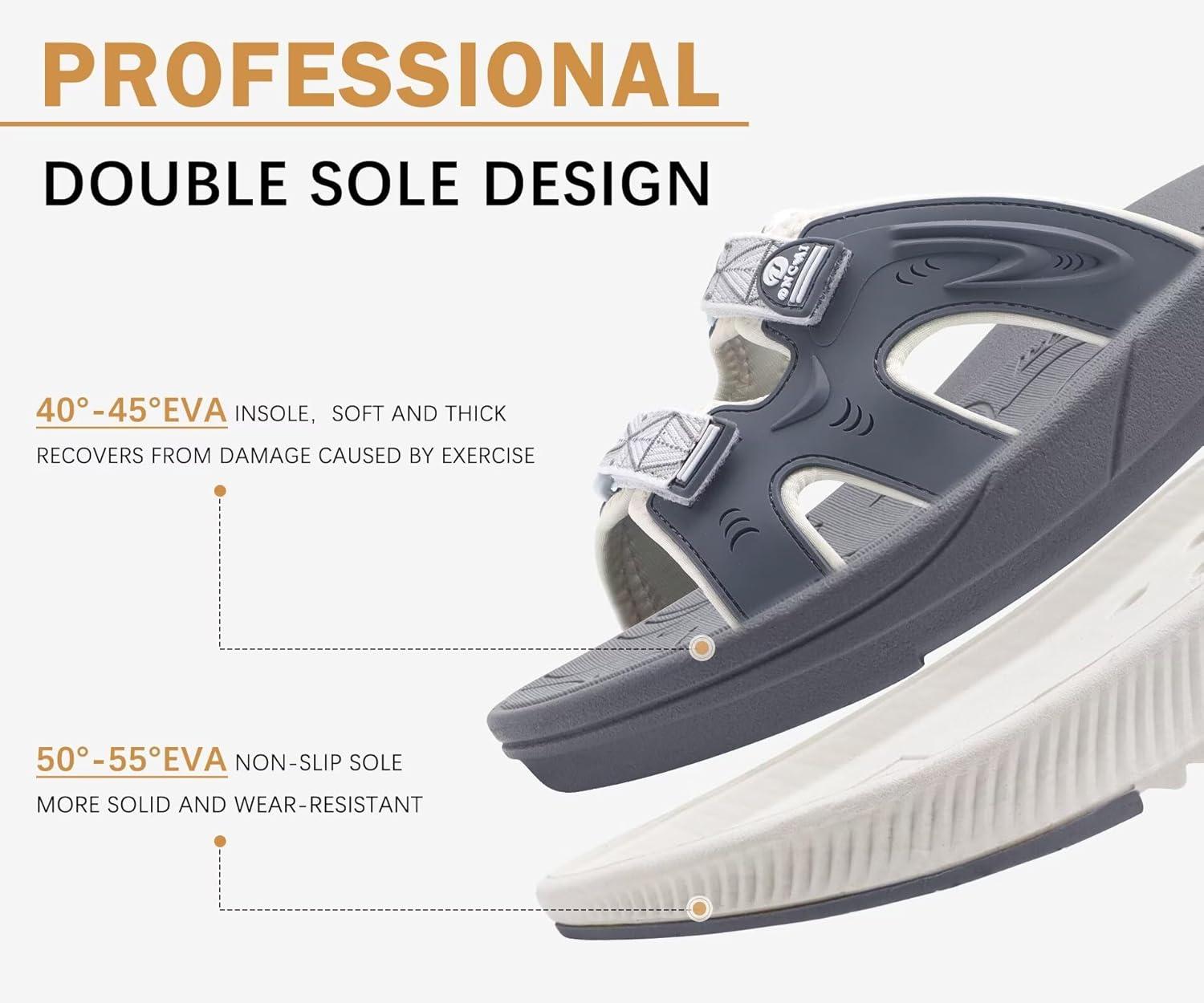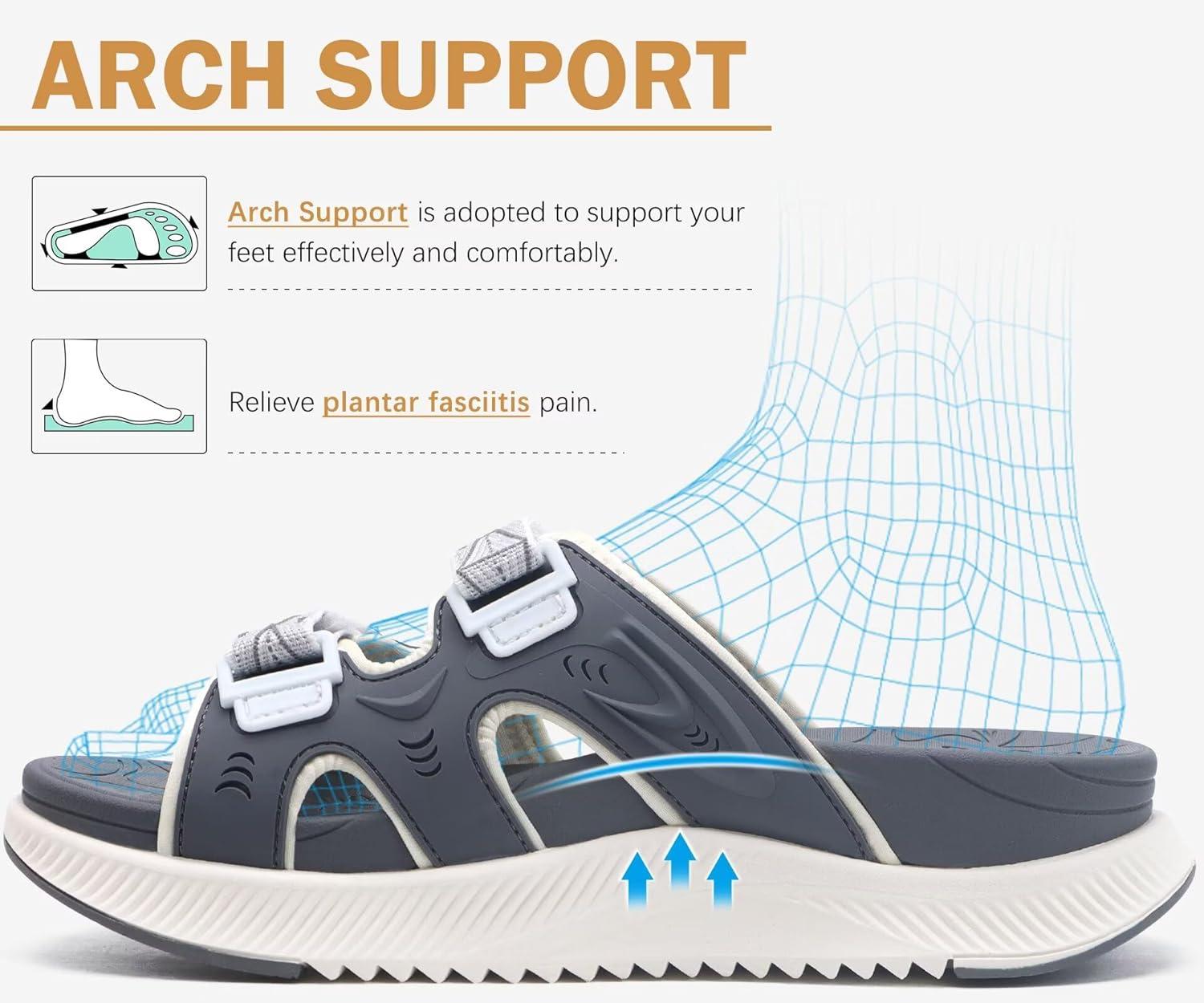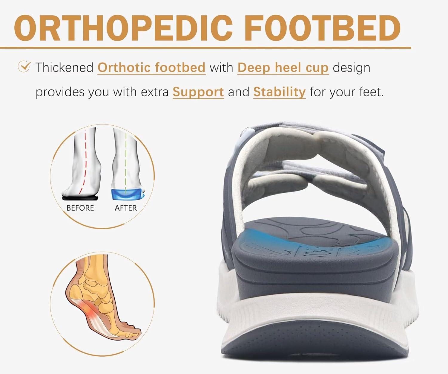 ONCAI Womens Orthotic Sandals Ladies Recovery Walking Slides Arch Support Plantar Fasciitis Comfort Orthopedic Soft Cushion Summer Adjustable Sandalias Size 6-12(Grey/White)