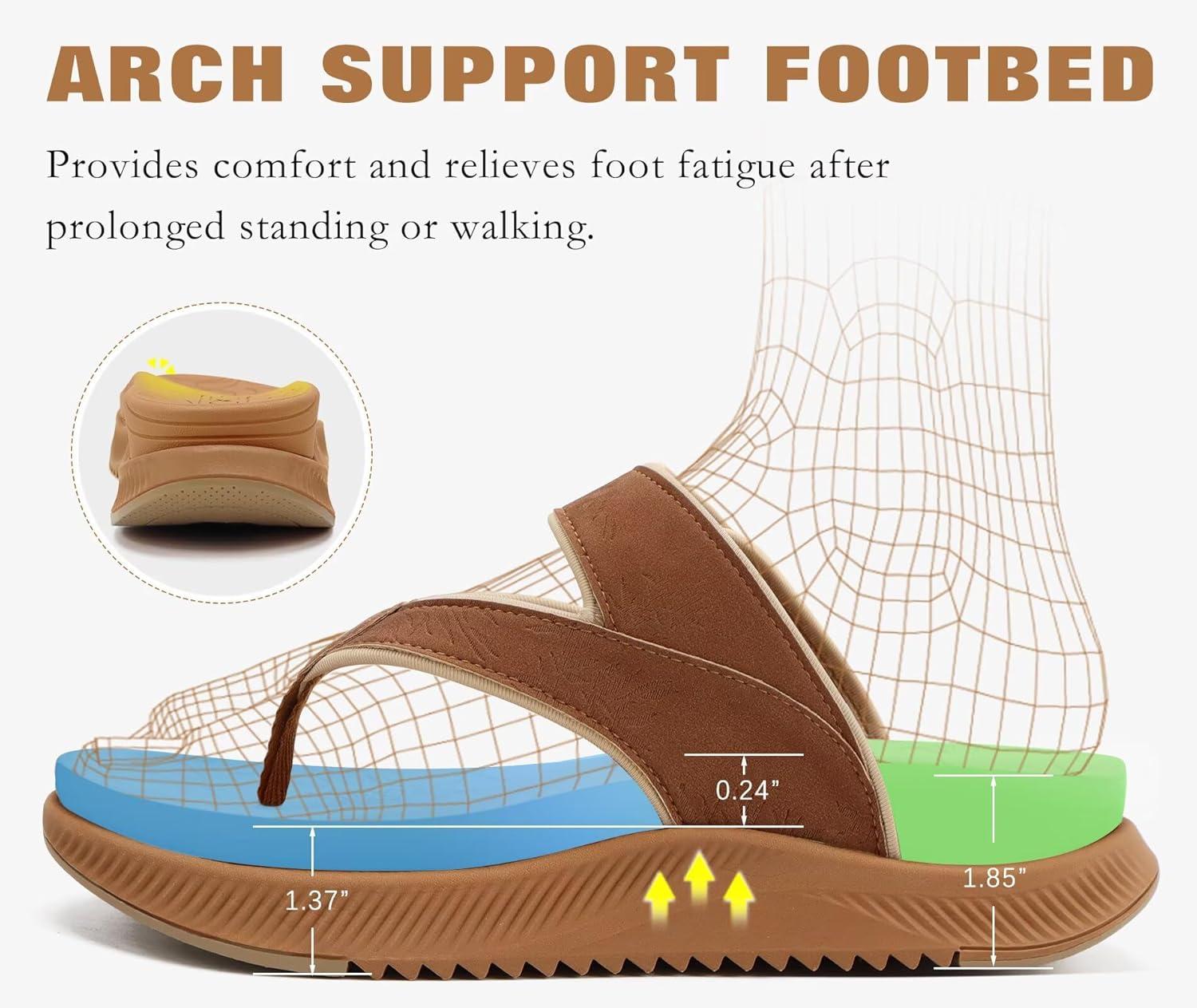 ONCAI Women’s Platform Flip Flops with Arch Support Summer Beach Dressy Trendy Walking Sandals and Thick Outdoor Rubber Soles Size 6-12(Khaki)