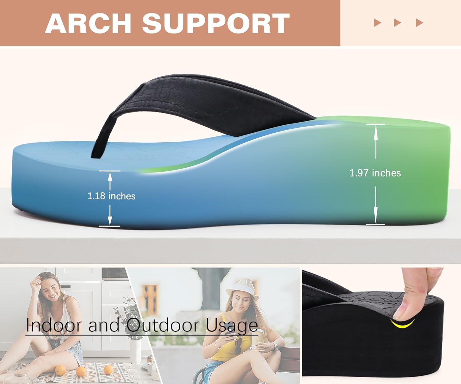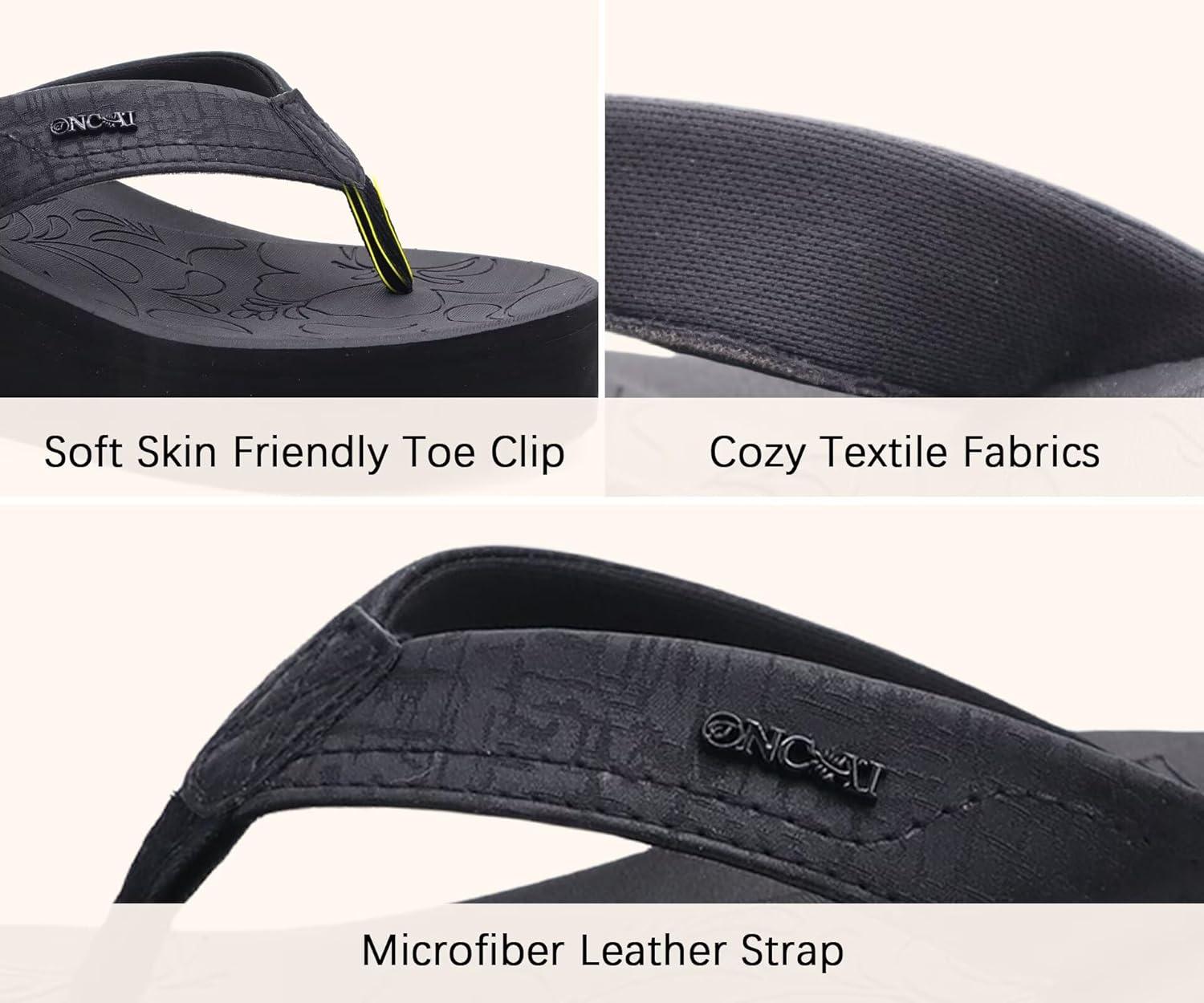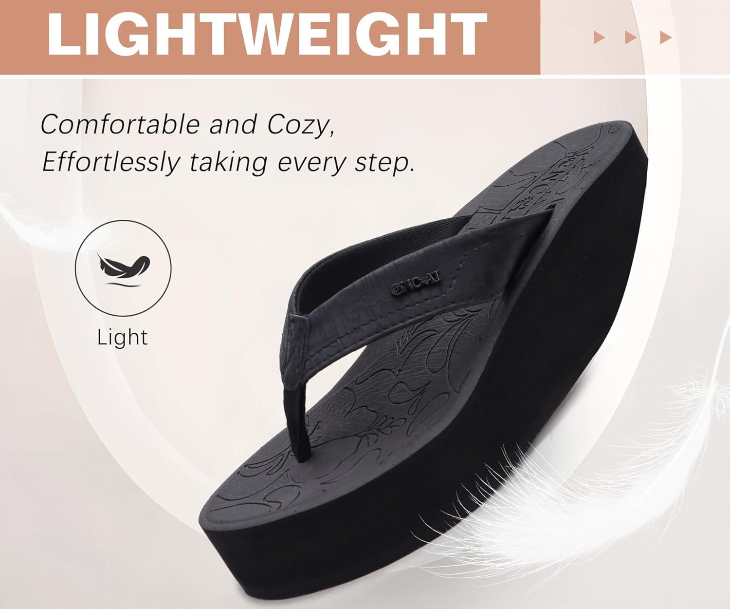 ONCAI Women’s Platform Wedge Flip Flops Trendy Dressy Womans Summer Flatform Sandals with Comfortable Walking Outdoor Rubber Soles (US Size 5-11)(Black(regular Size))